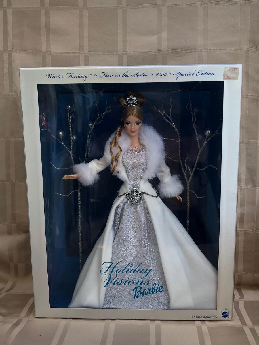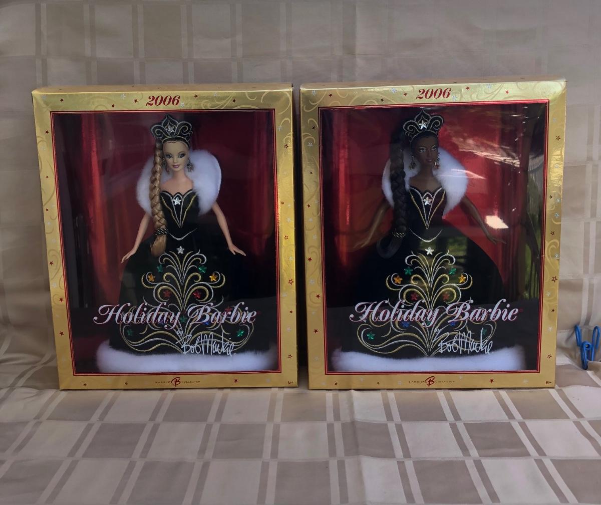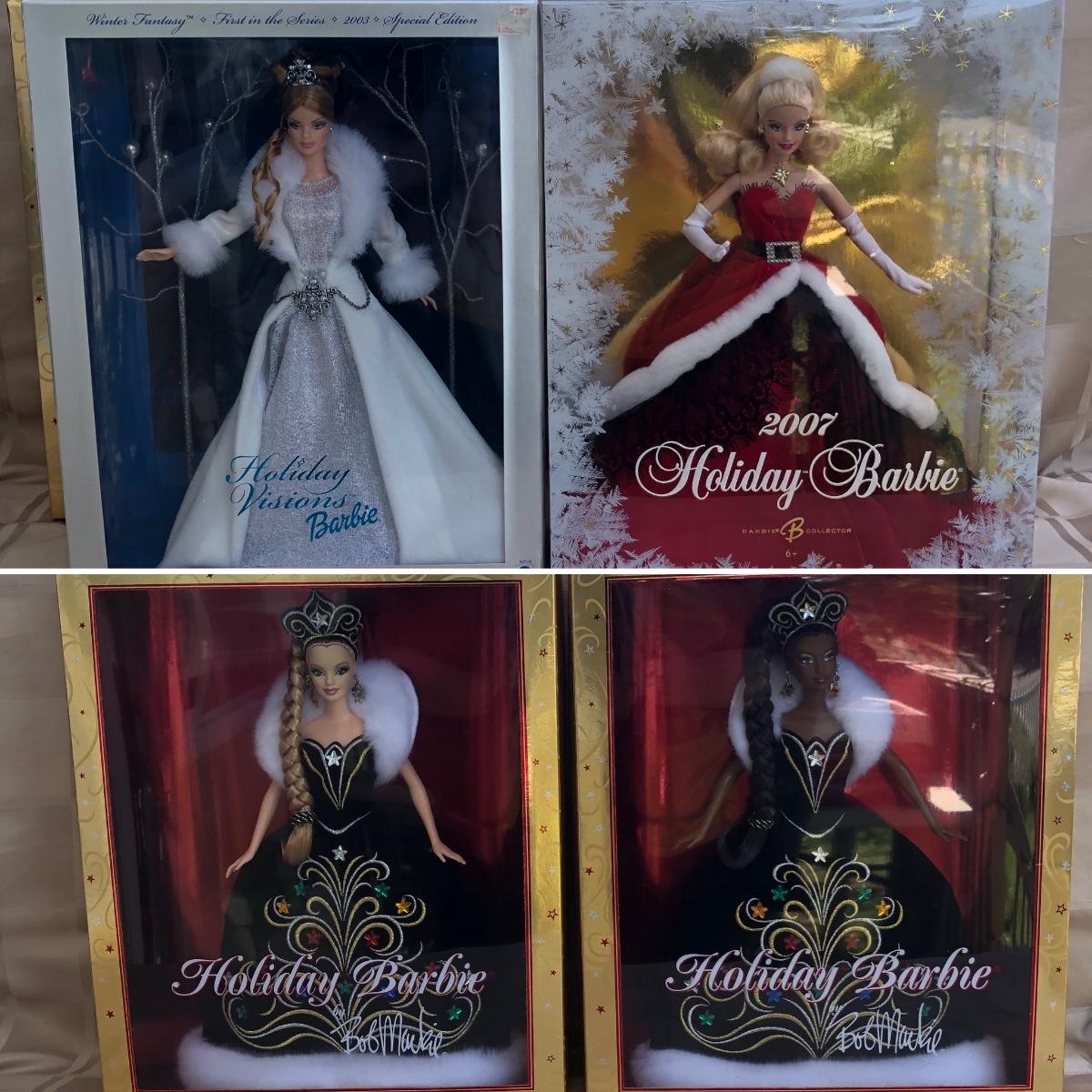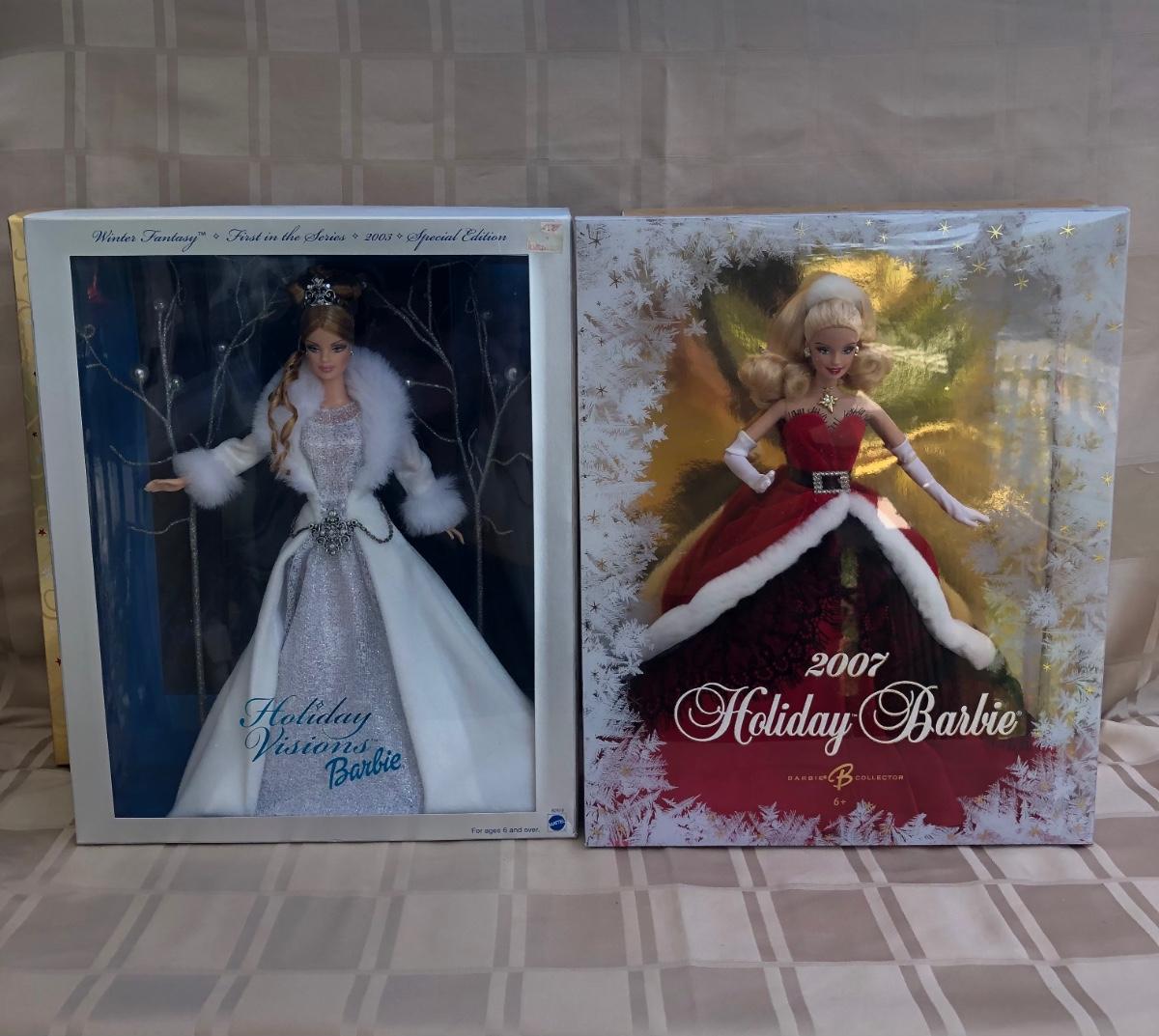 LOT 85M: Mattel 2003 Holiday Visions Barbie, 2006 Bob Mackie Holiday Barbies, 2007 Holiday Barbie NRFB