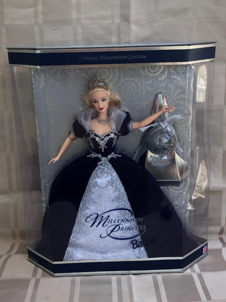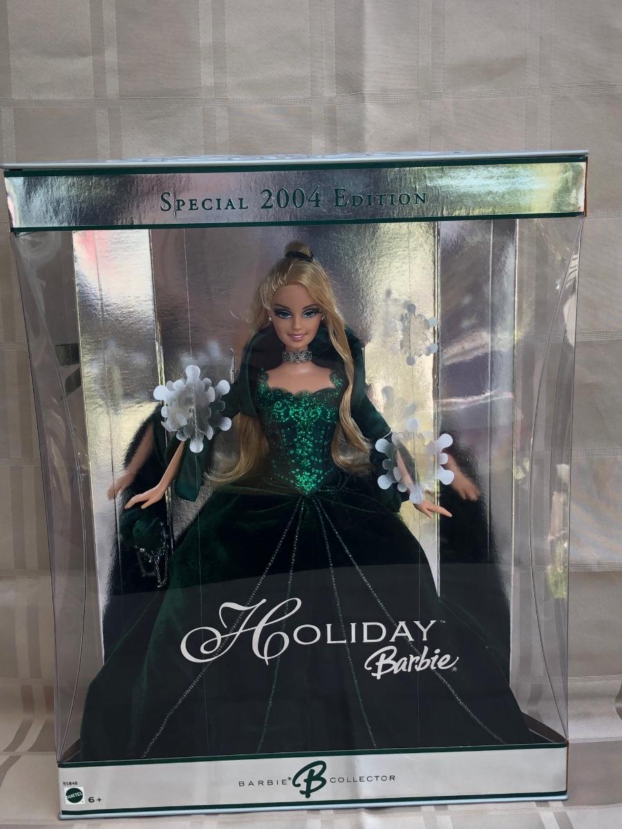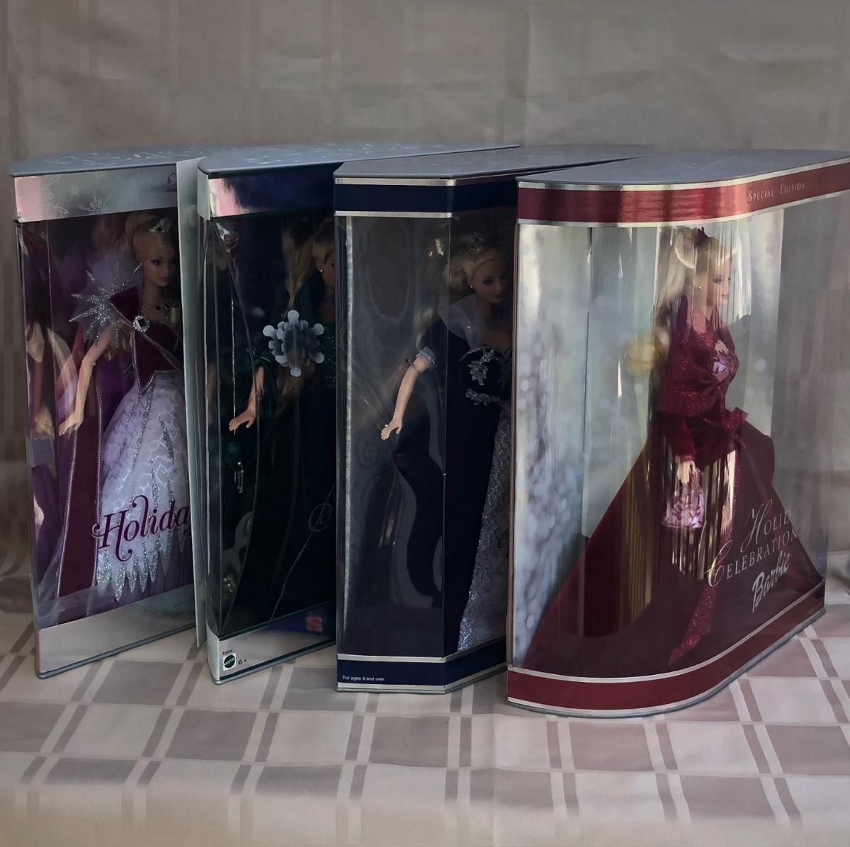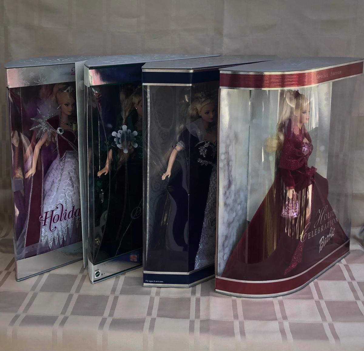 LOT 87M: Mattel Holiday Barbies - 2000 Millennium Princess, 2002 Holiday Celebration, 2004 Holiday, 2005 Bob Mackie Holiday NRFB