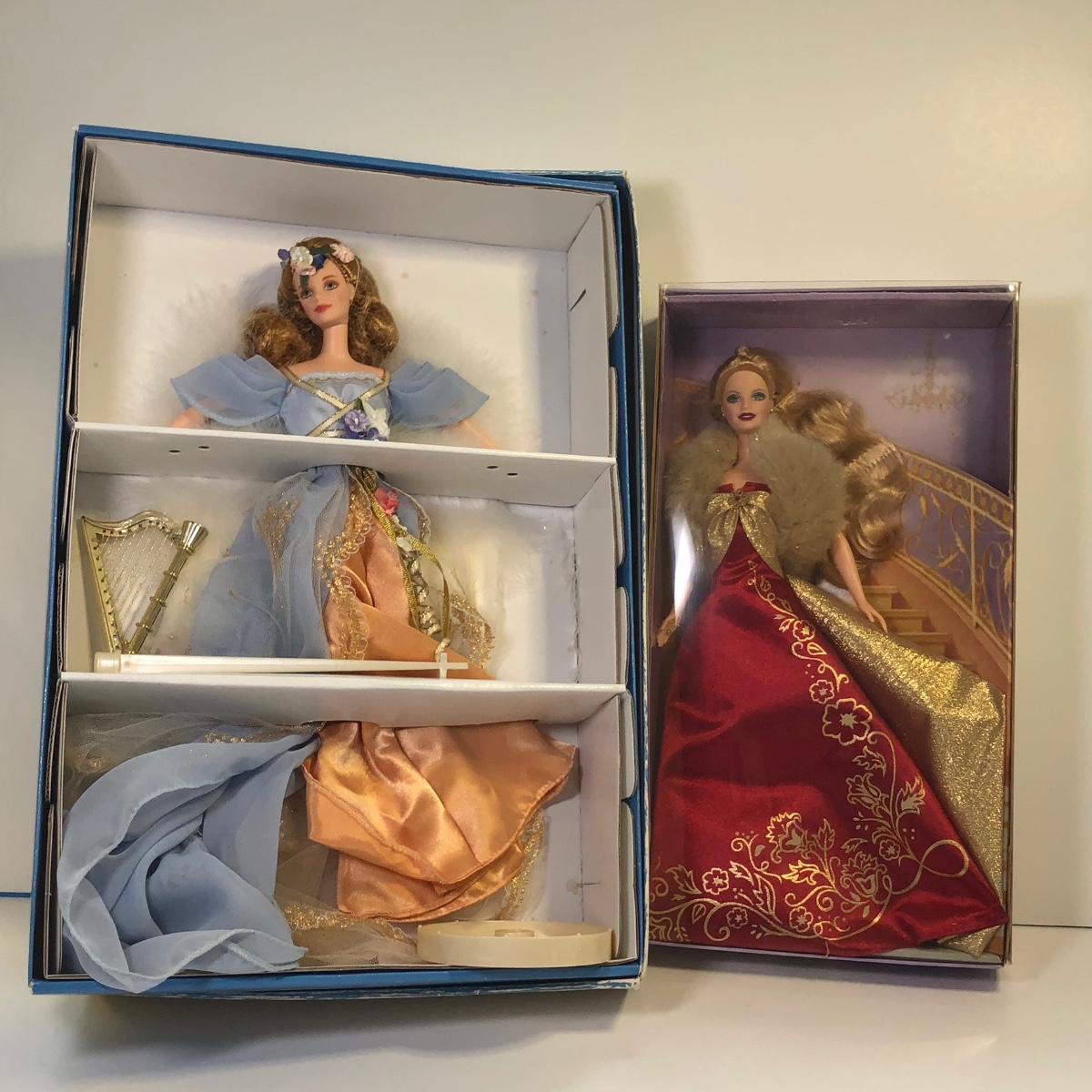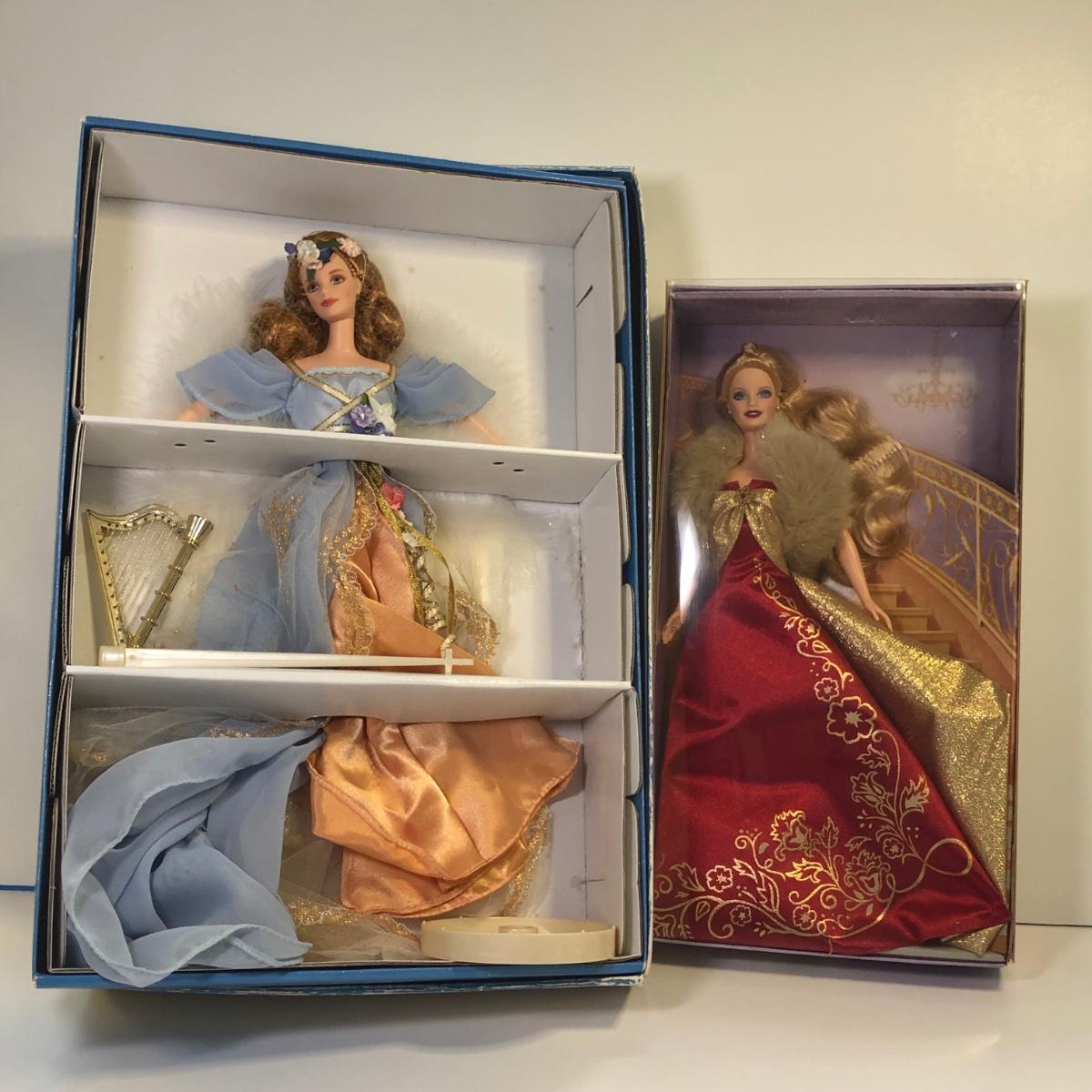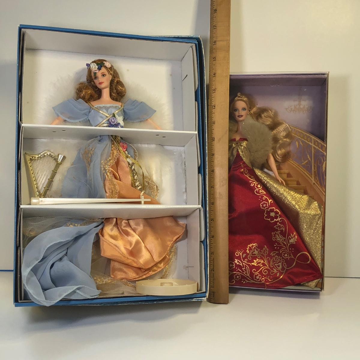 Two boxed 11.5 inch dolls. Harpist Angel Barbie does not have shoes but includes her harp and a stand. She is part of the Angels of Music Collection.