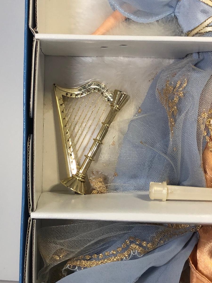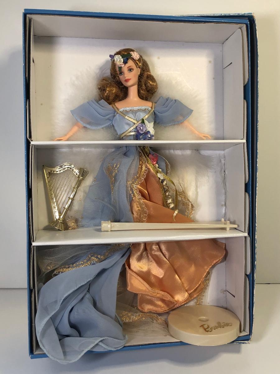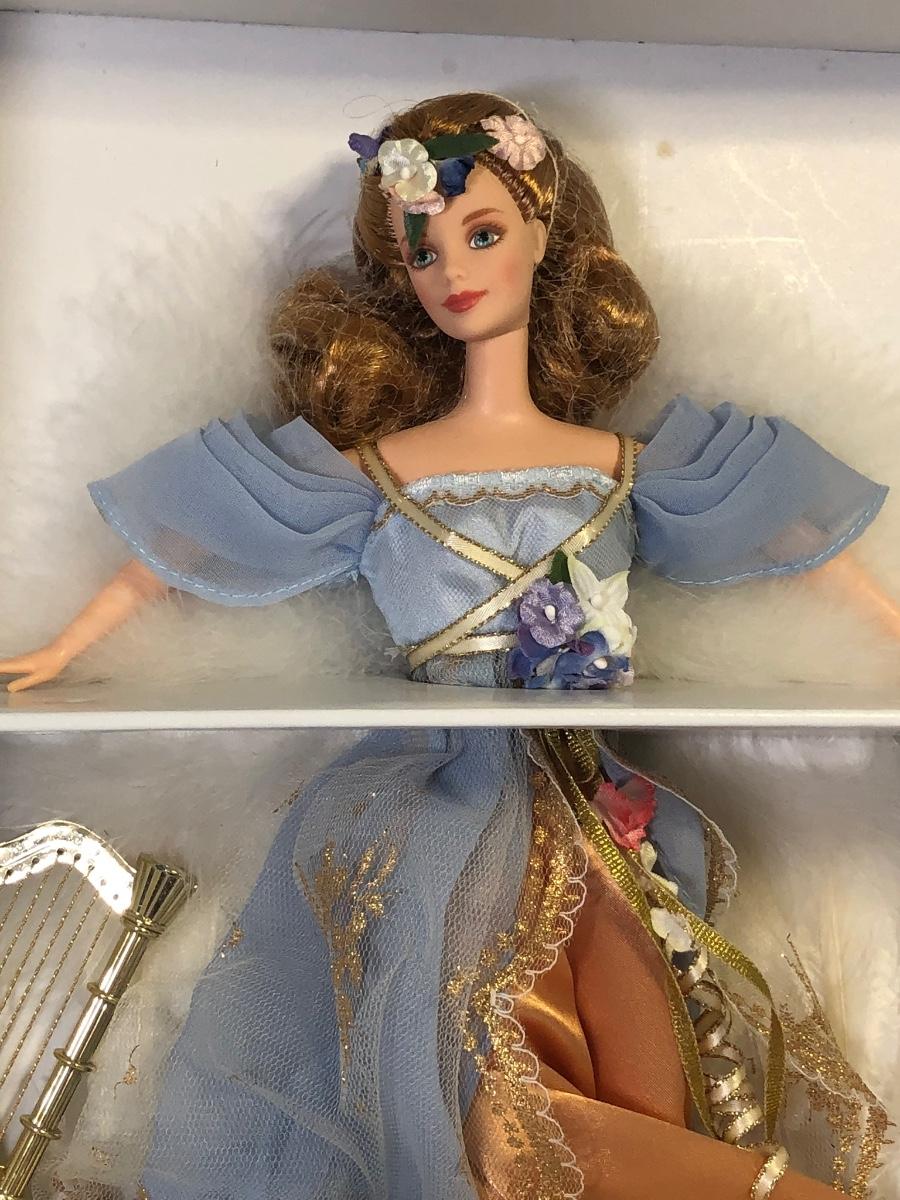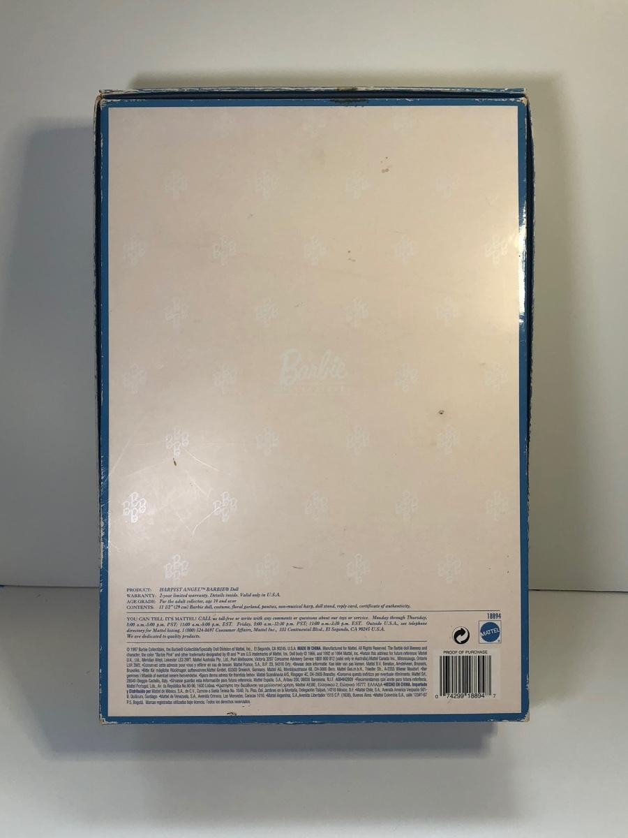 Two boxed 11.5 inch dolls. Harpist Angel Barbie does not have shoes but includes her harp and a stand. She is part of the Angels of Music Collection.