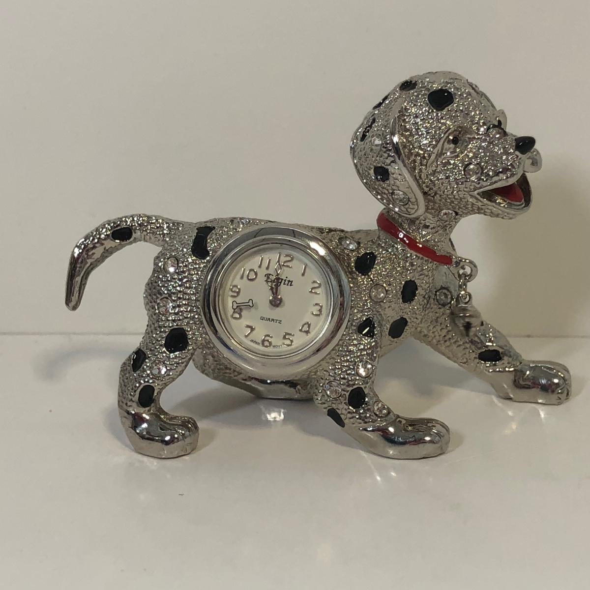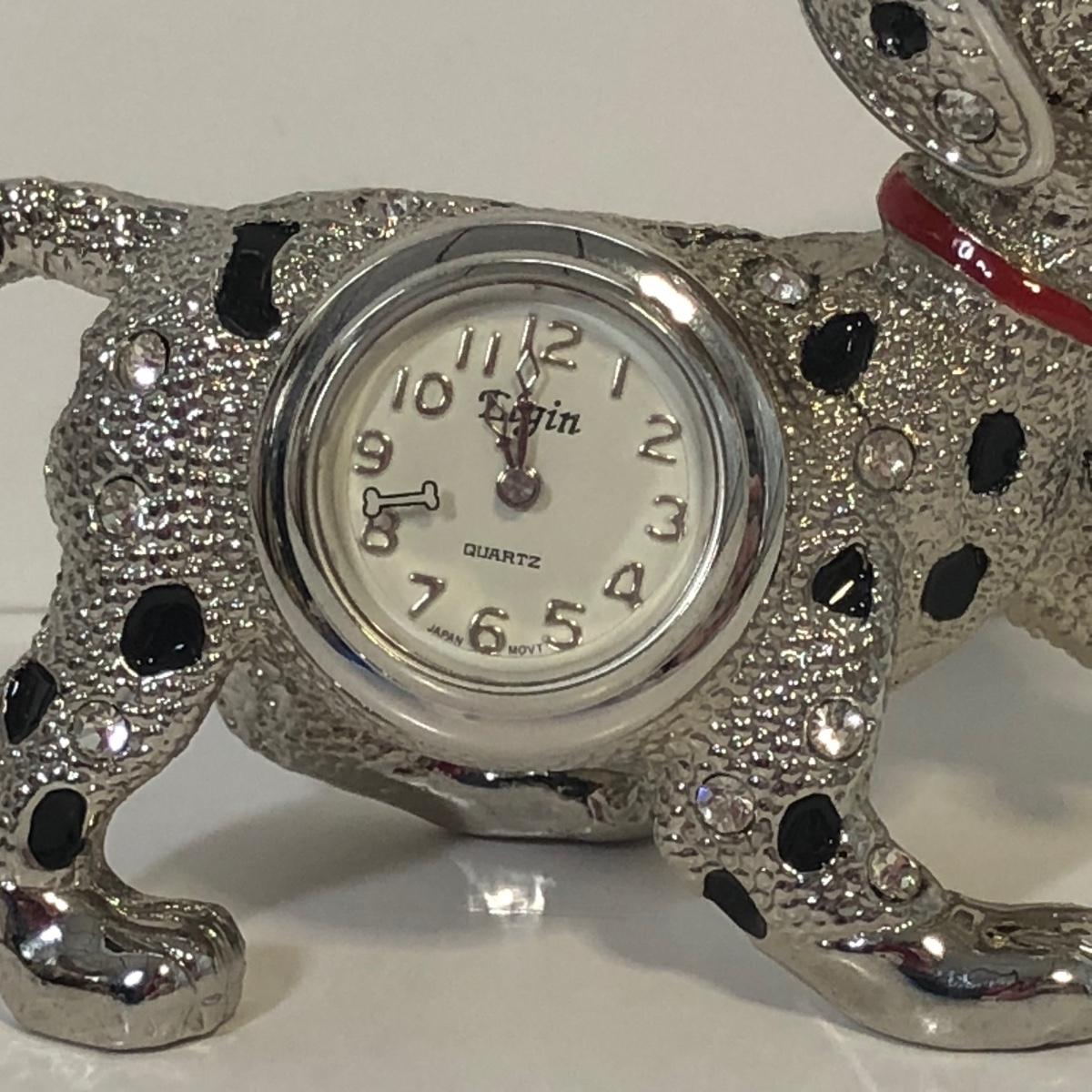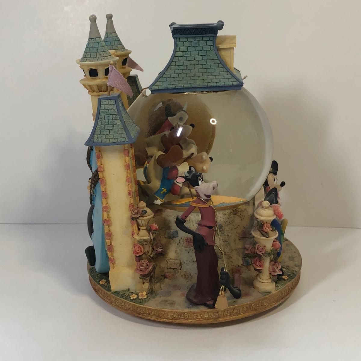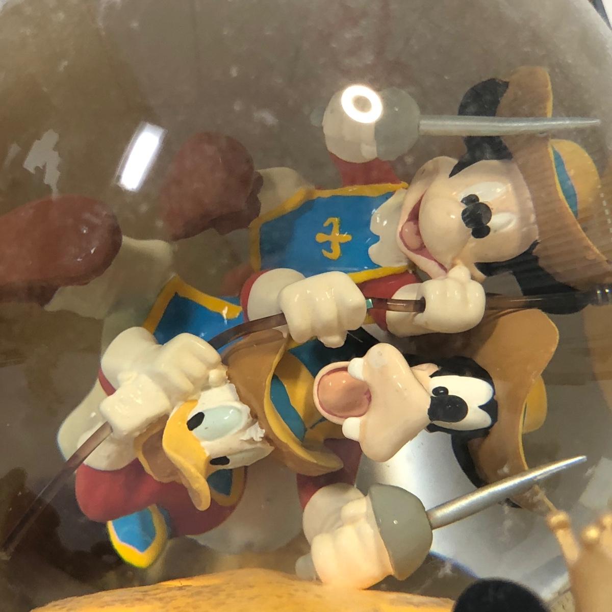 LOT 127M: Three Mousketeers Water Globe/Music Box, Mickey & Pluto Water Globe, Elgin Dalmatian Miniature Clock