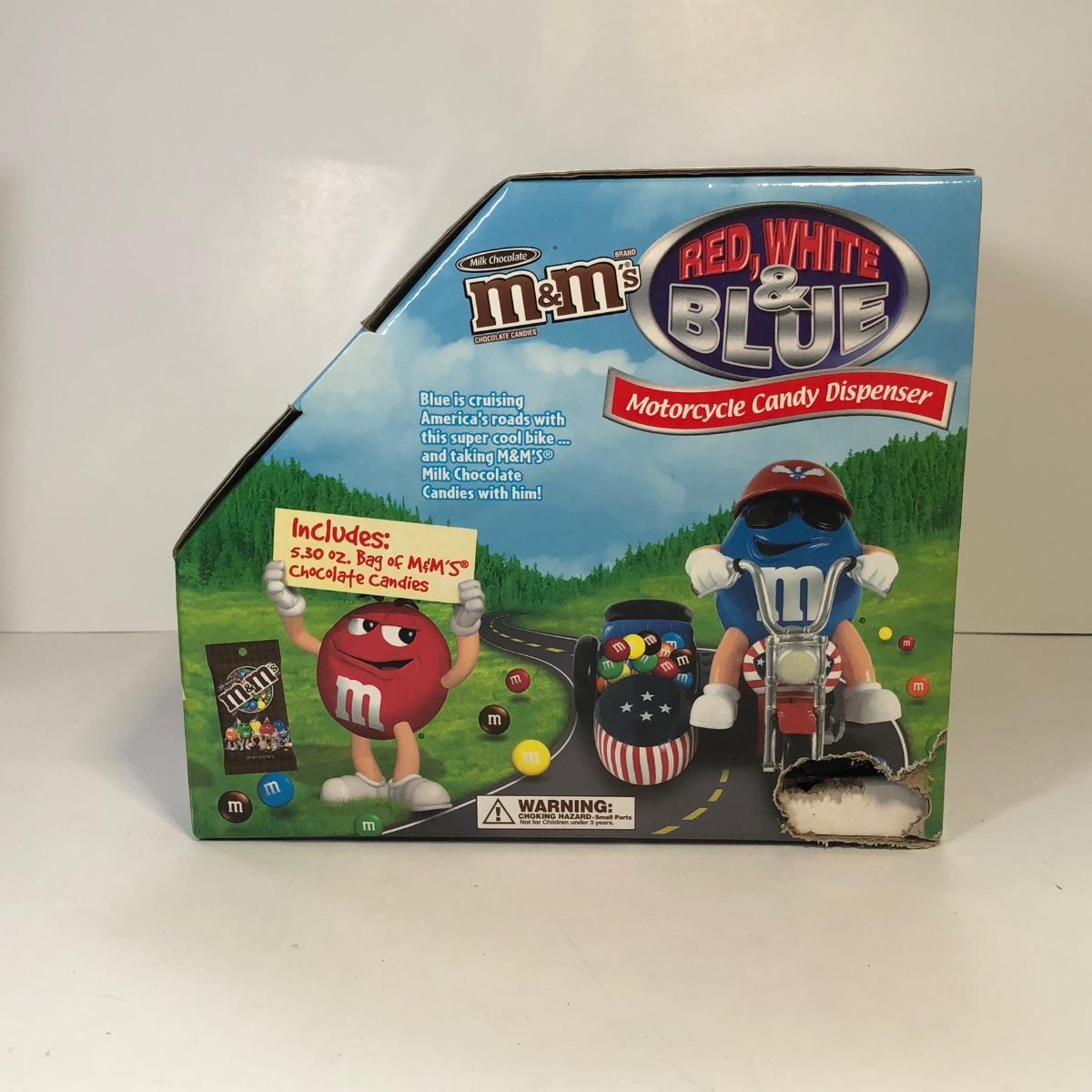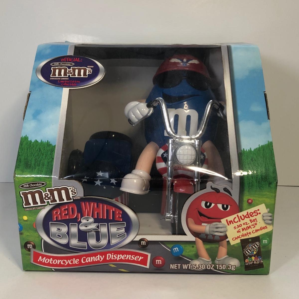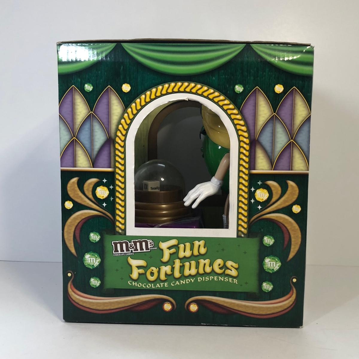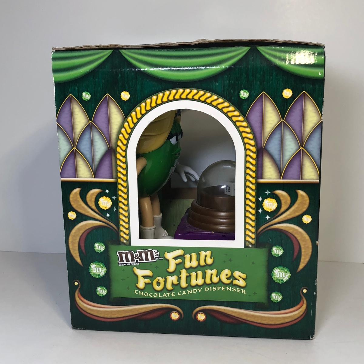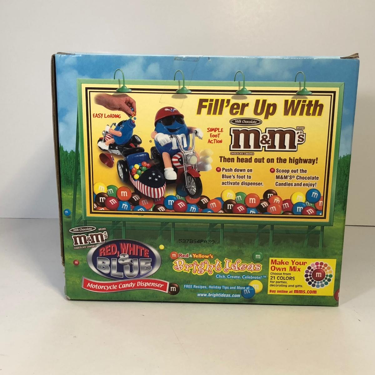 LOT 131M: M&M's Fun Fortunes Madame Green Chocolate Candy Dispenser & Red White & Blue Motorcycle Candy Dispenser NRFB