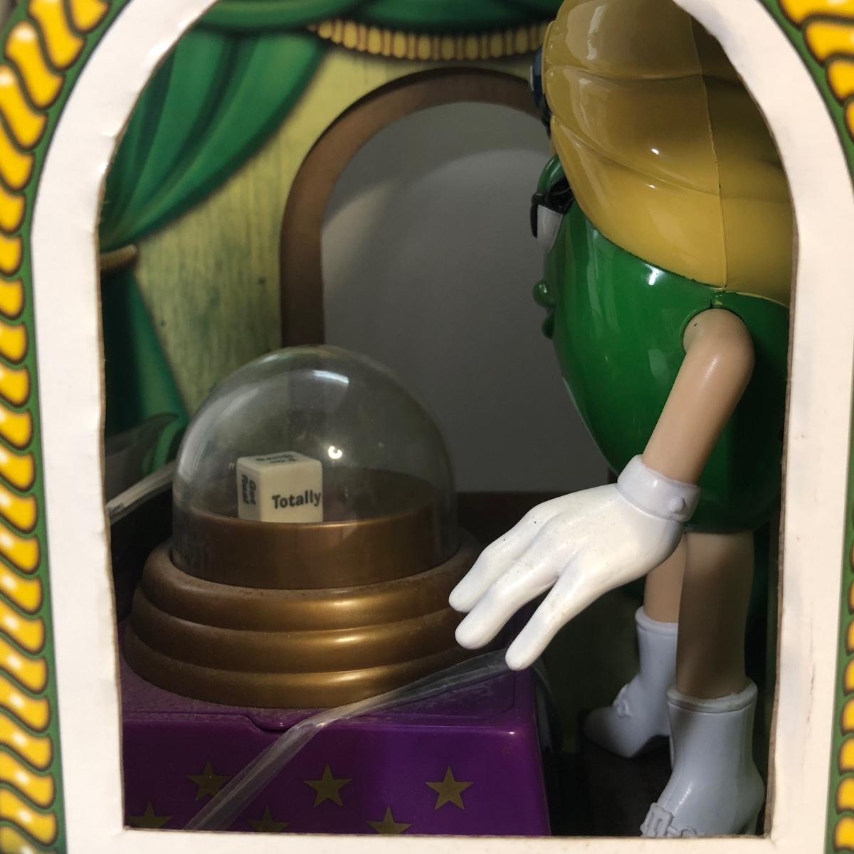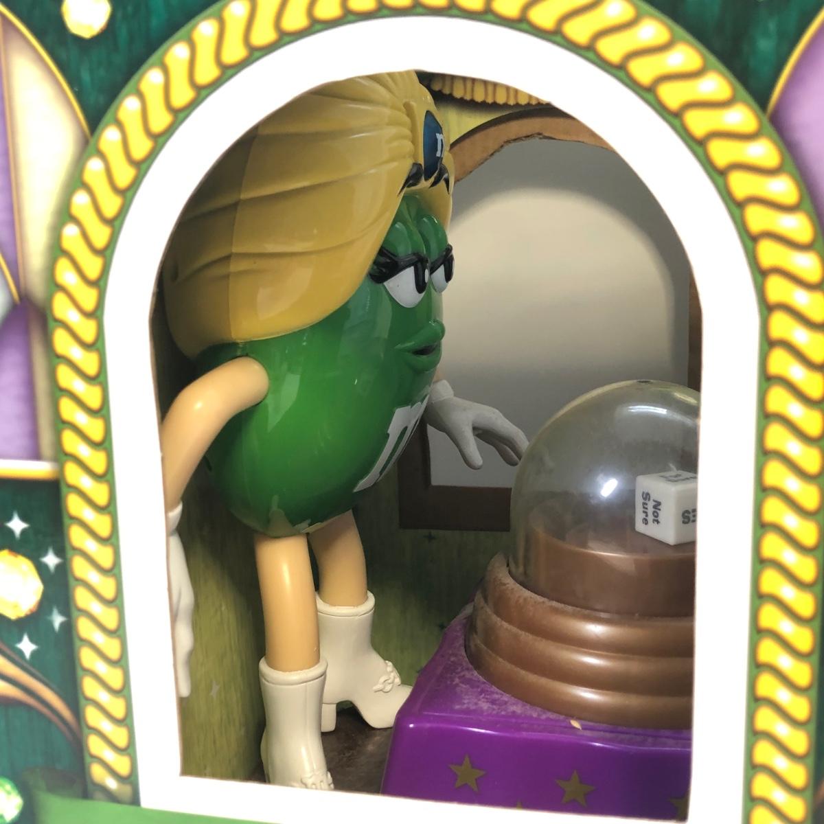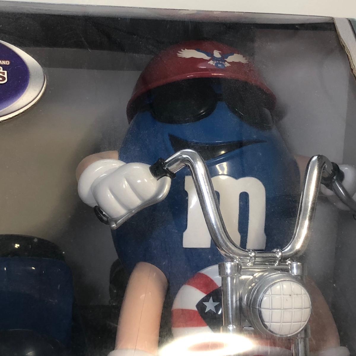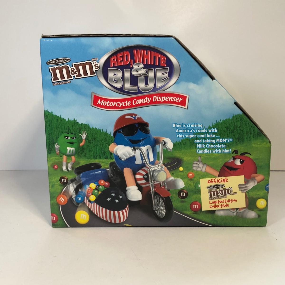 LOT 131M: M&M's Fun Fortunes Madame Green Chocolate Candy Dispenser & Red White & Blue Motorcycle Candy Dispenser NRFB