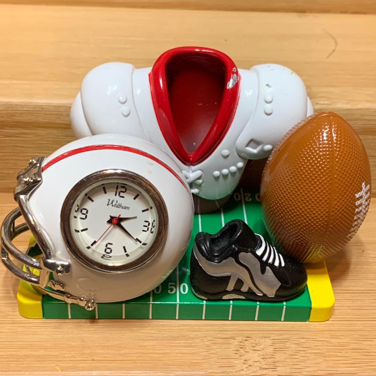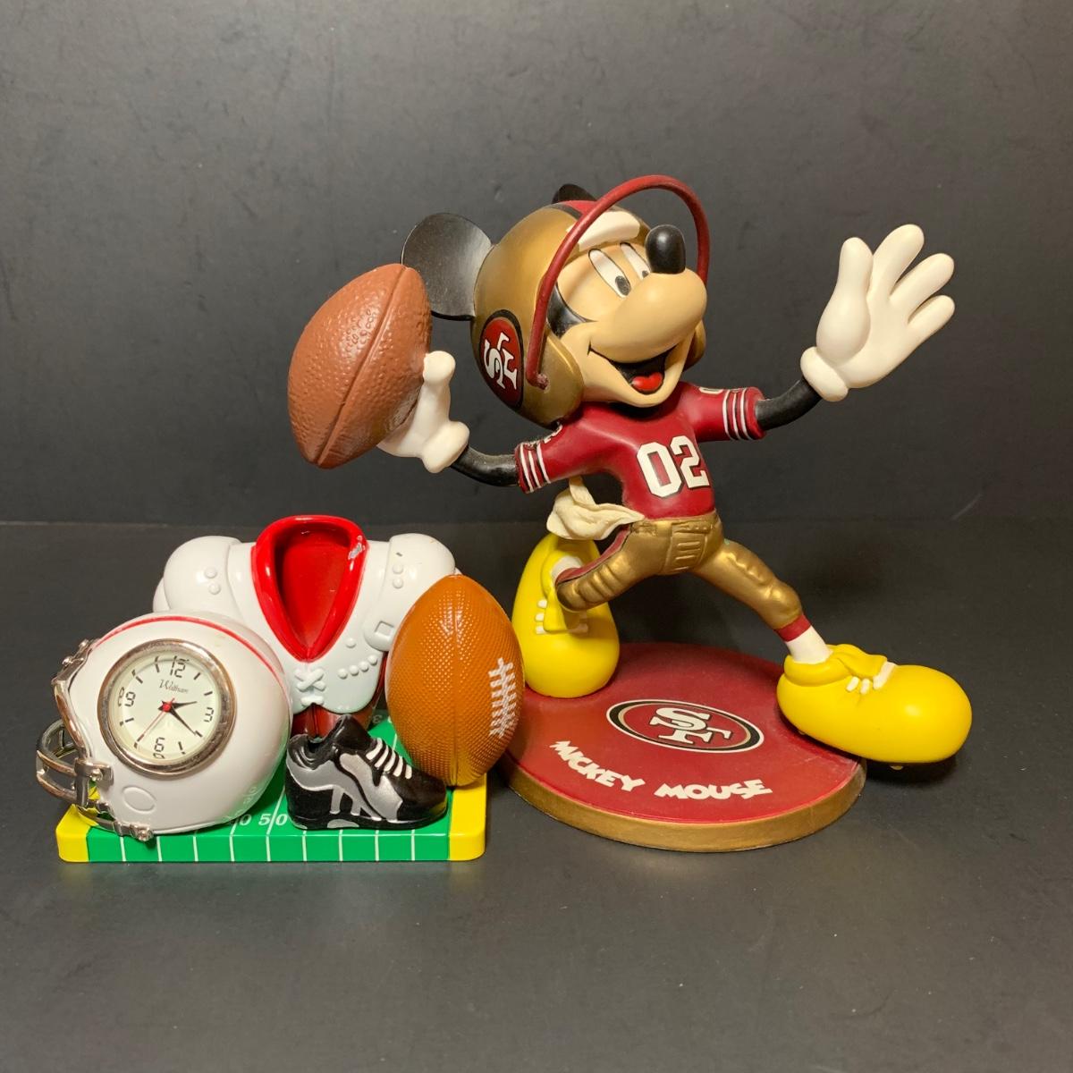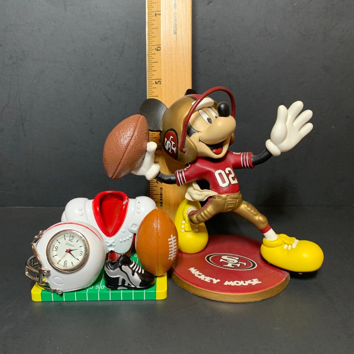 LOT 136: Danbury Mint - Mickey Mouse San Francisco 49ers Figure and Waltham Diecast Metal Football Mini Clock