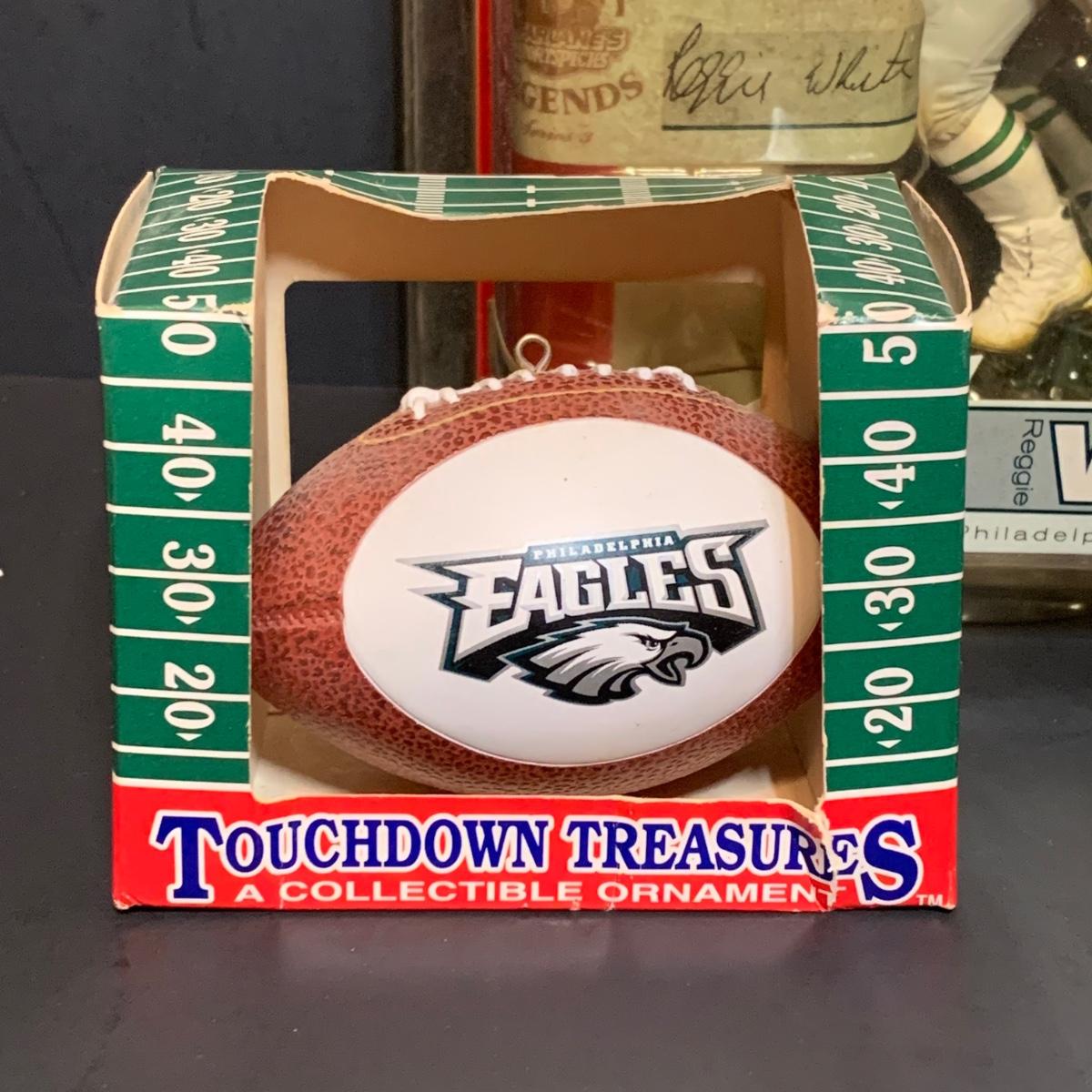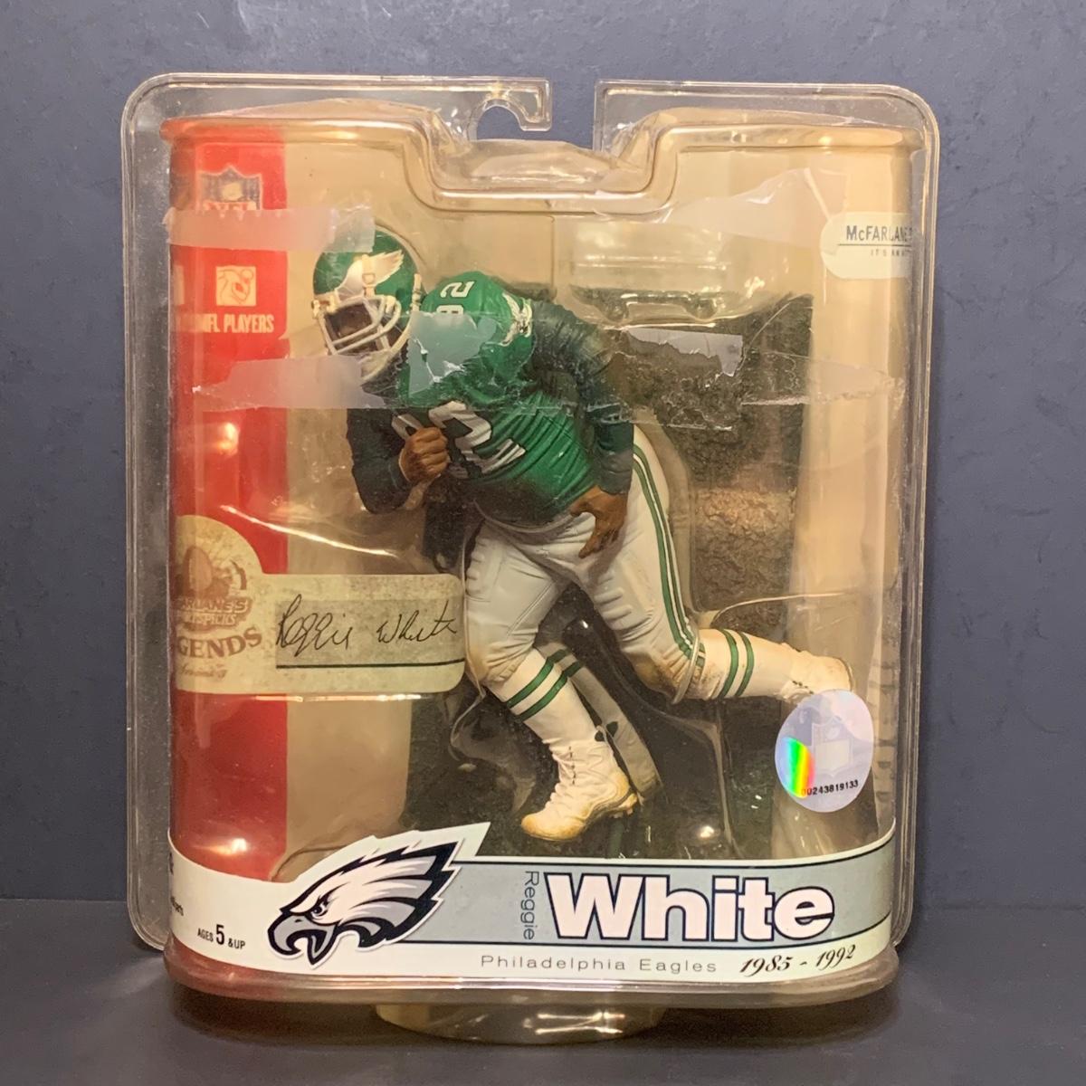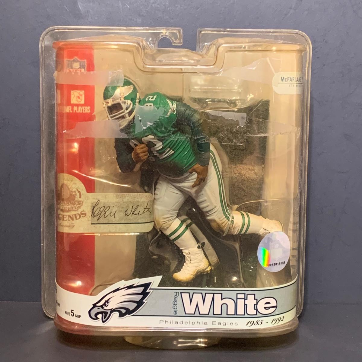 LOT 138: Philadelphia Eagles Collection Including McFarland Reggie White Action Figure, Riddell 2 7/8 Helmet and Football Ornament