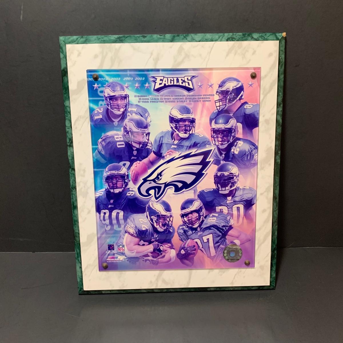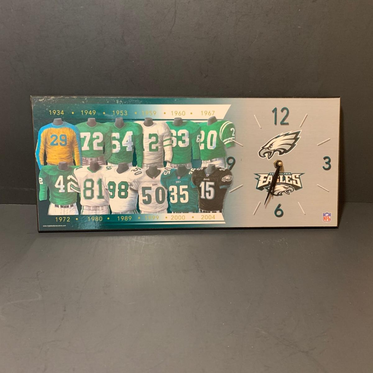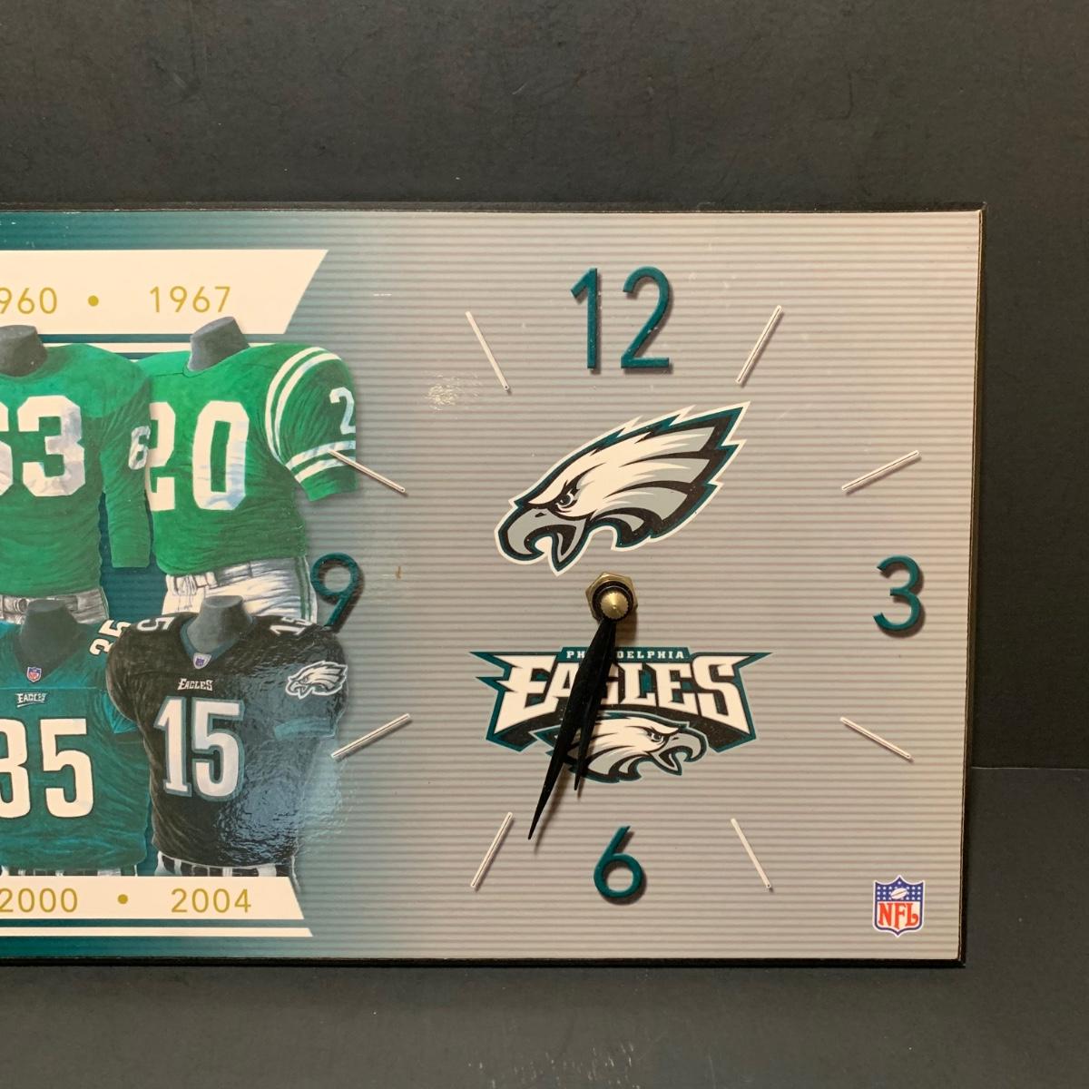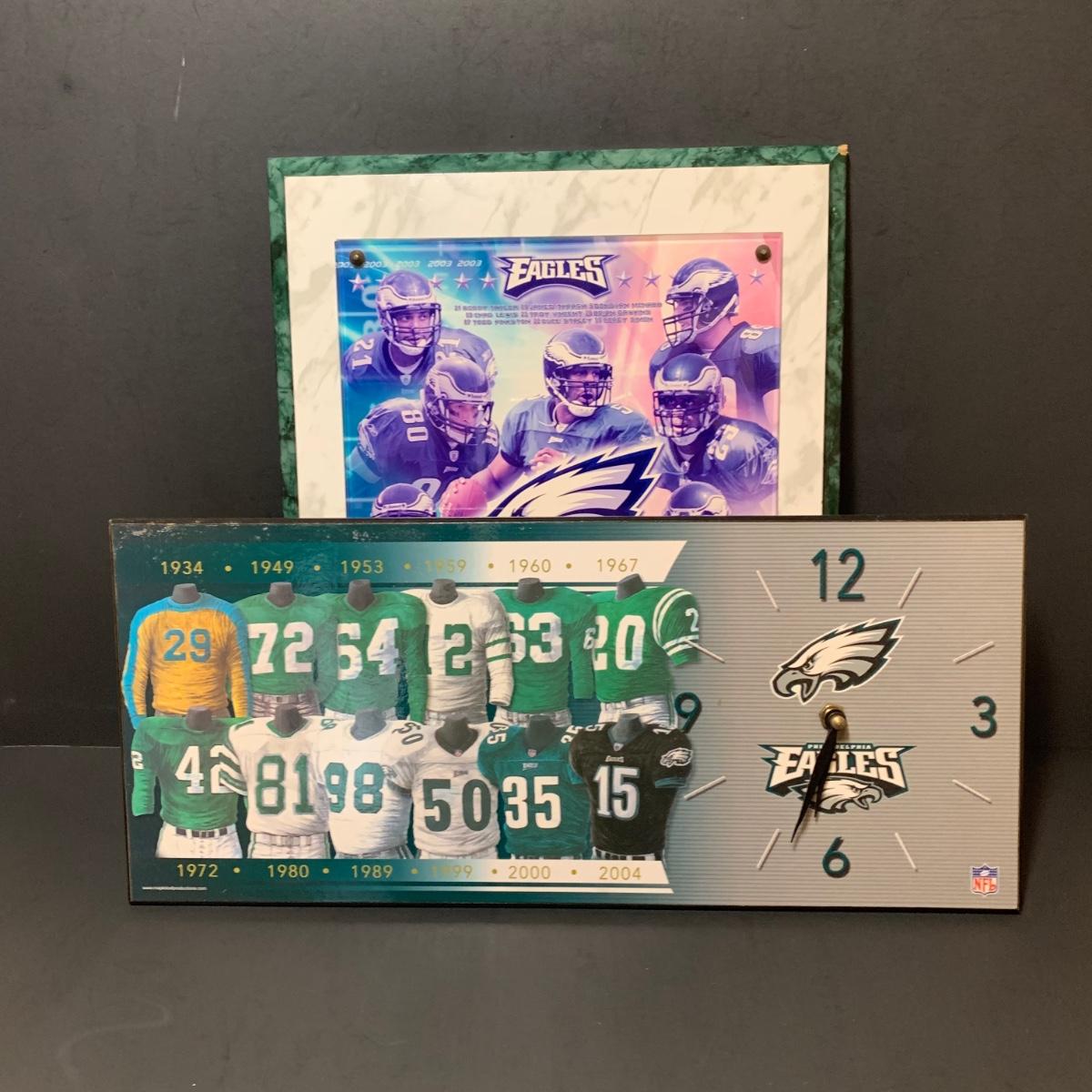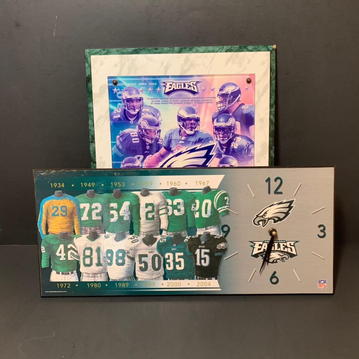 LOT 141: Philadelphia Eagles Wall Clock and Framed Poster