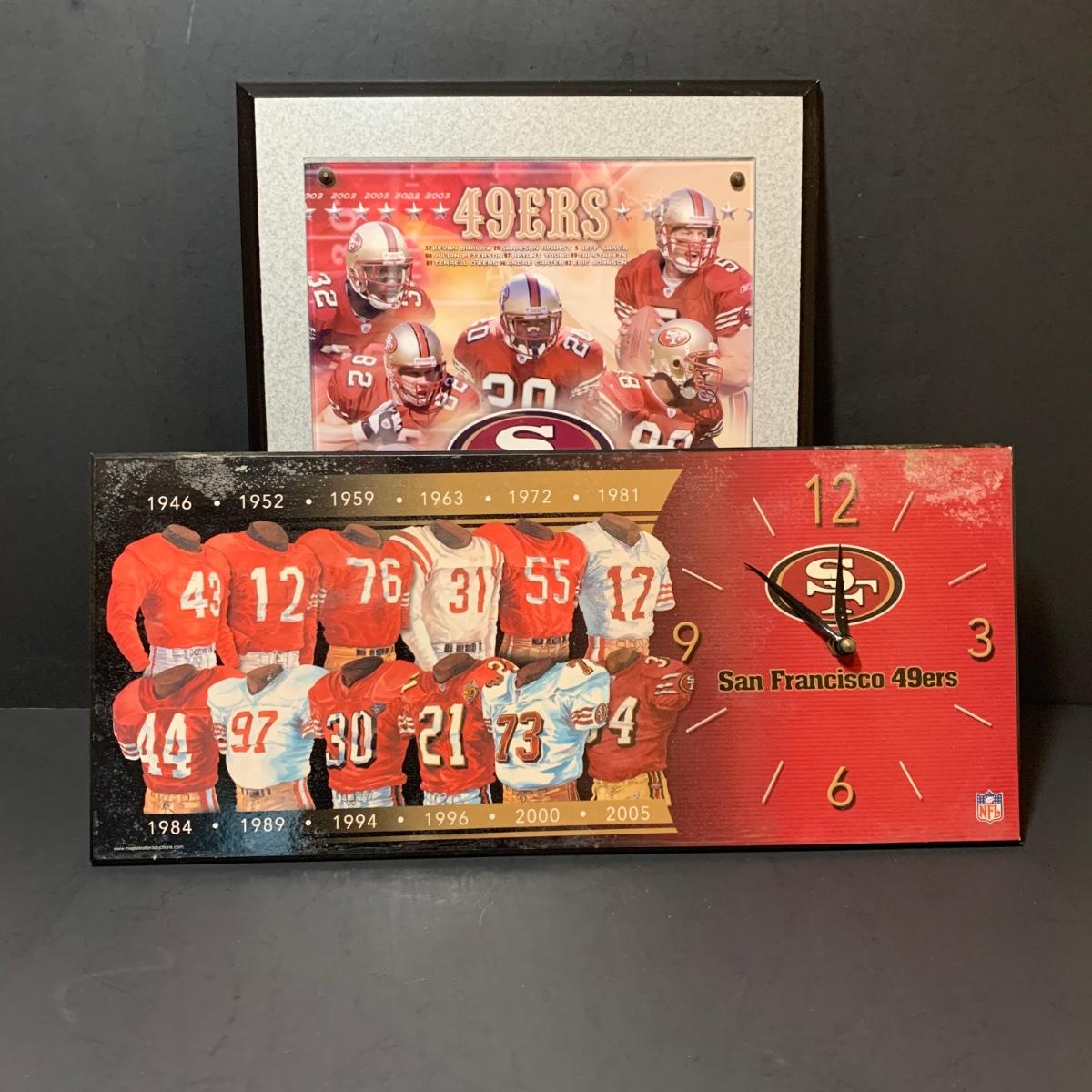 LOT 142: San Fransico 49er Wall Clock and Framed Poster
