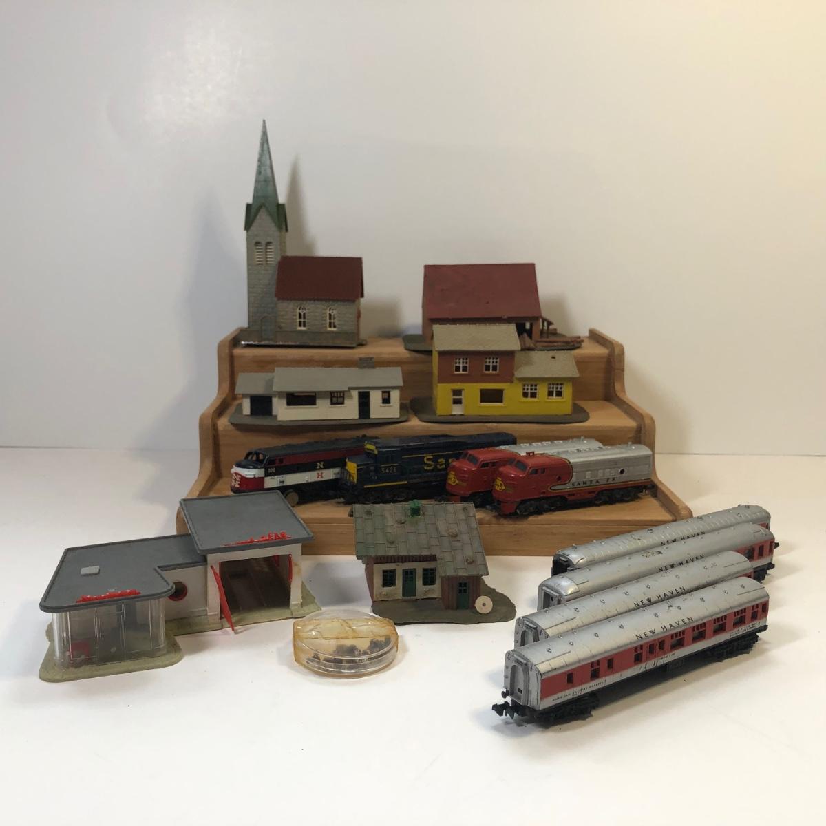 LOT 164M: Train Miniatures - Houses, Engines, & New Haven Cars