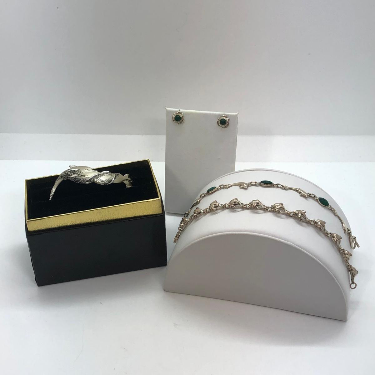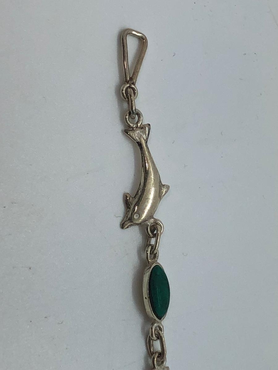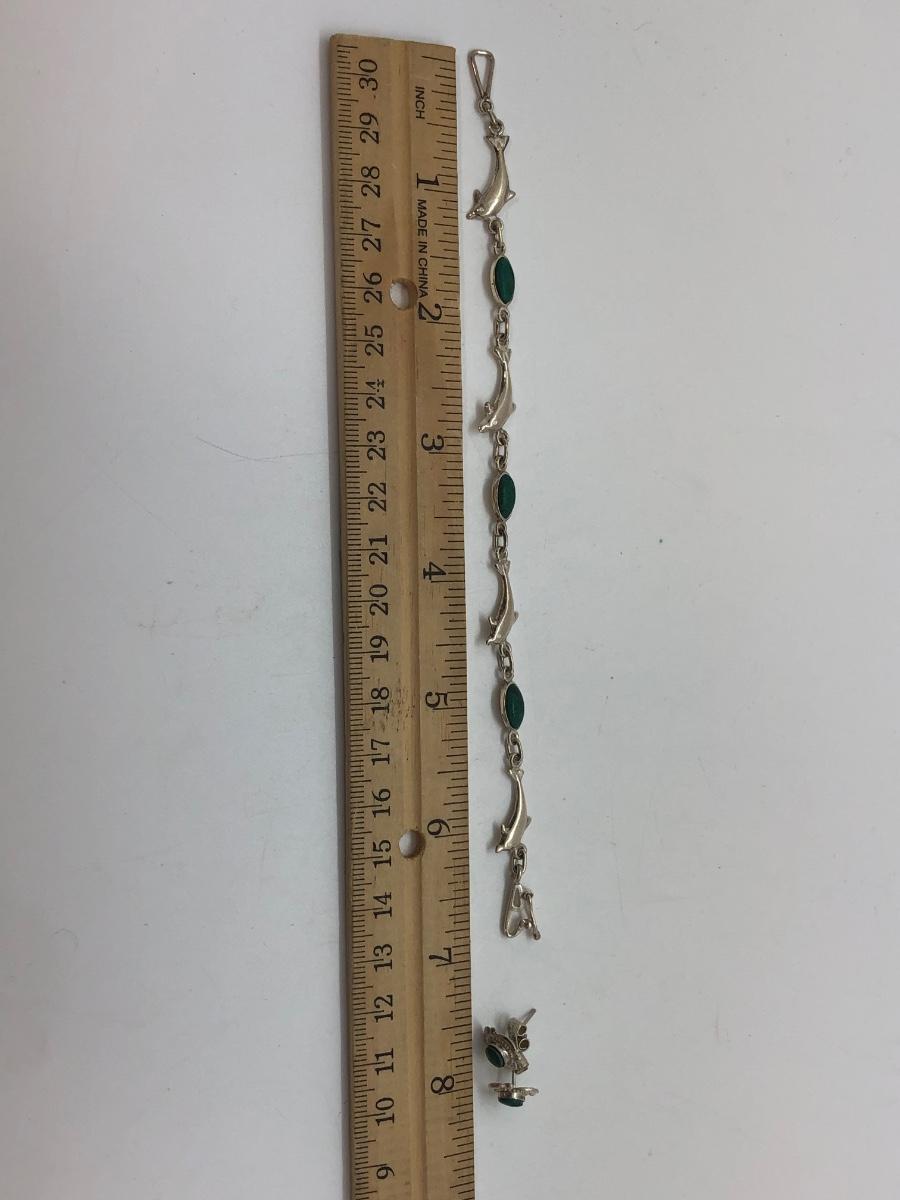 LOT 184M: Sterling Silver Dolphin Cuff Bracelet, Malachite Bracelet & Earrings & Dolphin Bracelet