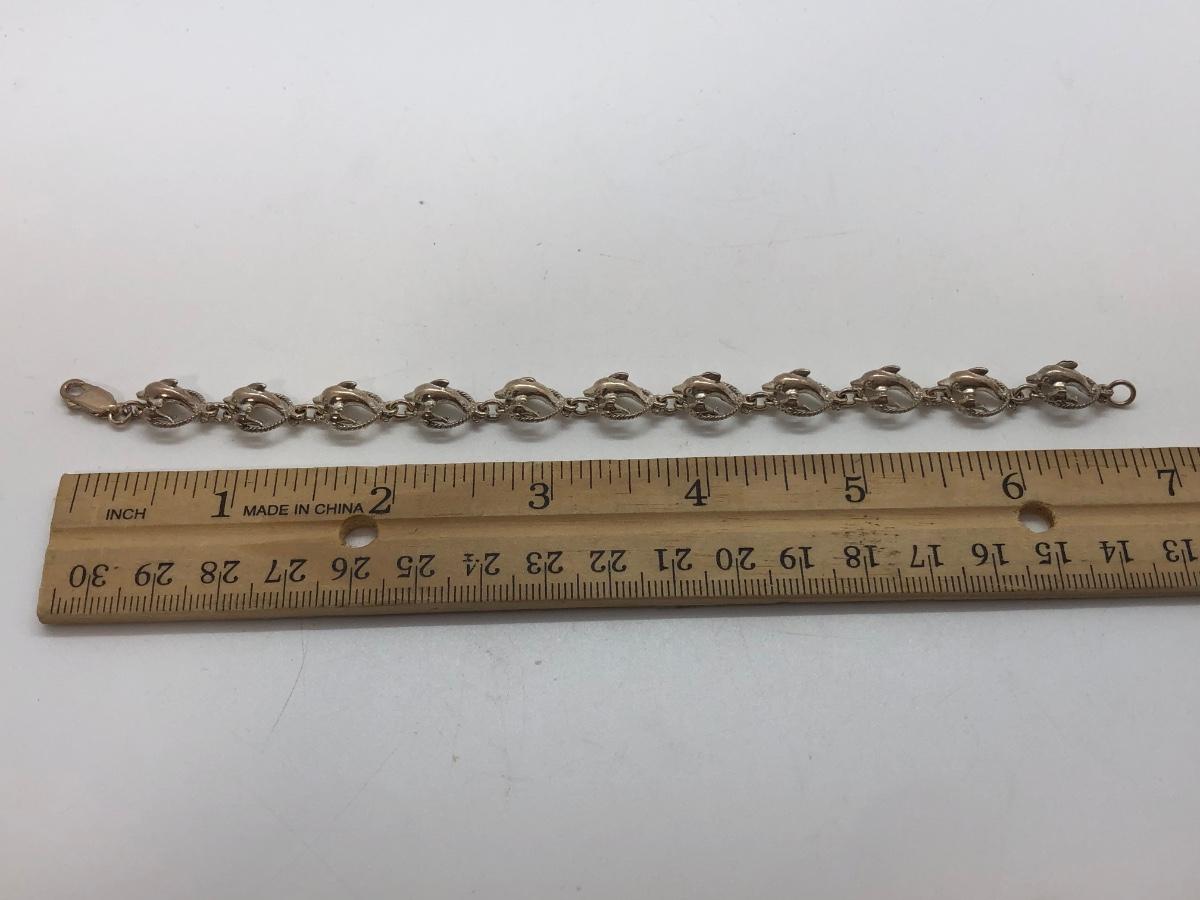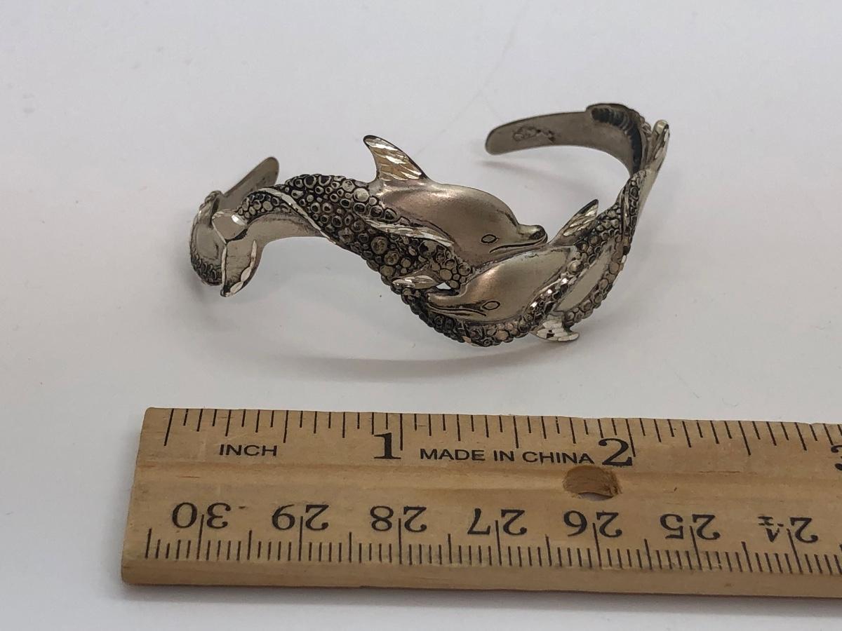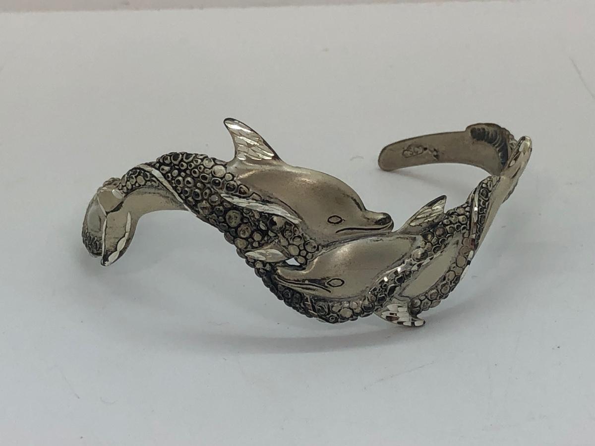 LOT 184M: Sterling Silver Dolphin Cuff Bracelet, Malachite Bracelet & Earrings & Dolphin Bracelet