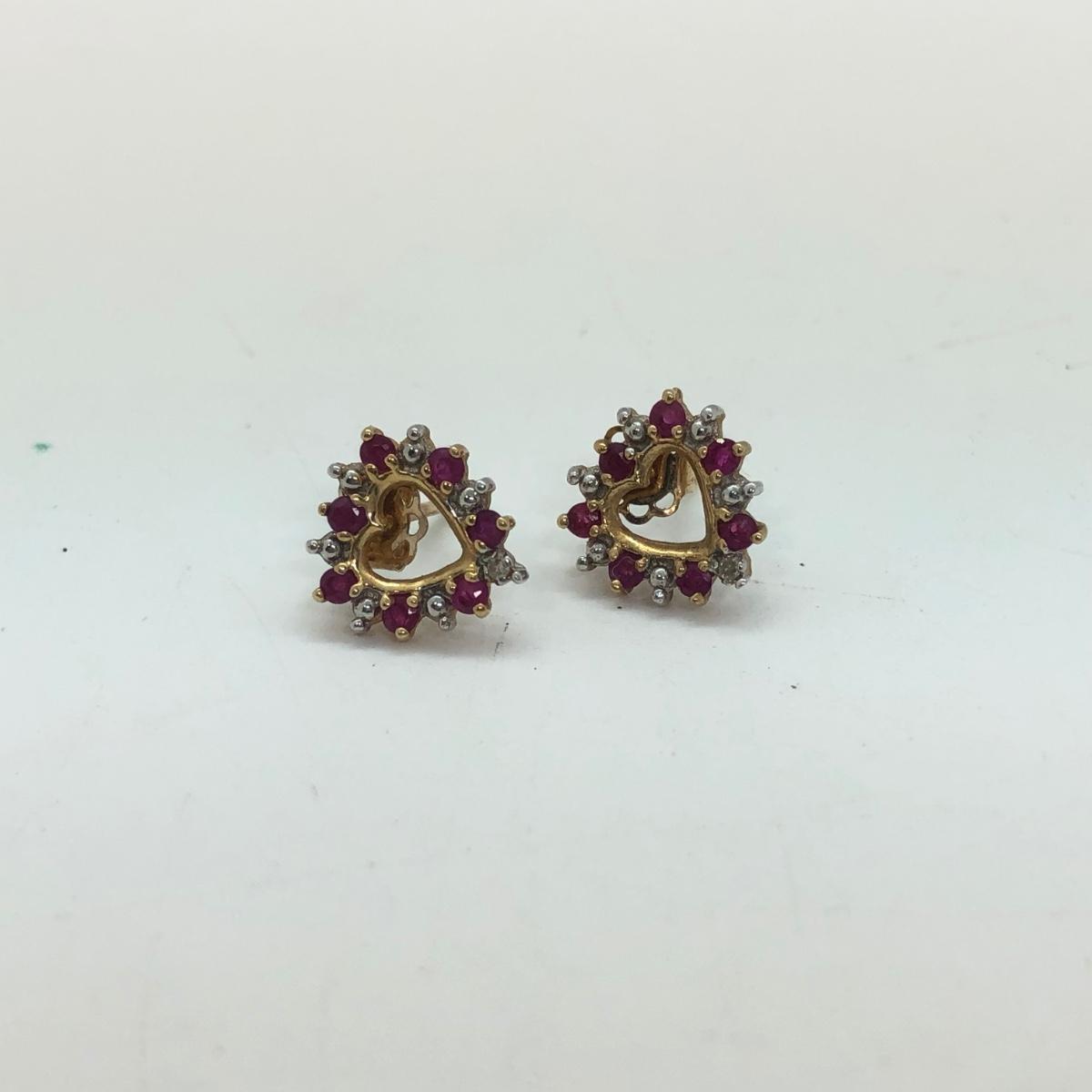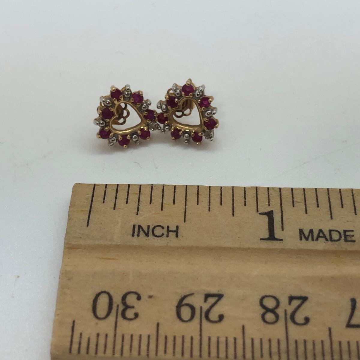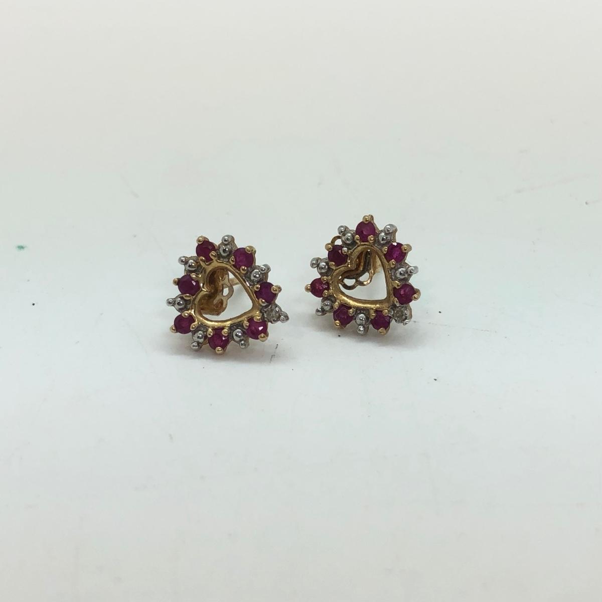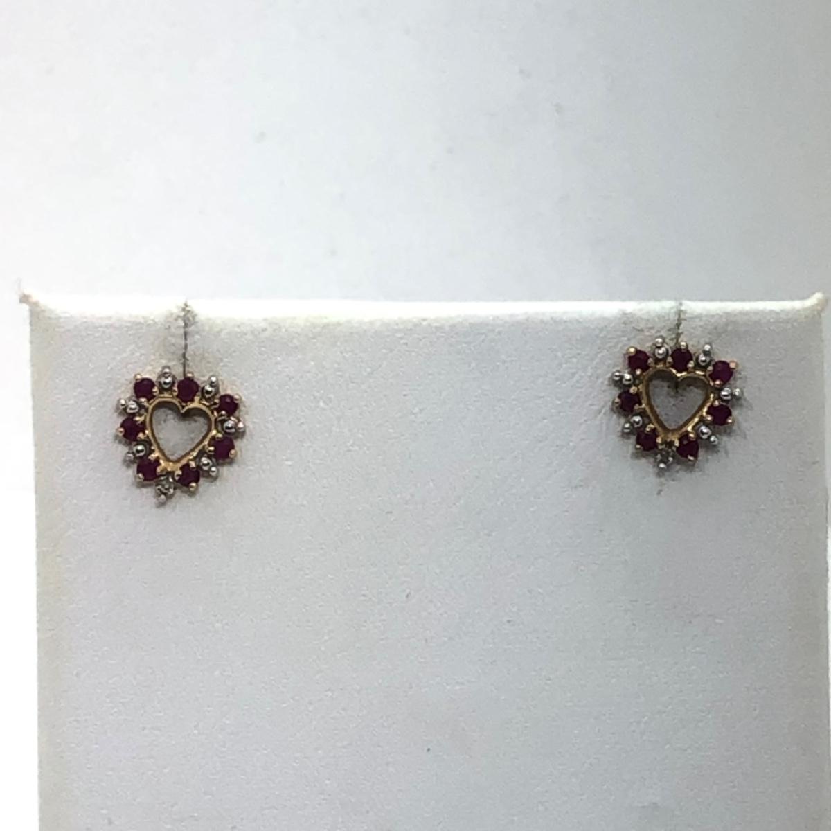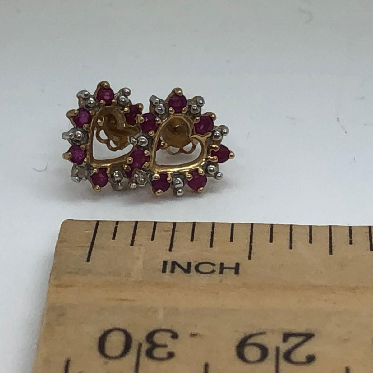 LOT 185M: 10KT Gold Ruby & Diamond Pierced Earrings