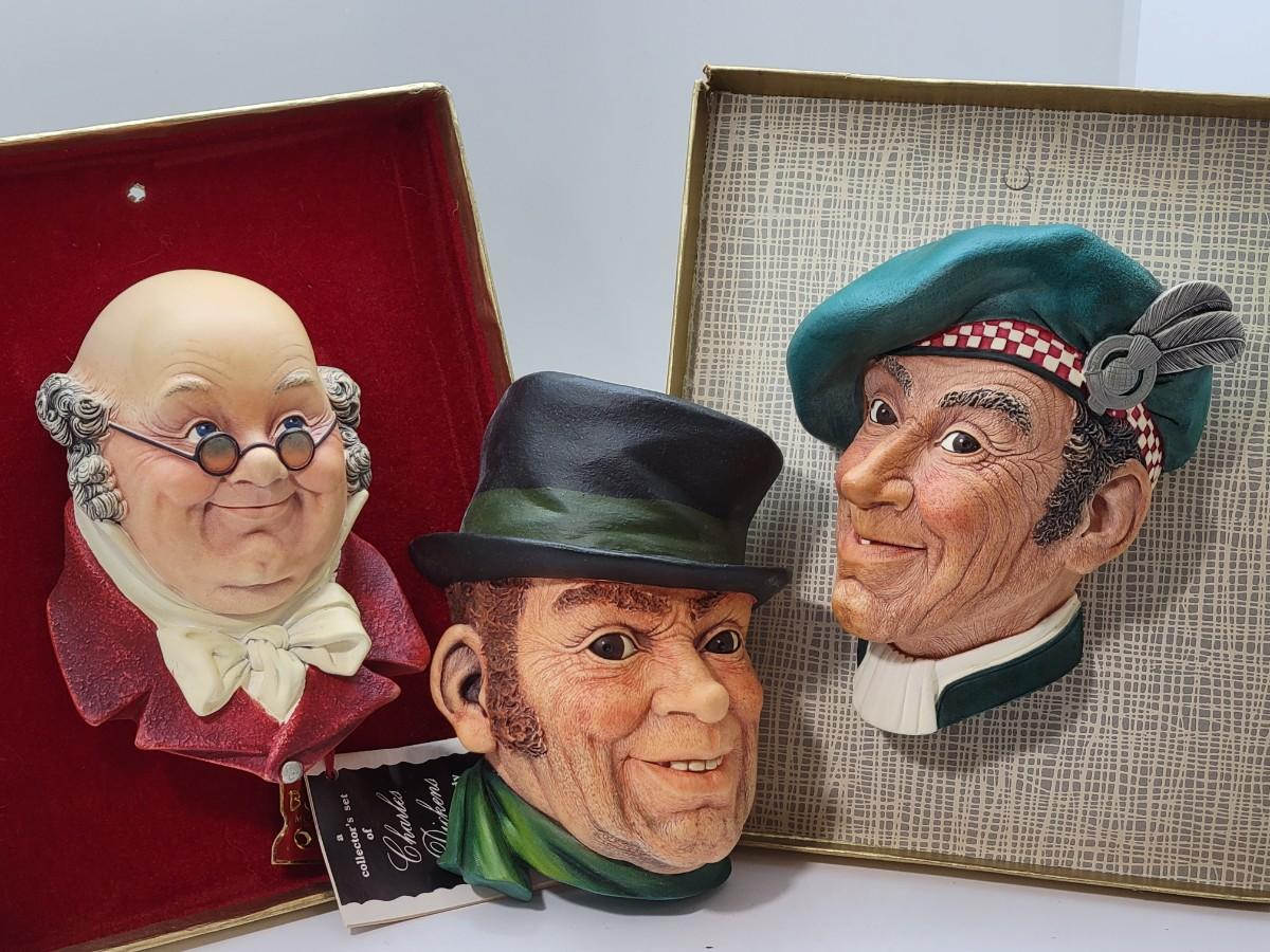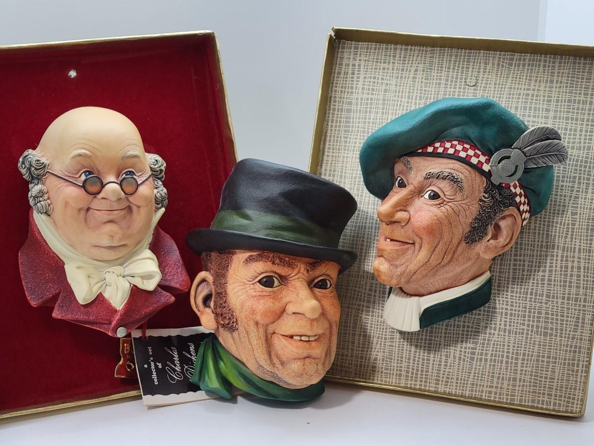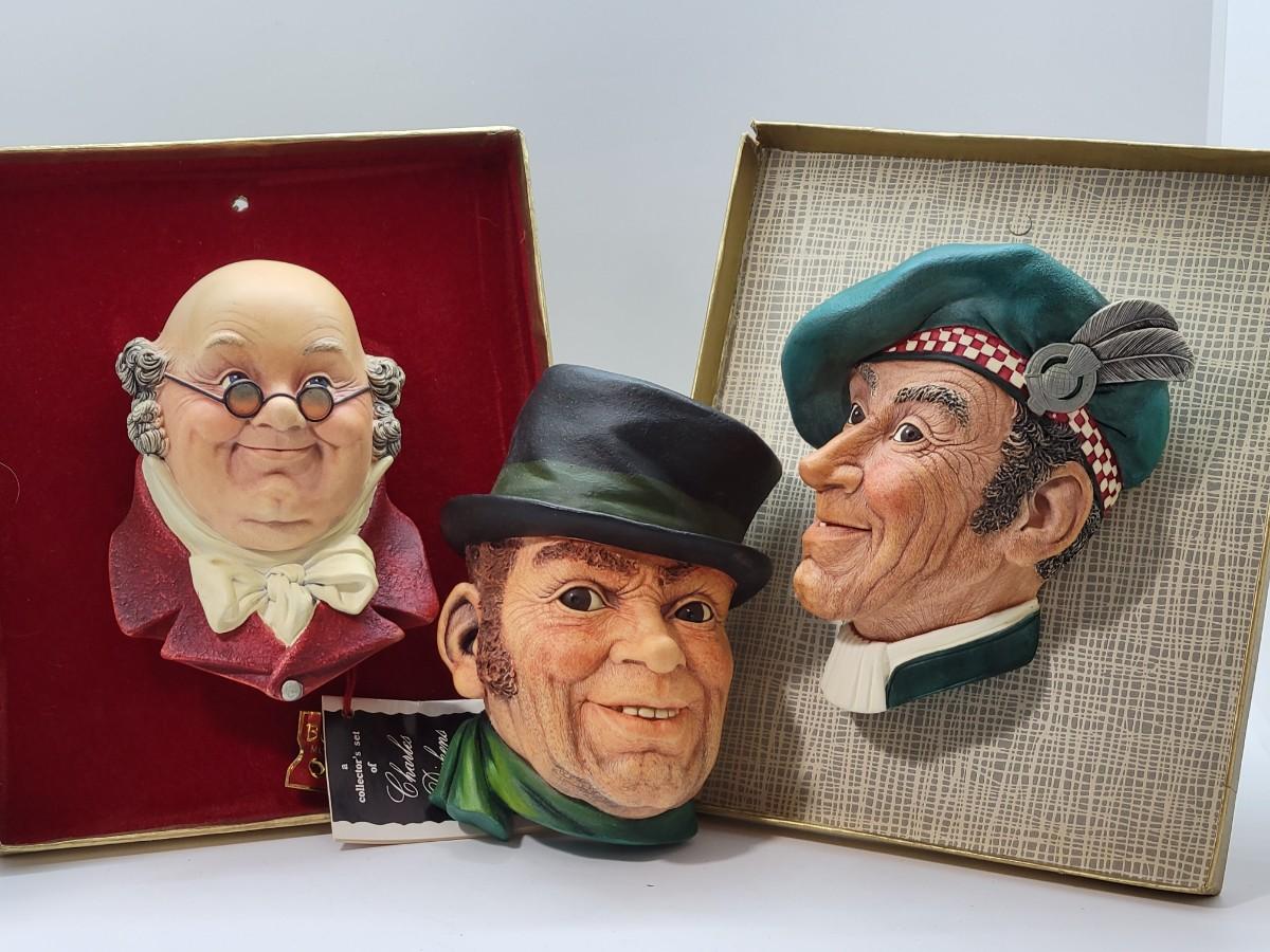 LOT 6: Bossons Chalkware Character Head Wall Masks: Jock, Paddy, & Mr. Pickwick
