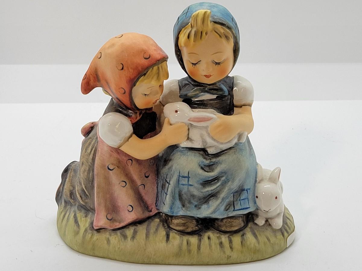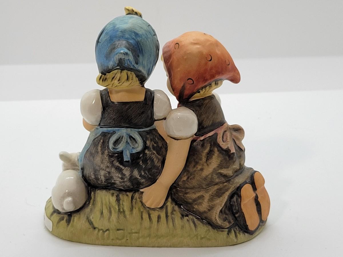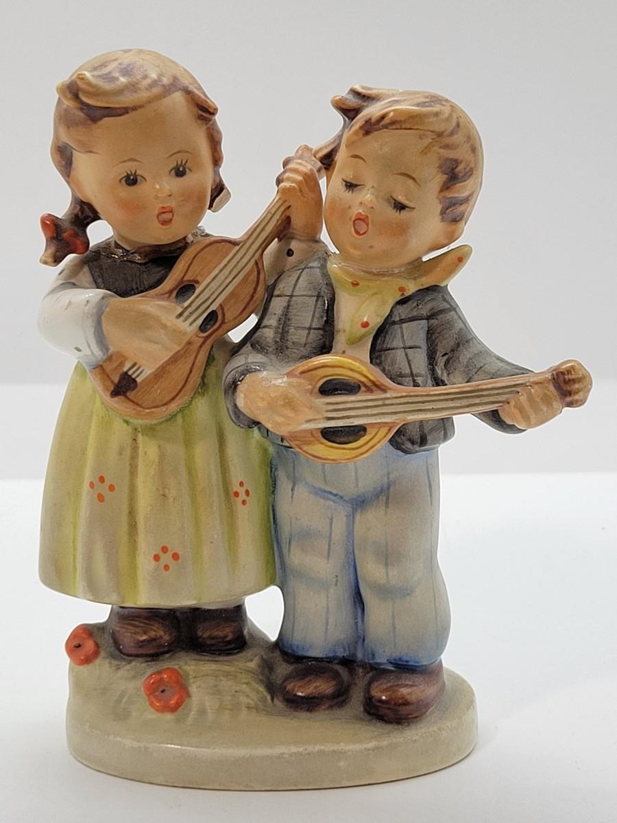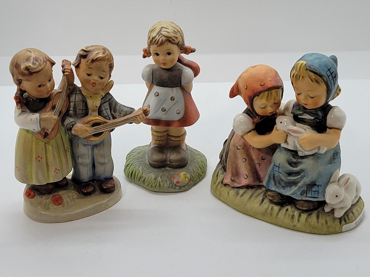 LOT 18: Hummel Figurines: For the One I Love, Happy Days Boy & Girl with guitars #156 2/0, Easter Time #384