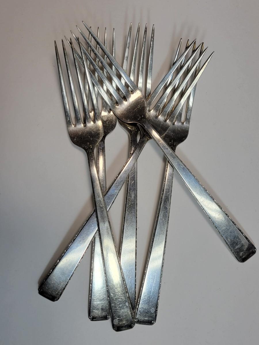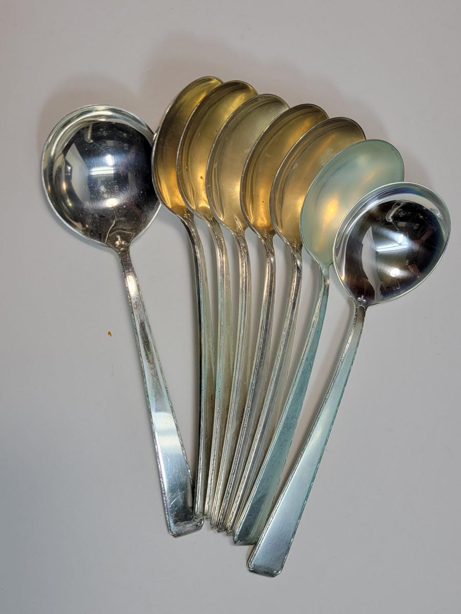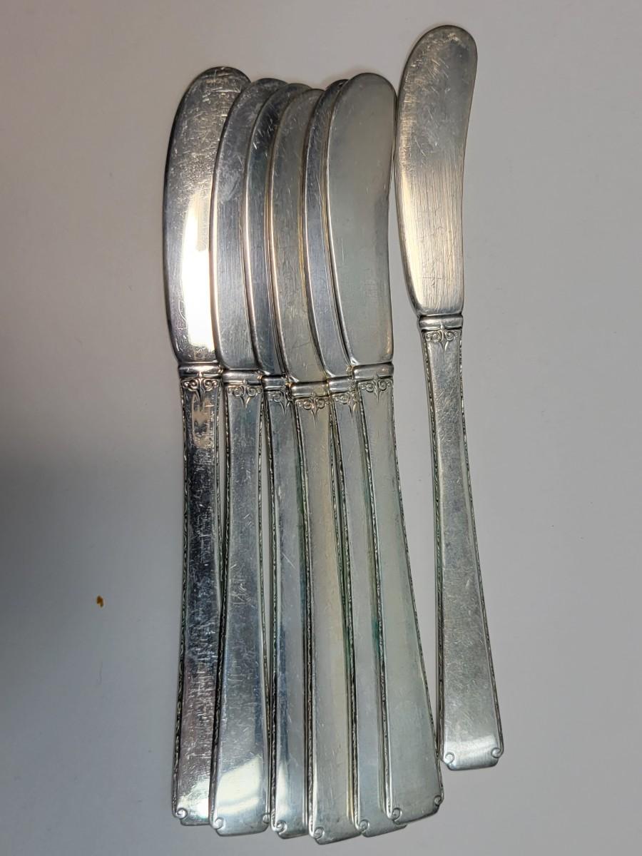 Total Weight is 2553 grams, not including knives which have sterling handles and stainless steel blades and were not weighed.