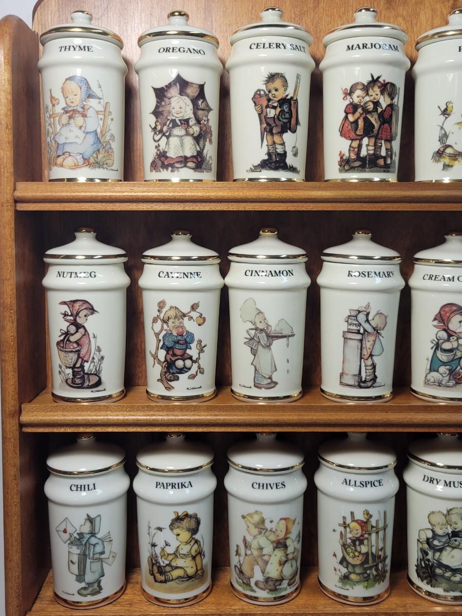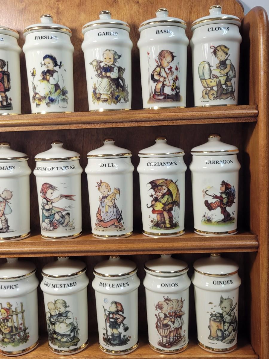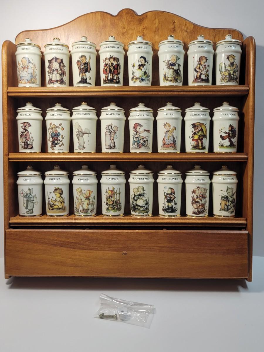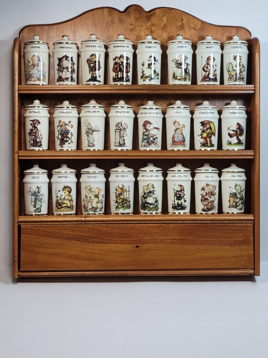 LOT 35: Hummel Complete Collection of 24 Spice Jars & Spice Rack. All in Original Boxes