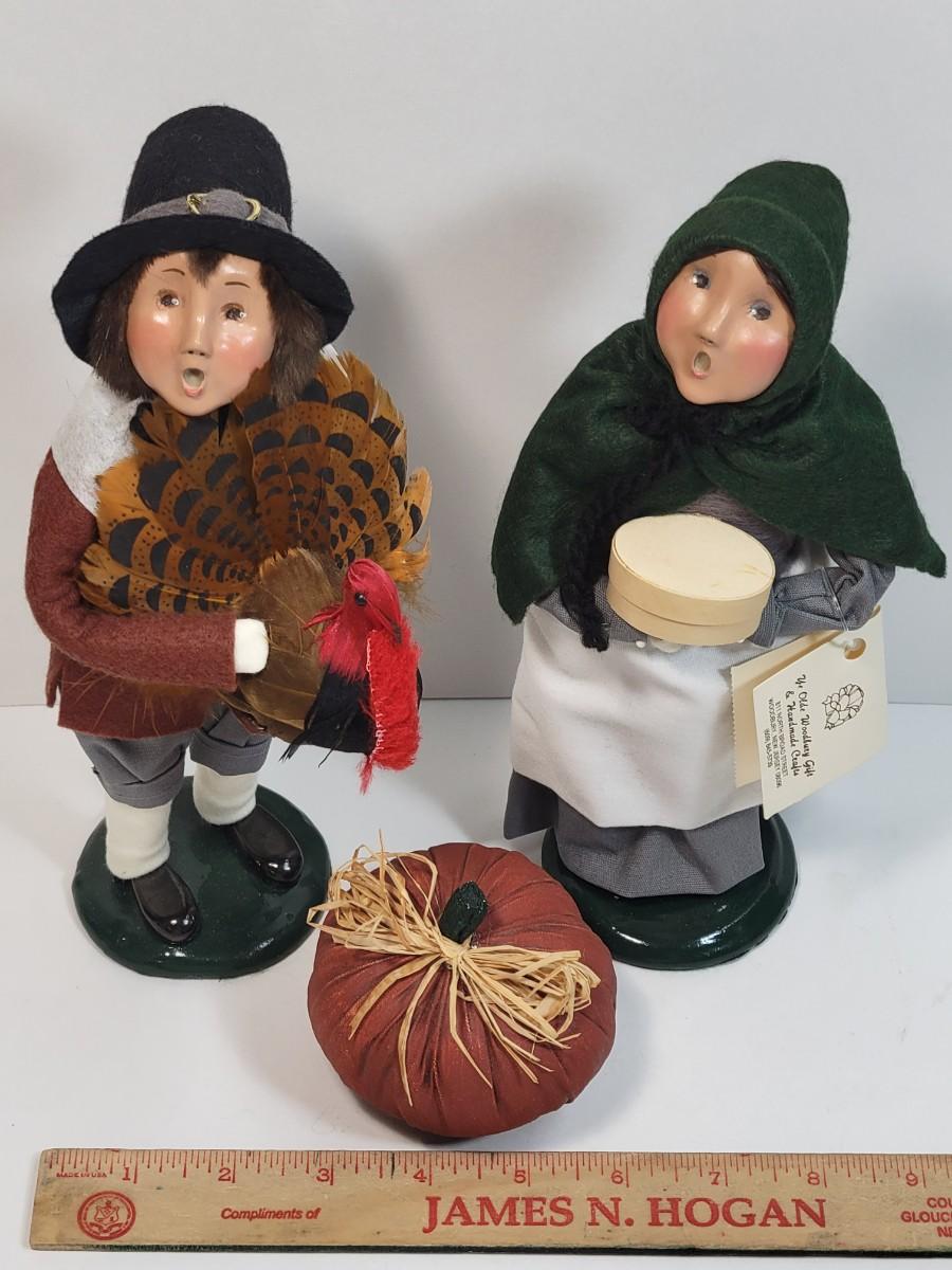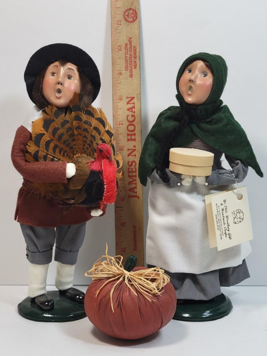 LOT 39: Byer's Choice: 1997 Pilgrim Man with Turkey, 1997 Pilgrim Woman with pumpkin