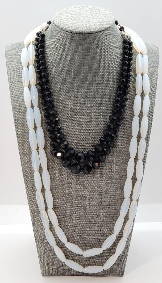 LOT 54: Laguna Double Strand Glass Beads & Opalite Strand 26"