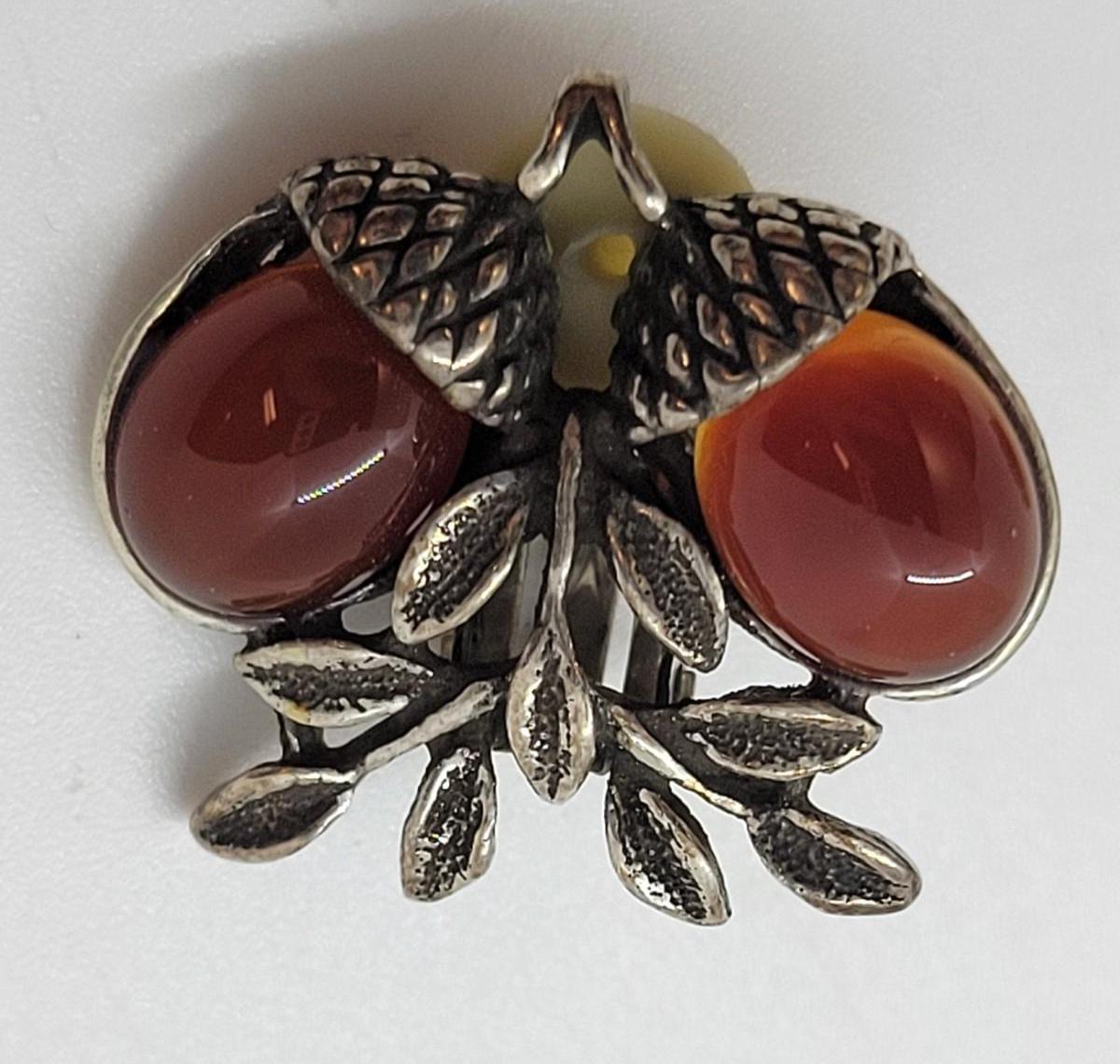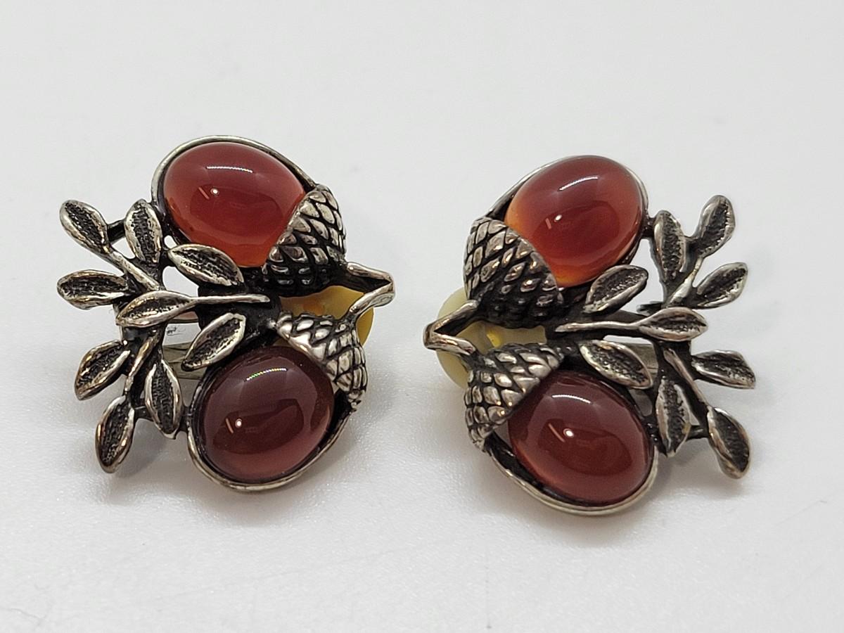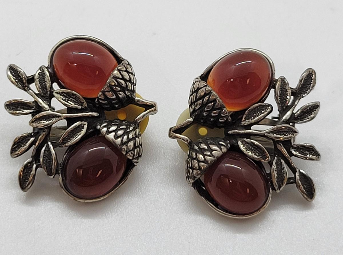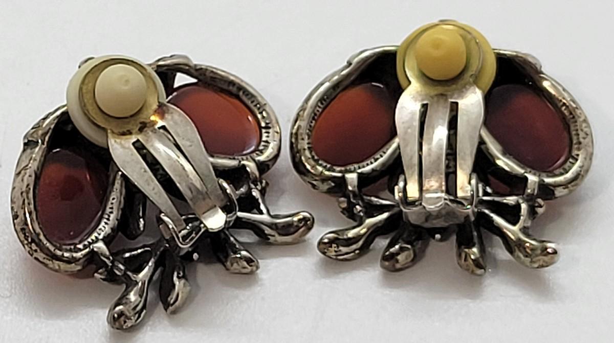 LOT 55: Vintage Amber Sterling Silver 925 Clip-On Earrings