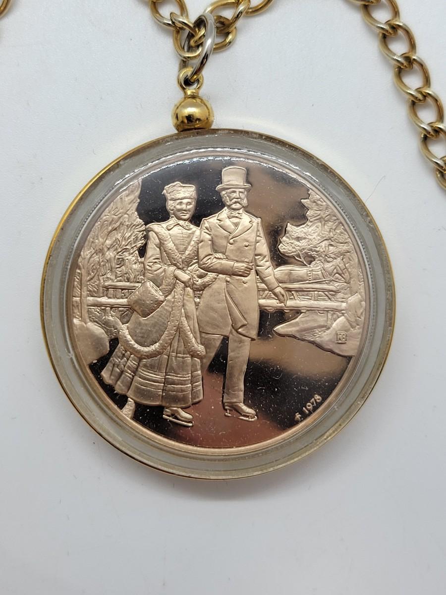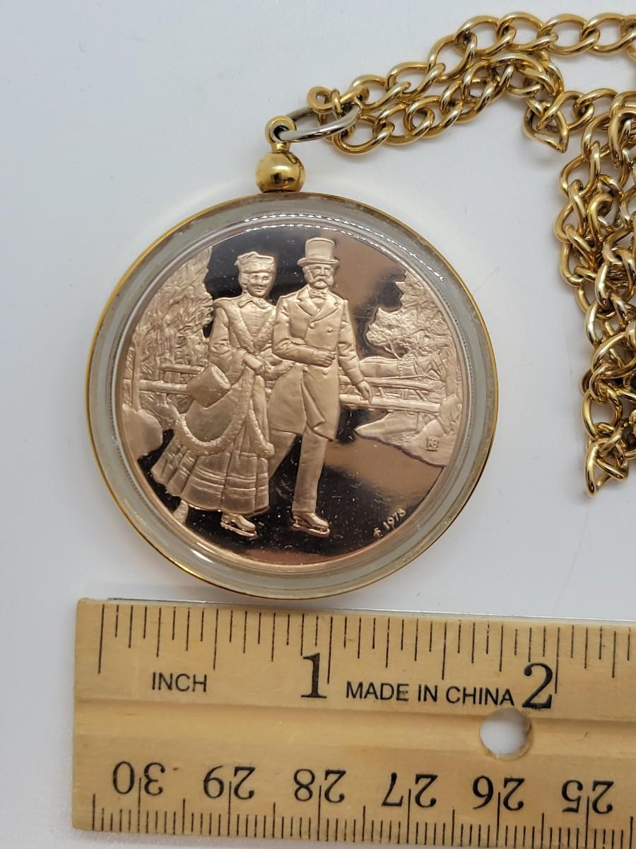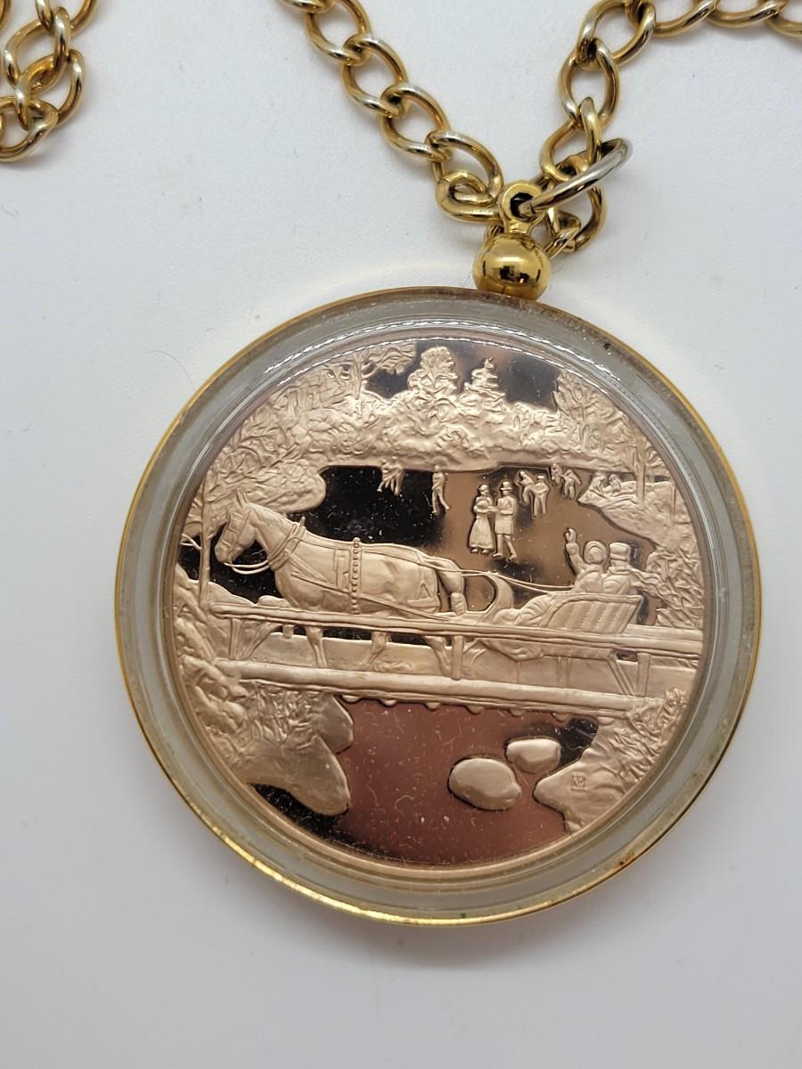 LOT 64: Franklin Mint 1978 Bronze Medallion "Winter Magic" Pendant on 24" Necklace