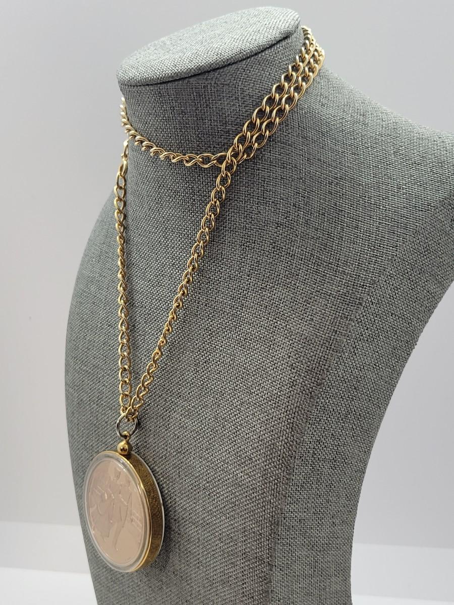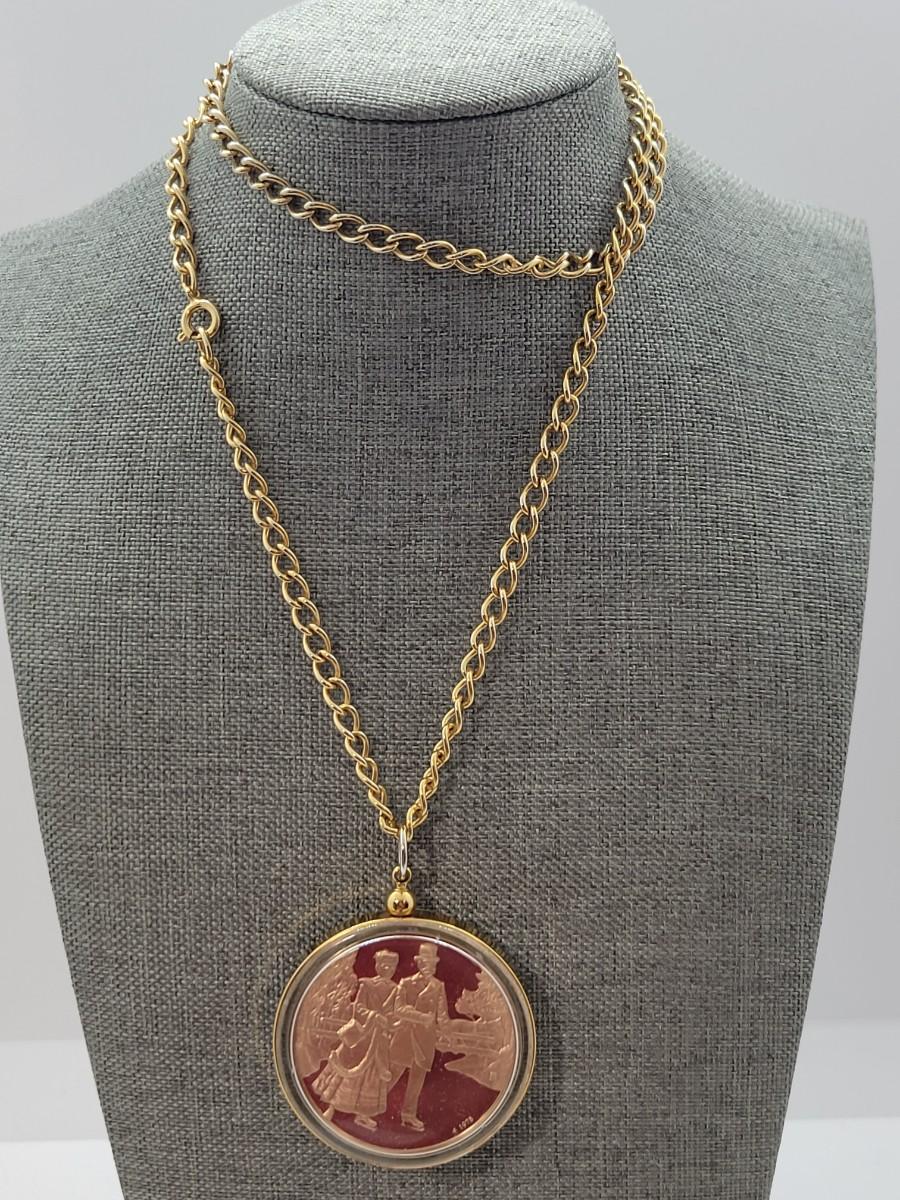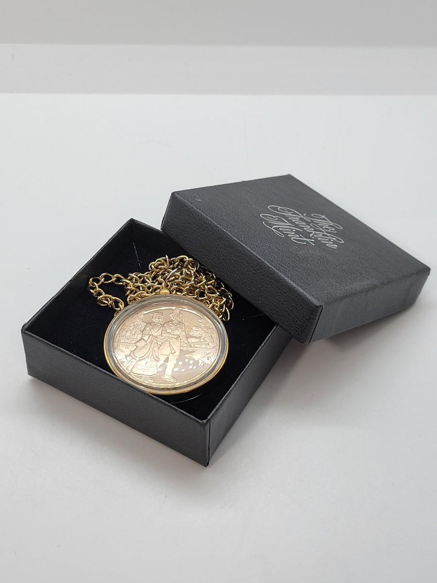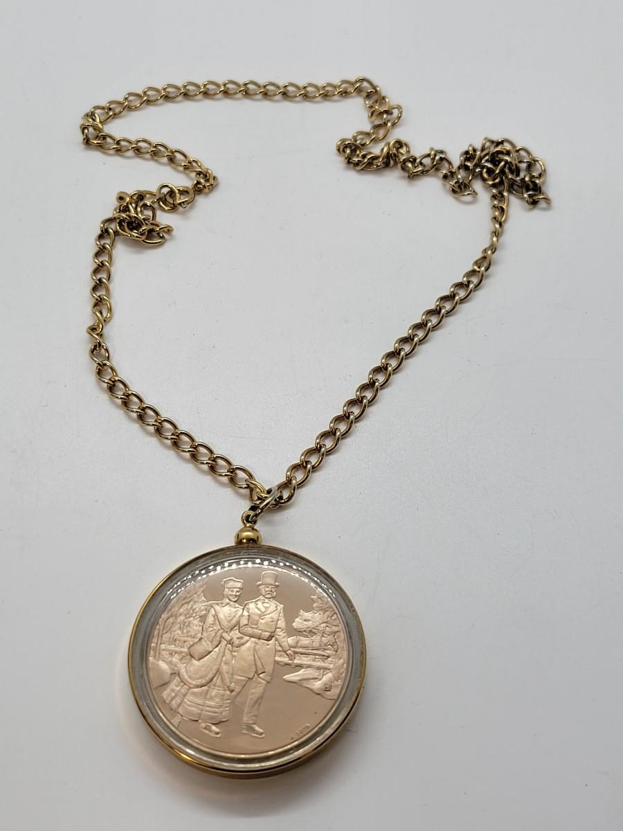 LOT 64: Franklin Mint 1978 Bronze Medallion "Winter Magic" Pendant on 24" Necklace