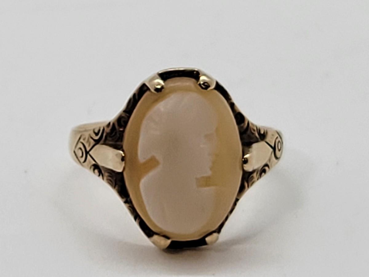 LOT 70: Vintage 10K Gold Cameo Ring - Size 4 - 1.83 gtw