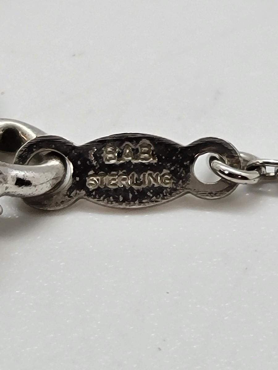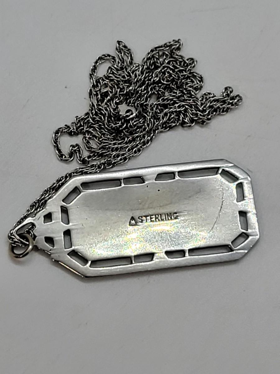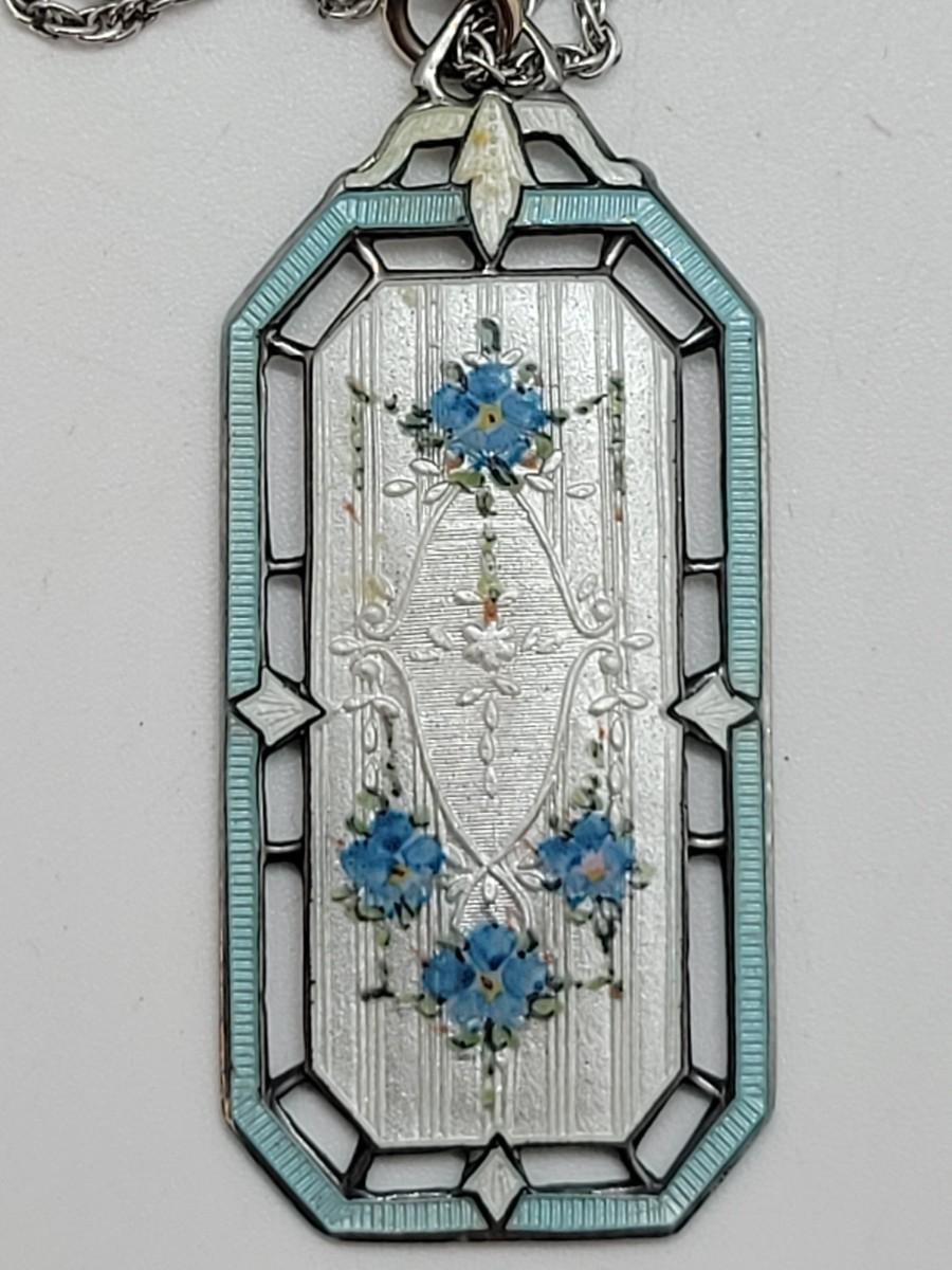 LOT 74: Antique Sterling Silver & Enamel Floral Pendant on B.A.B. Sterling 24" Chain
