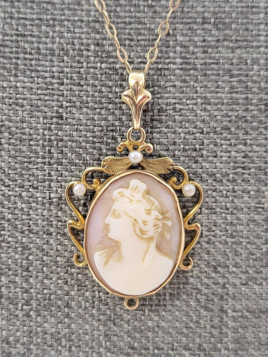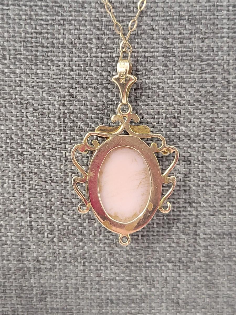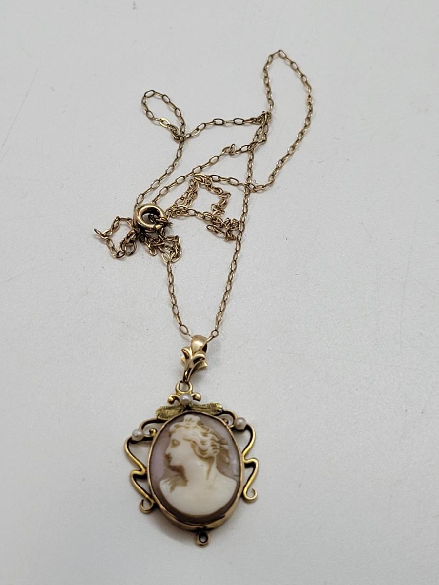 LOT 75: Vintage 10K Gold Cameo Pendant - 2.26 gtw - on 15" Goldtone Chain