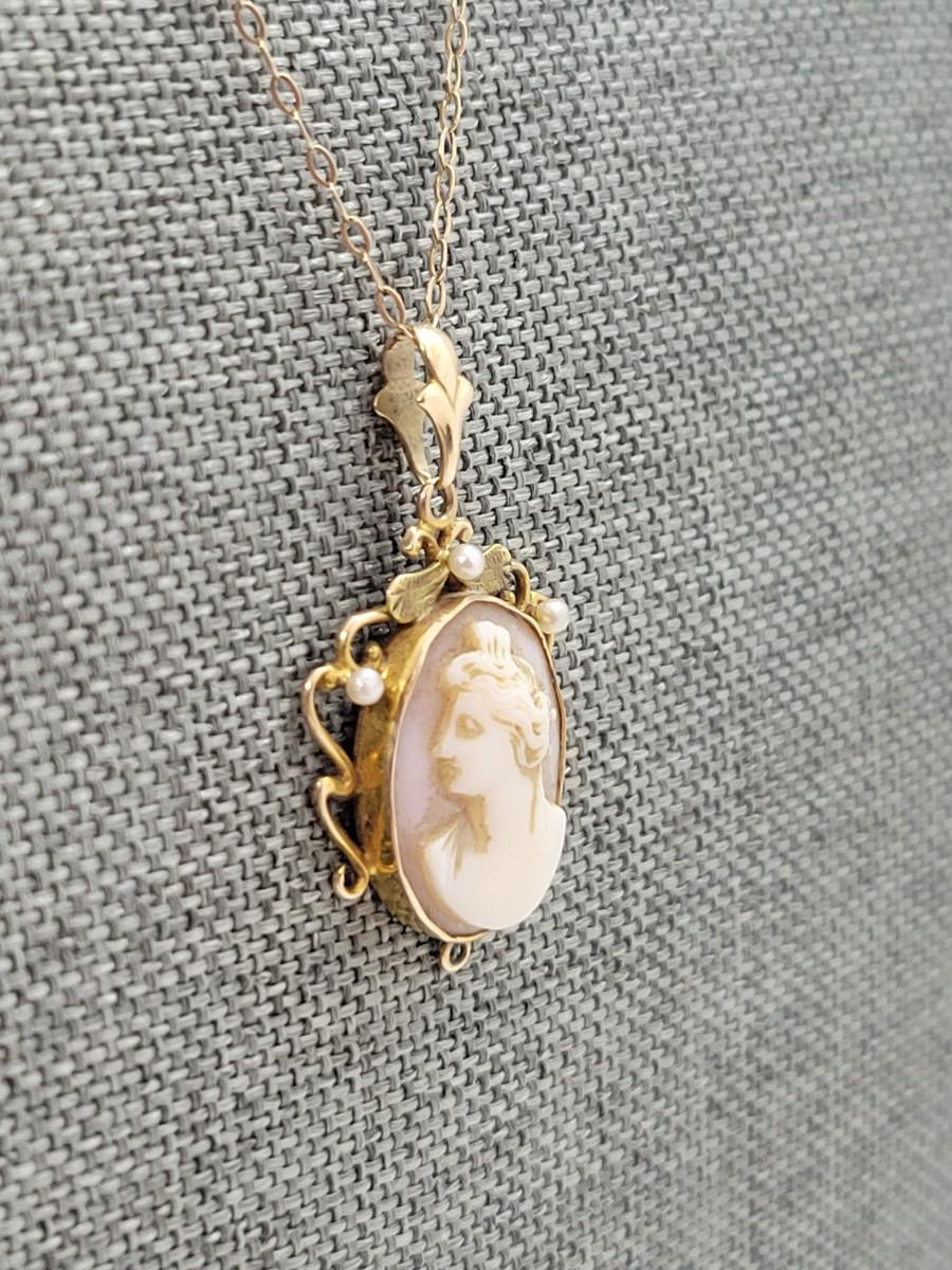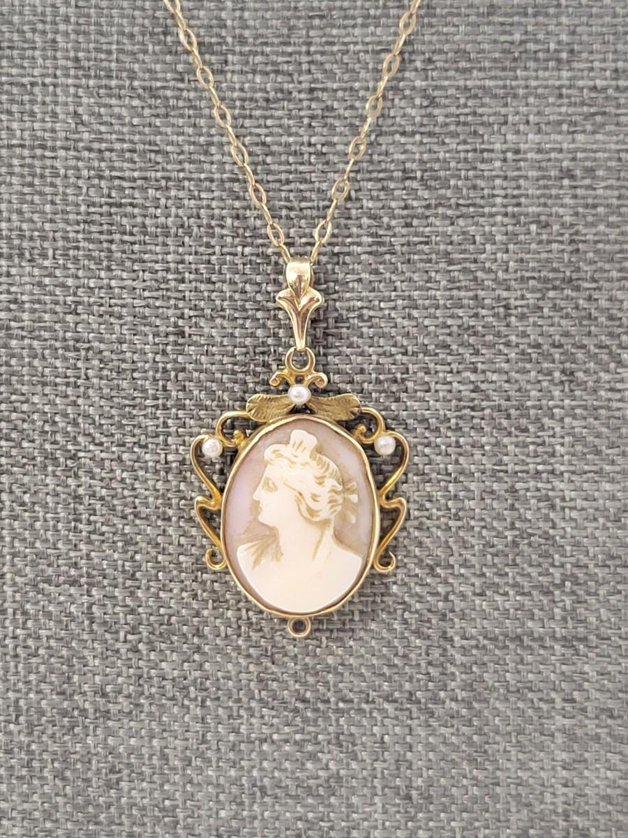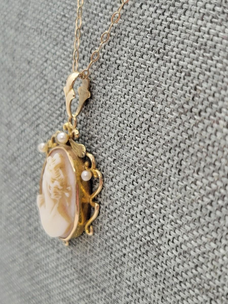 LOT 75: Vintage 10K Gold Cameo Pendant - 2.26 gtw - on 15" Goldtone Chain