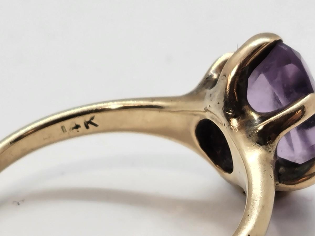LOT 76: Amethyst &  14K Gold Ring - Size 6.5 - 2.97 gtw