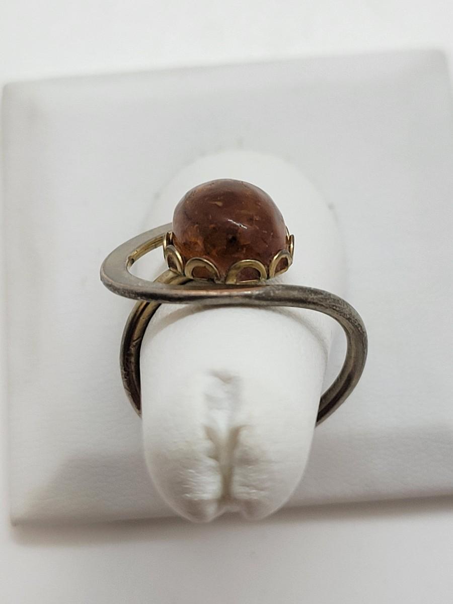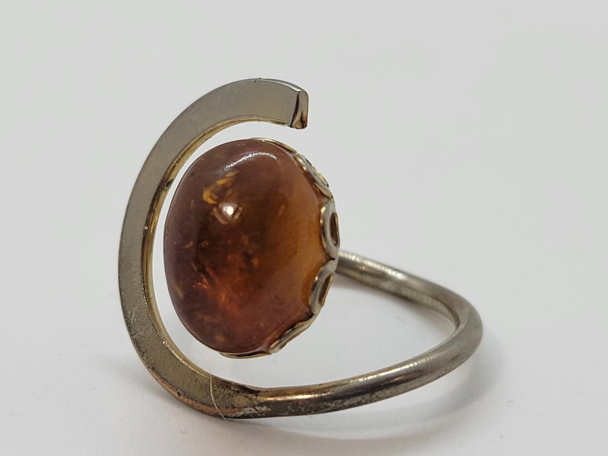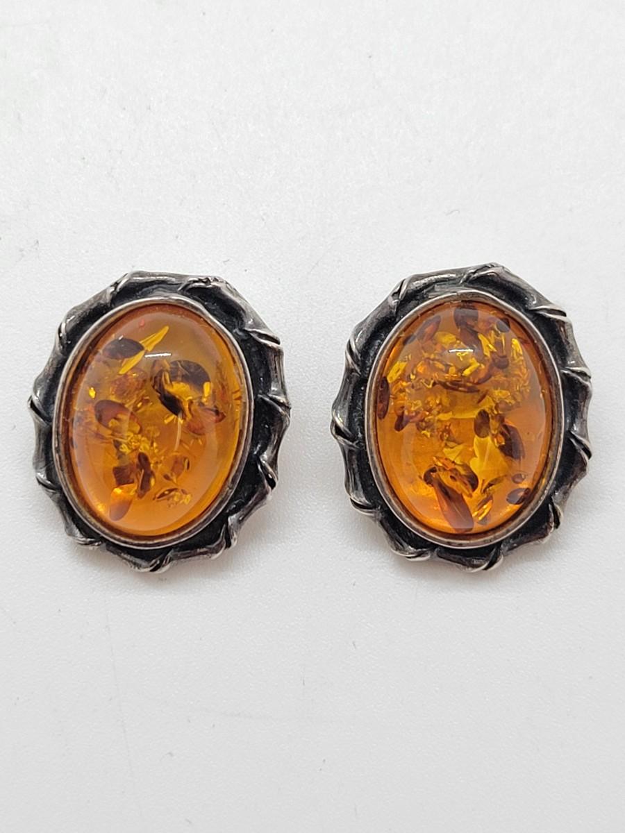 LOT 79: 925 Sterling Silver Amber Clip-Onn Earrings &  Silvertone Amber Ring - Size 5.5