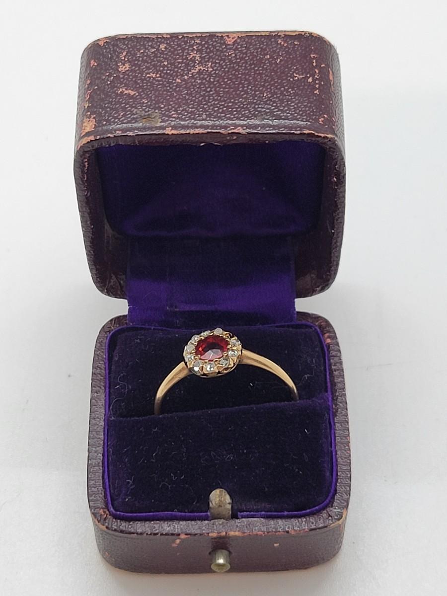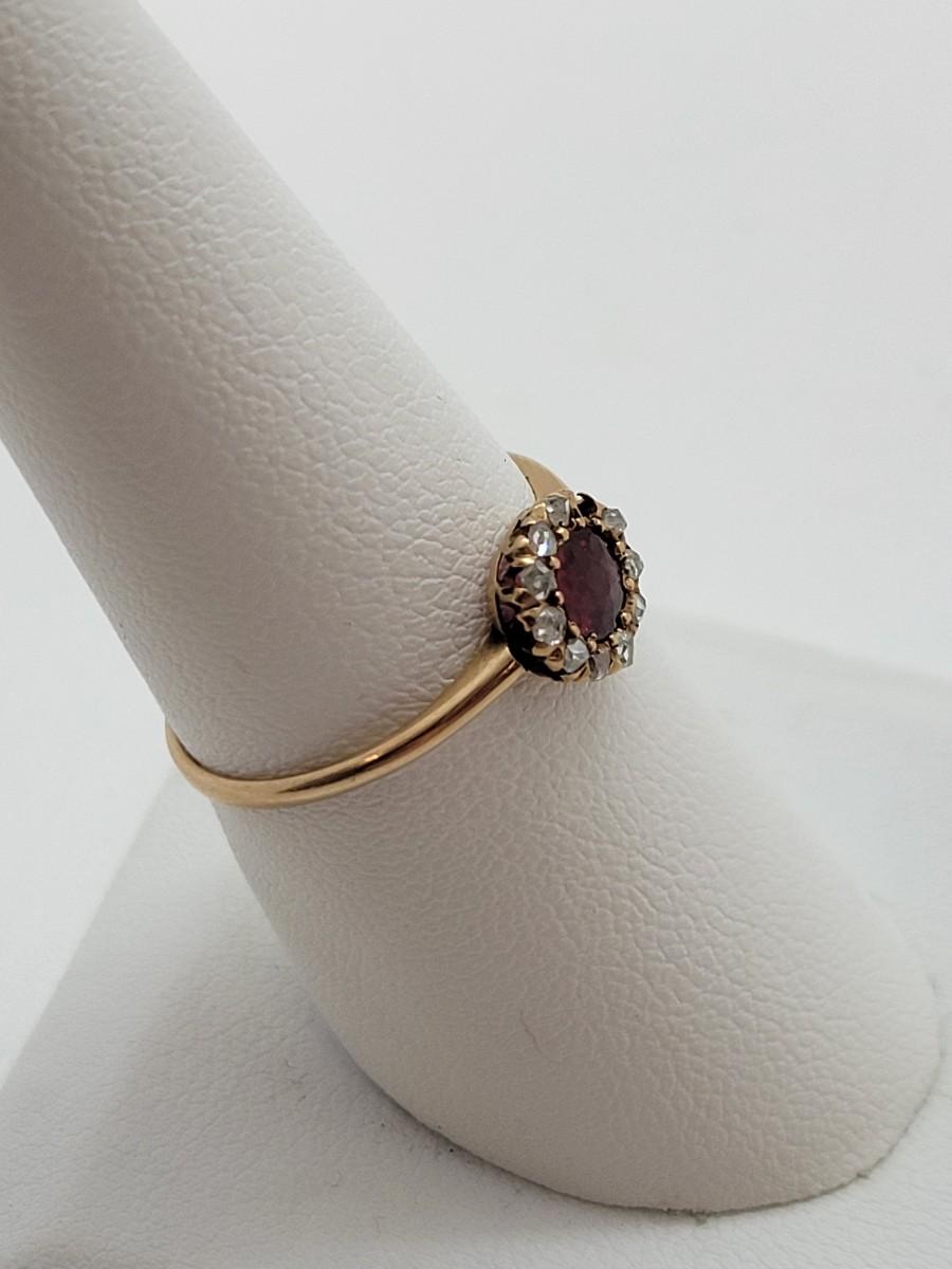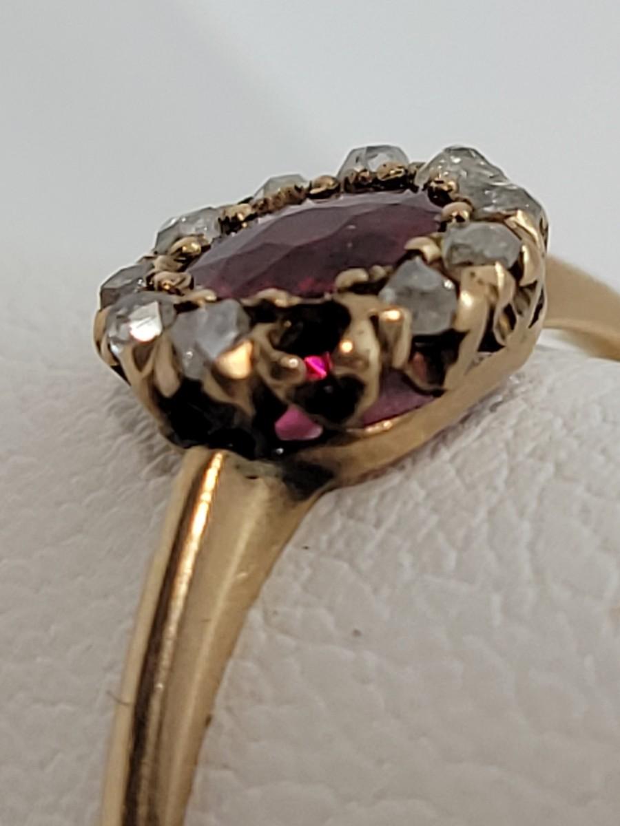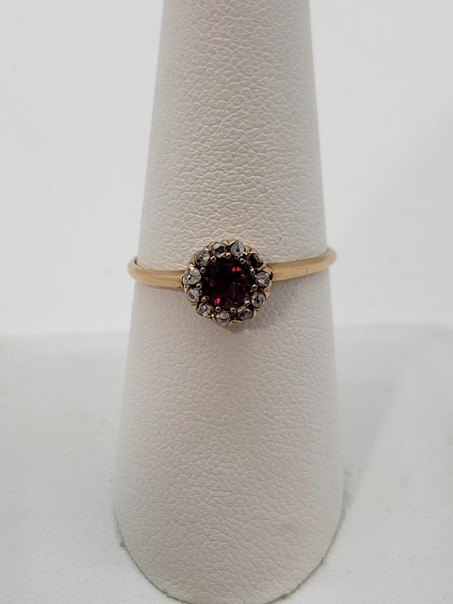 LOT 80: 14K Gold Ruby Ring with Diamond Halo - Size 8 - 1.27gtw