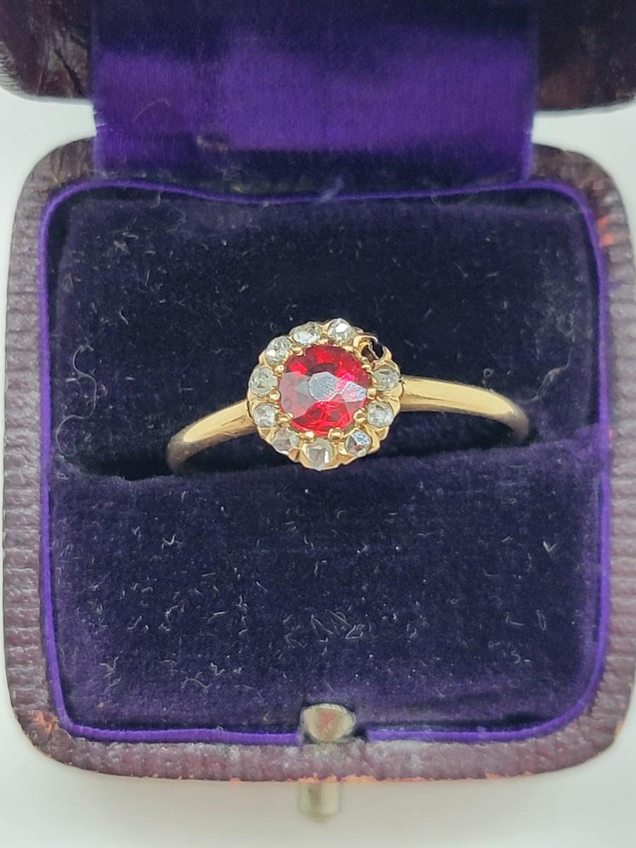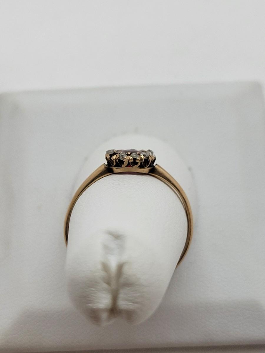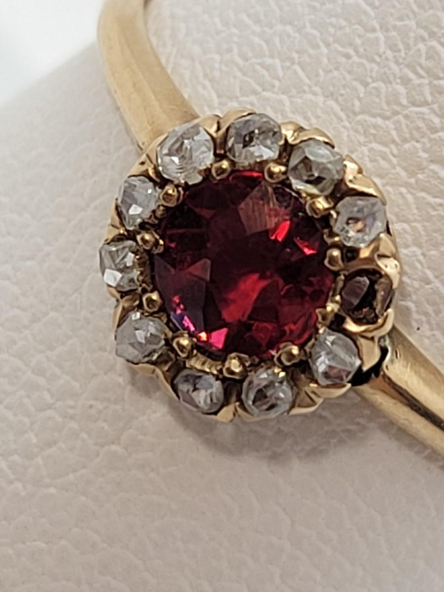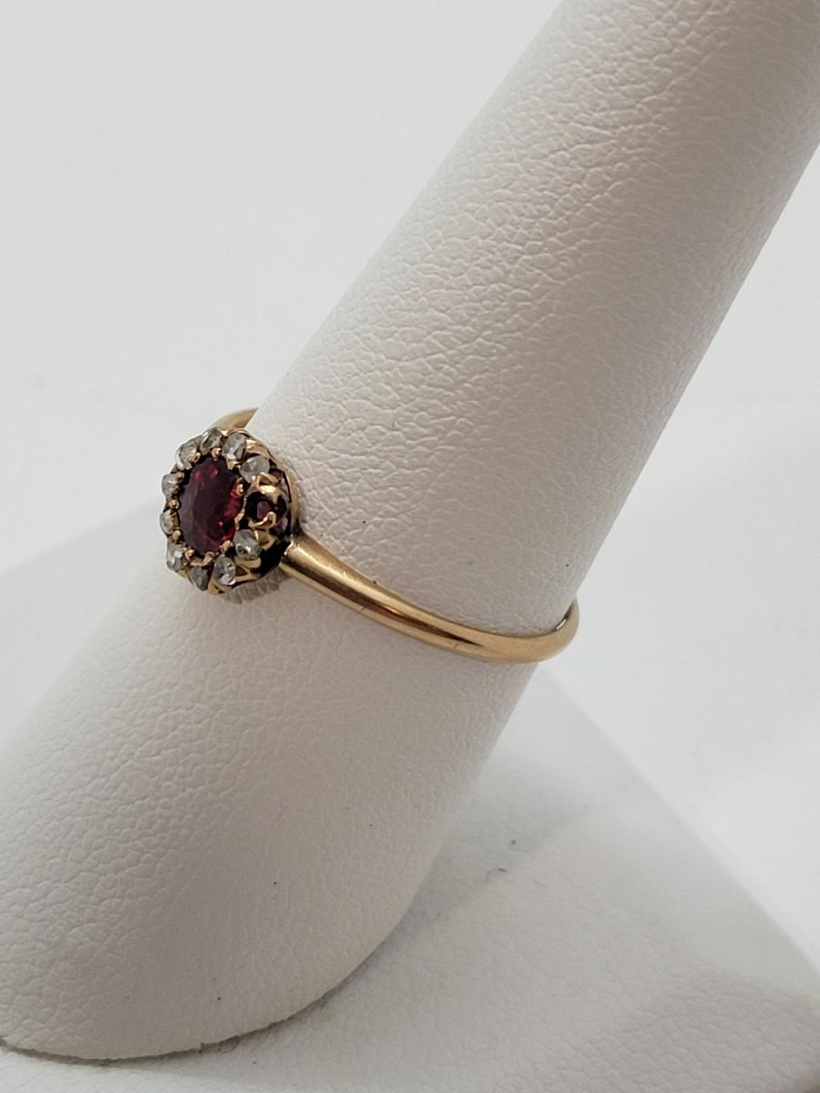 LOT 80: 14K Gold Ruby Ring with Diamond Halo - Size 8 - 1.27gtw