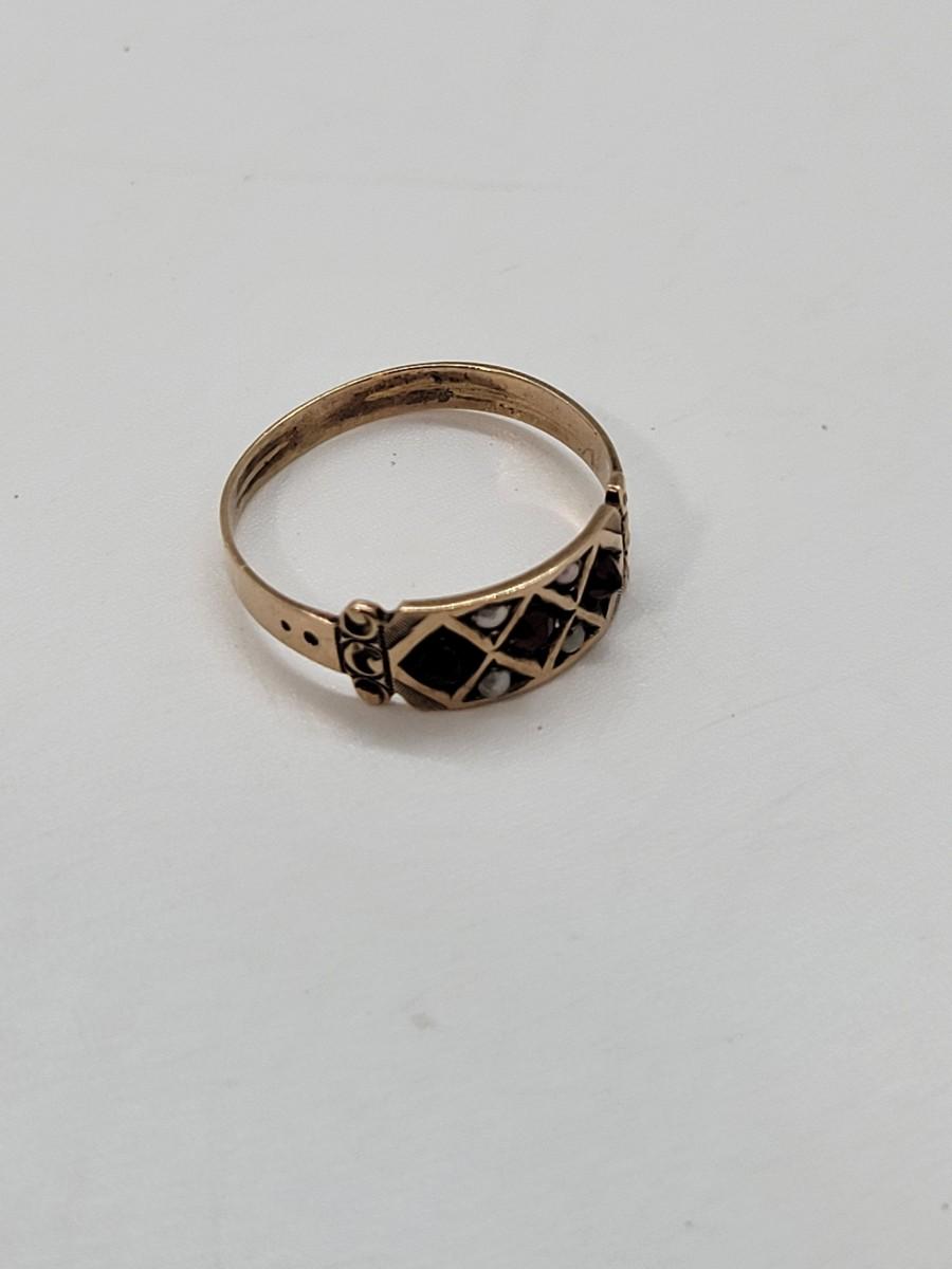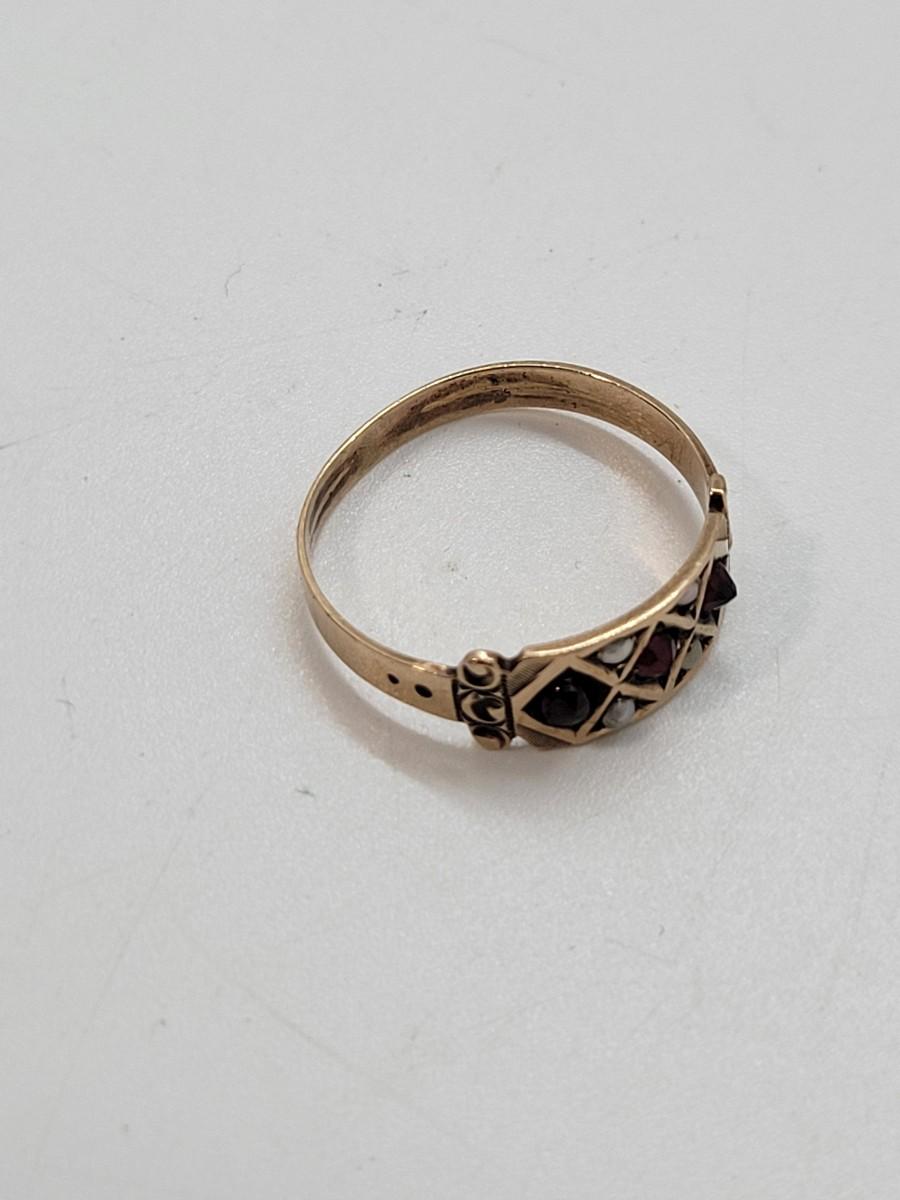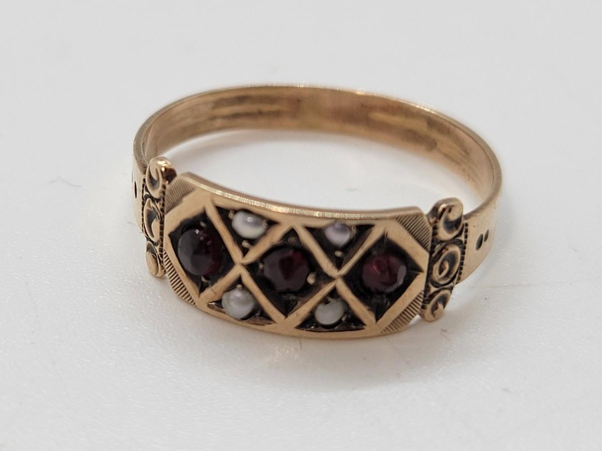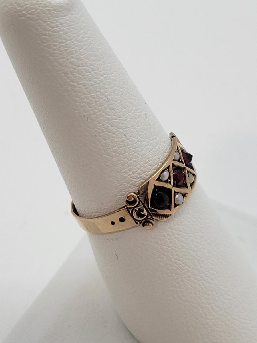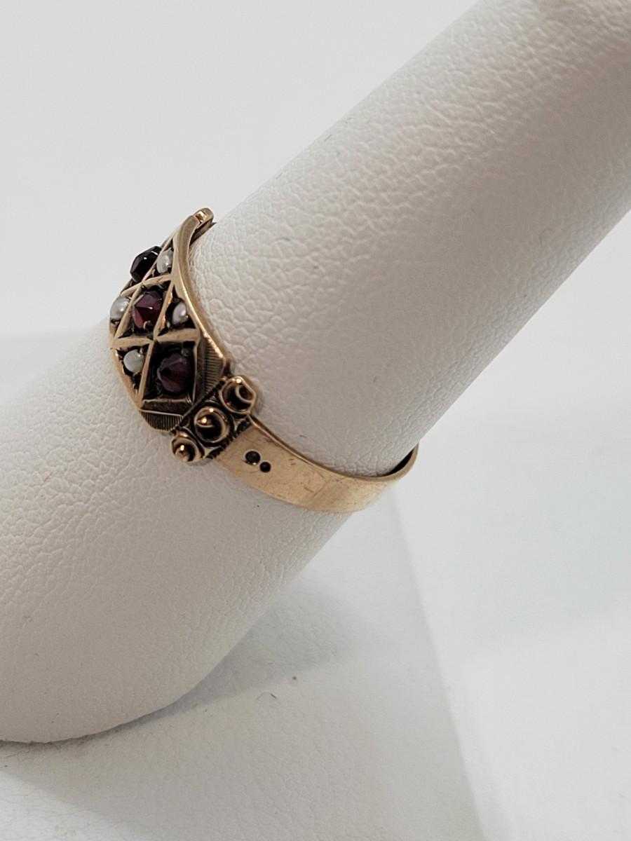 LOT 83: Seed Pearl and Gemstone 10K Gold Ring - Size 7 - 1.53 gtw