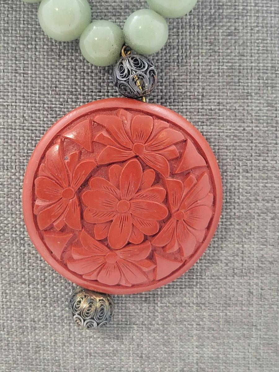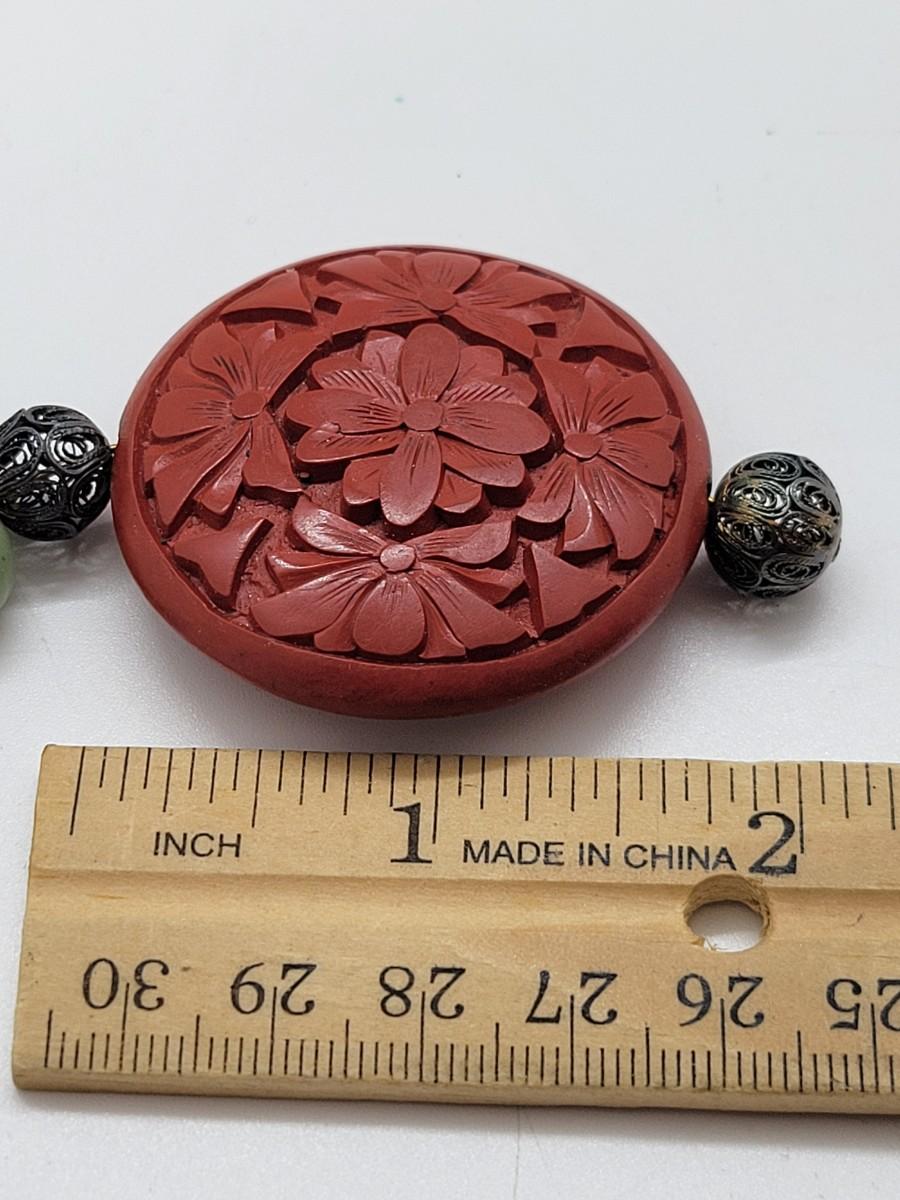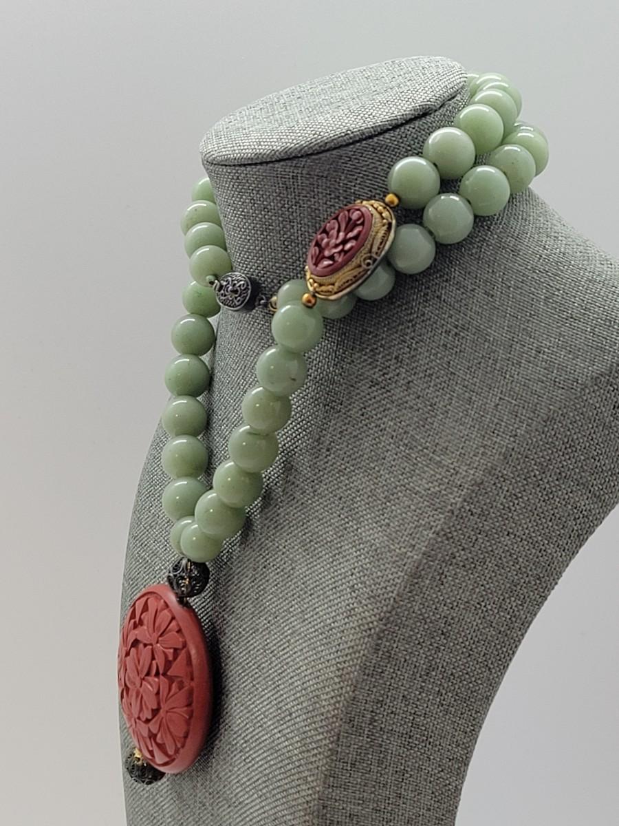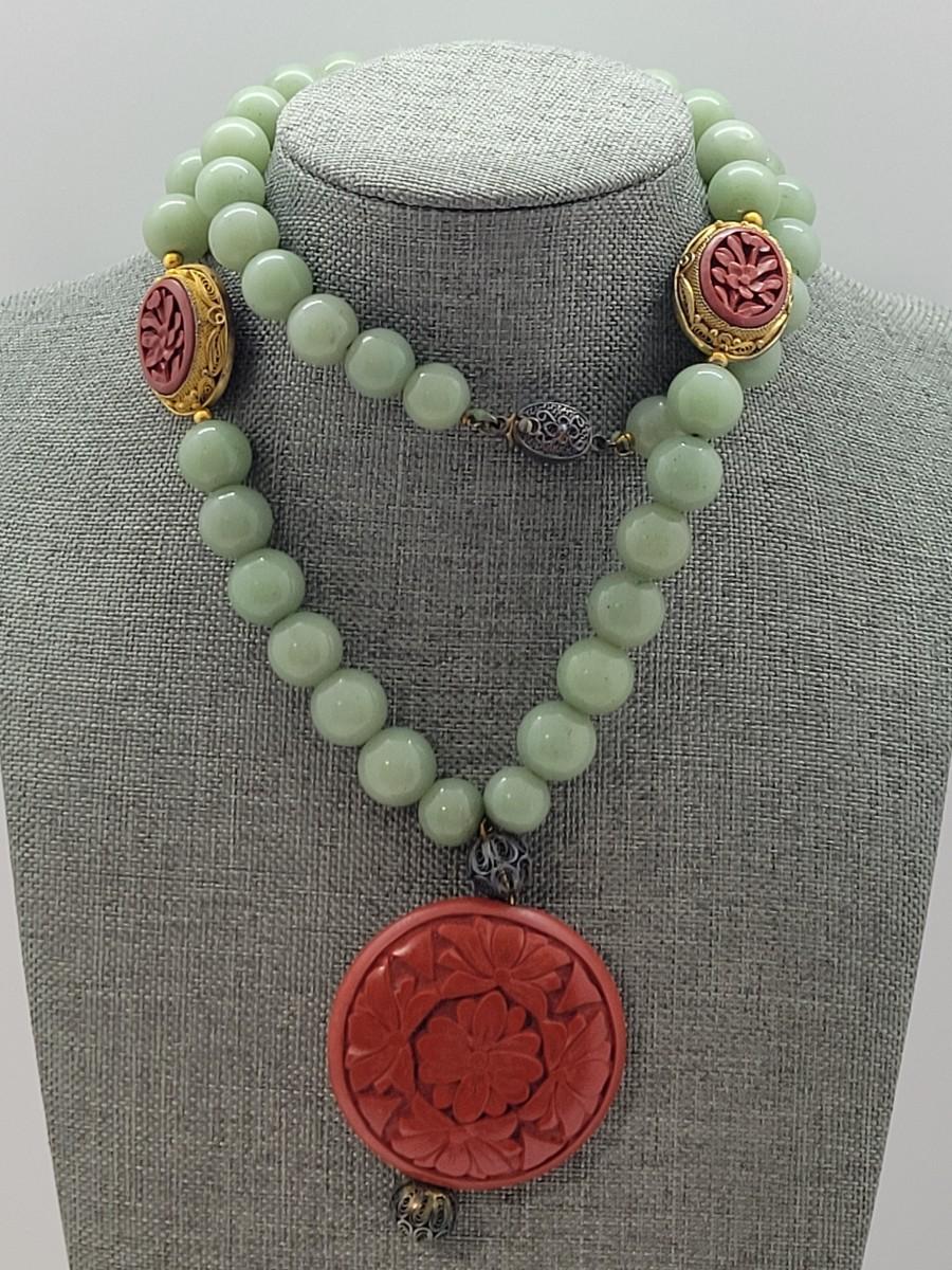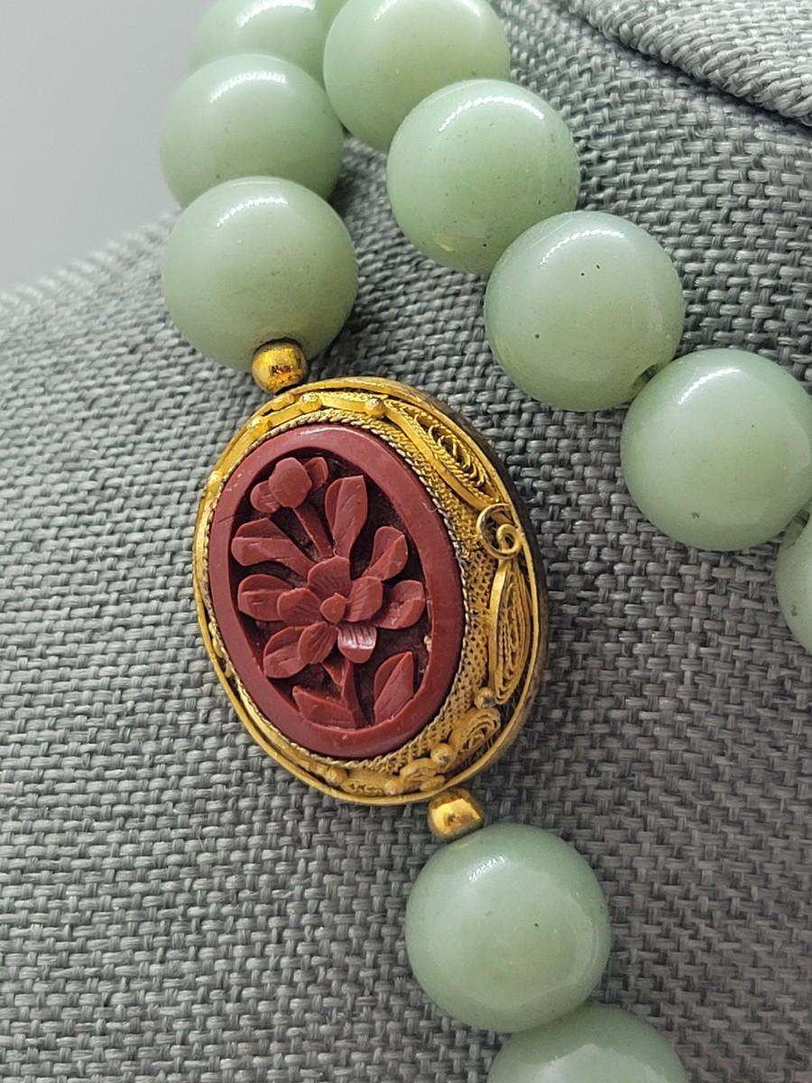 LOT 89: Franklin Mint - "The Necklace of the Precious Peony" Cinnabar & Serpentine Jade with 24K Gold Electroplate Accents