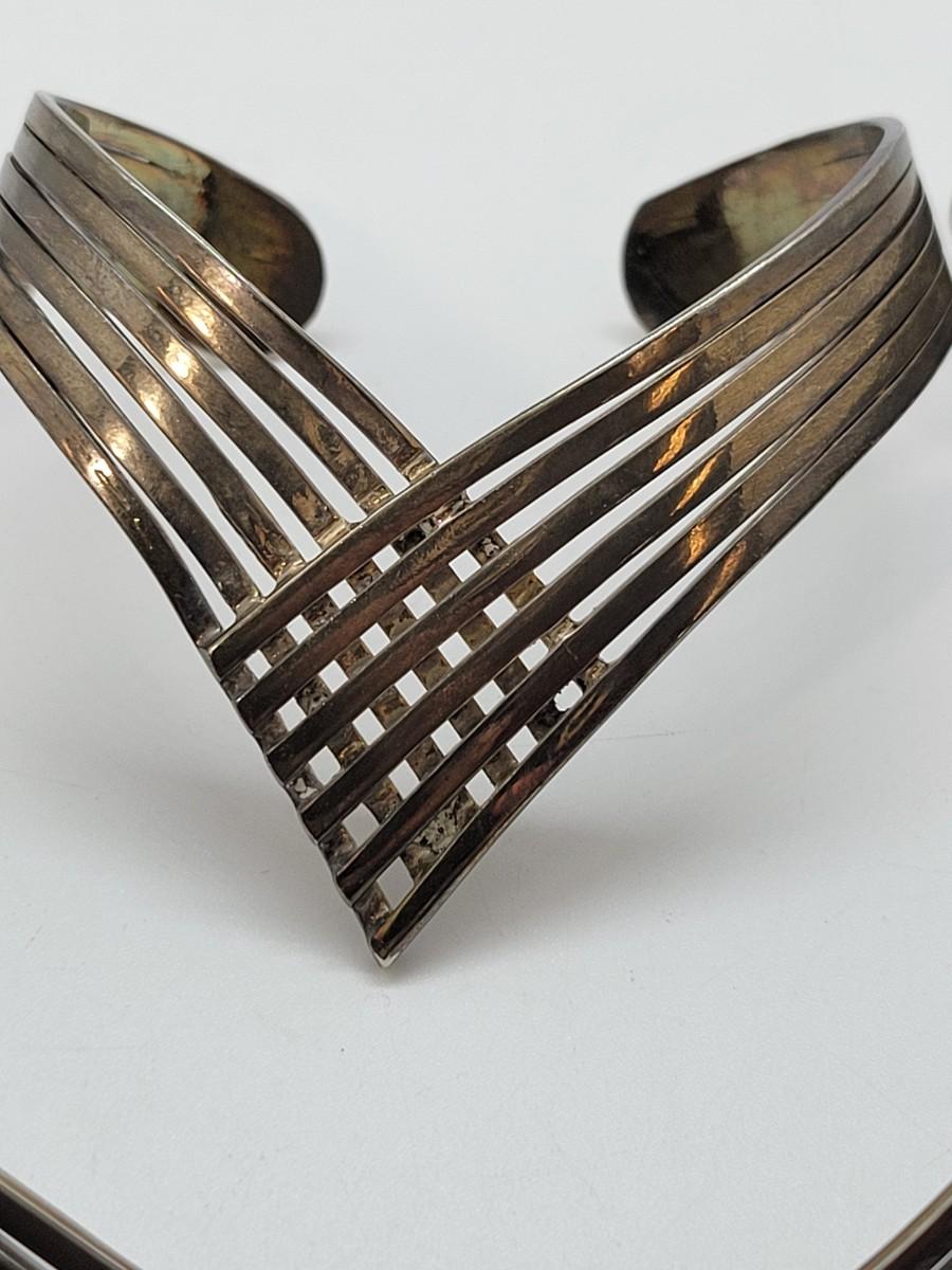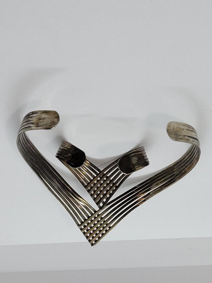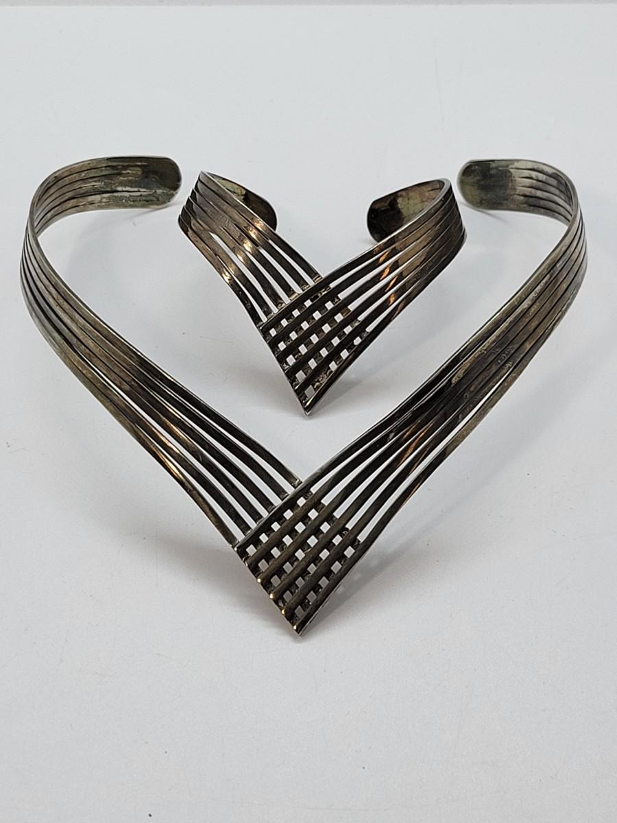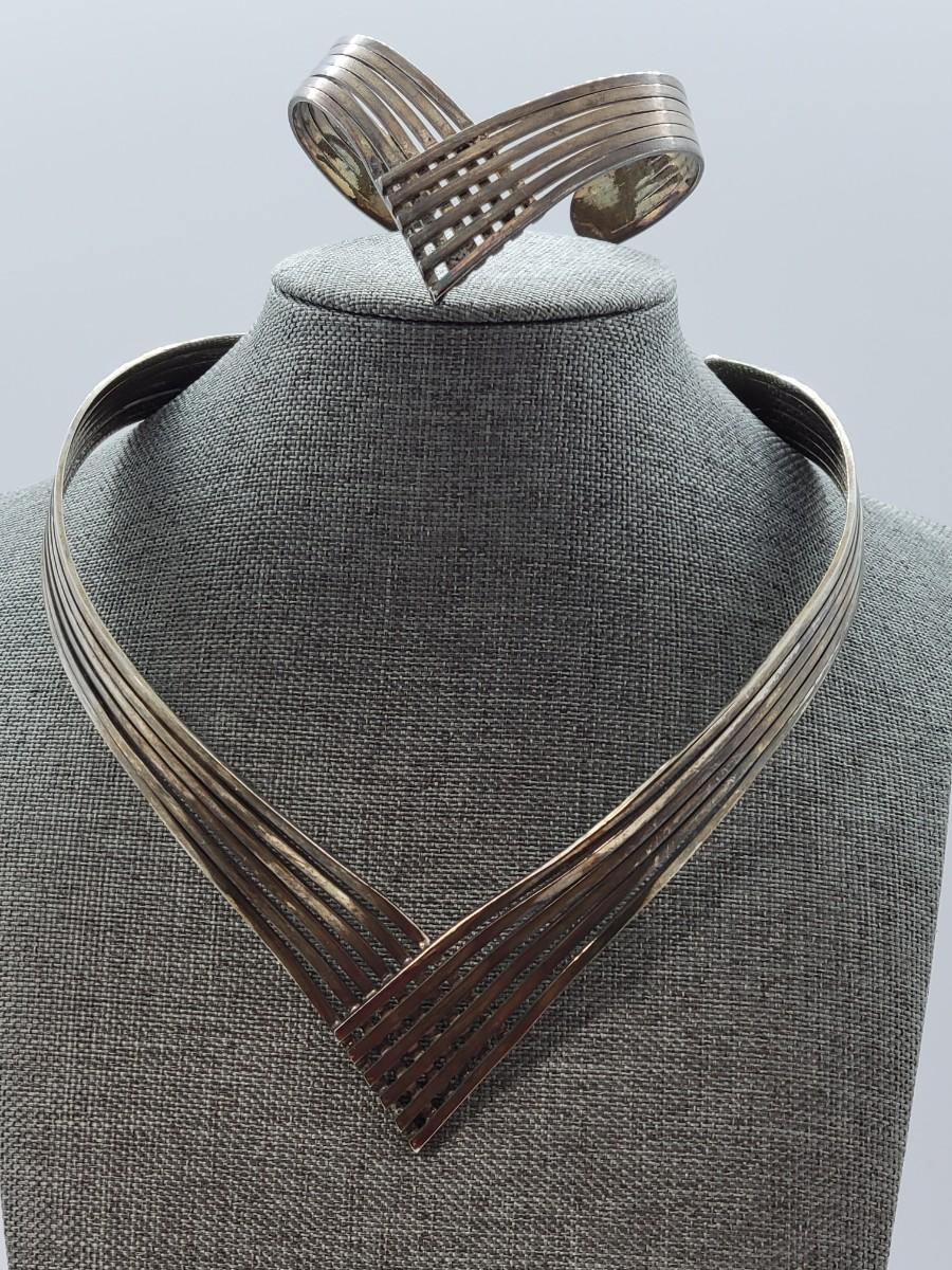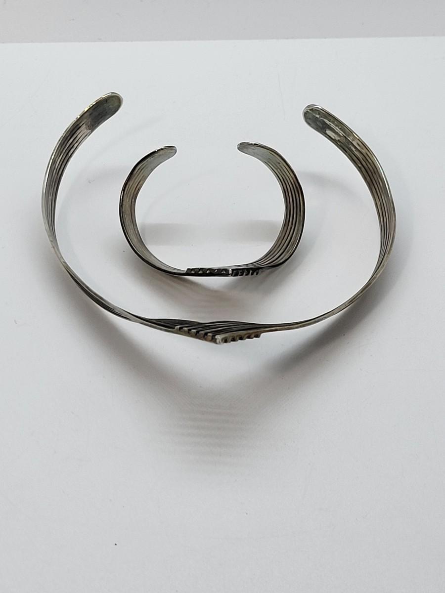 LOT 90: Matching Silvertone Choker Necklace & Cuff Bracelet Set