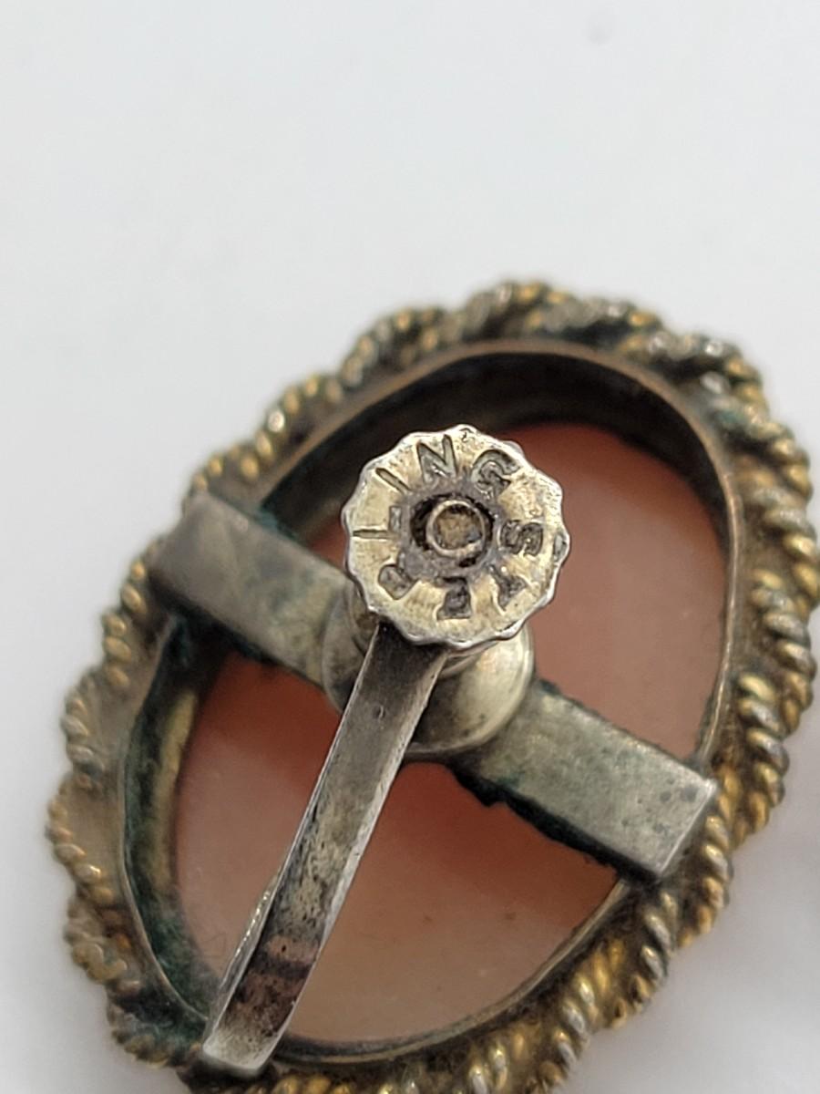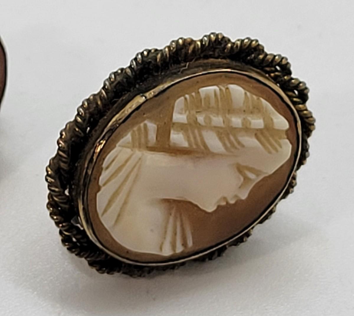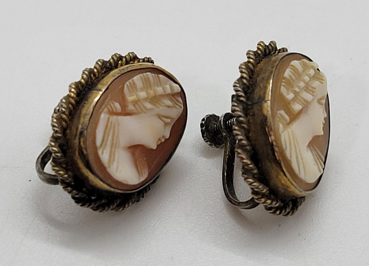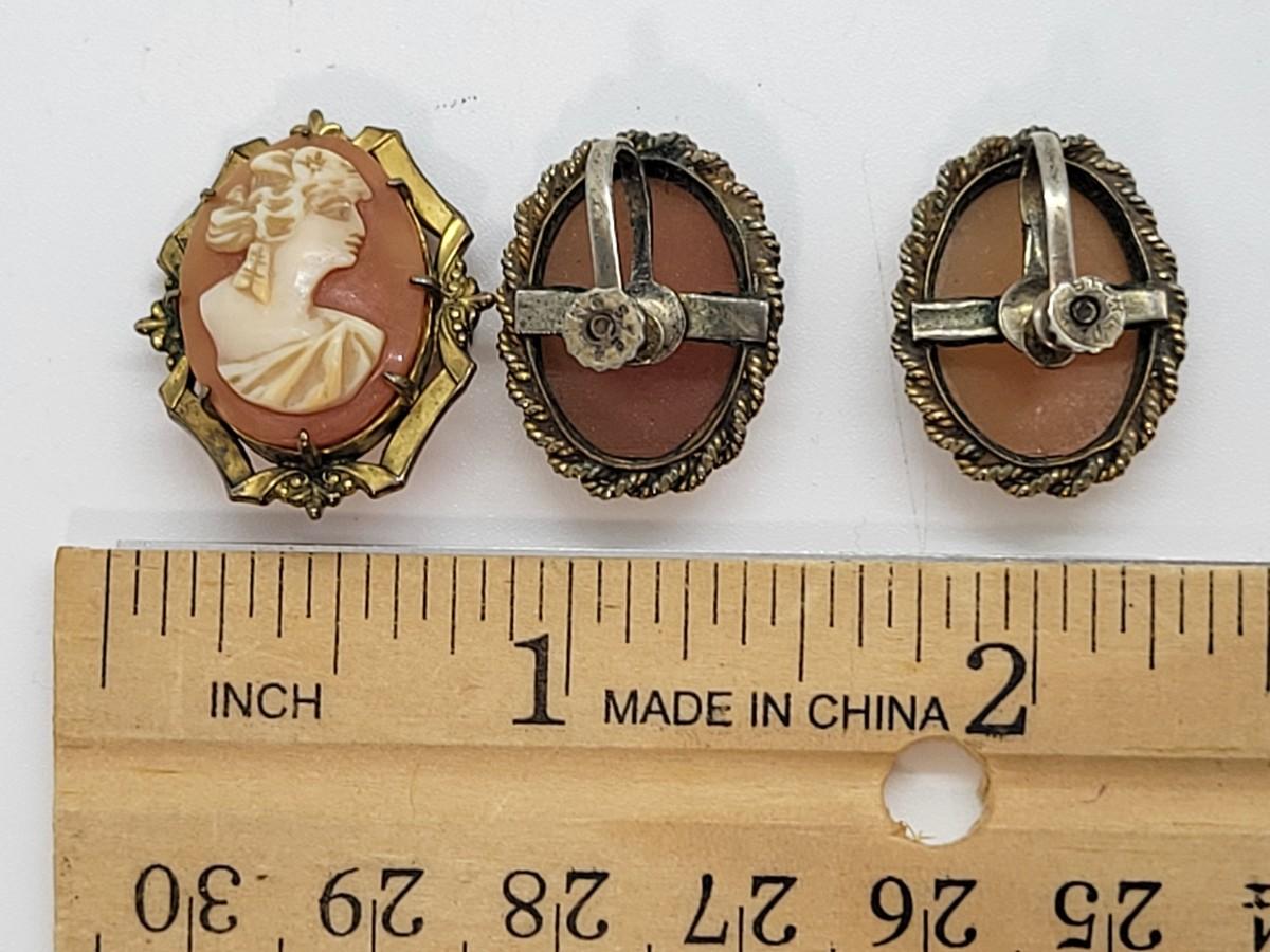 LOT 96: Vintage Cameo Pin & Sterling Screwback Cameo Earrings