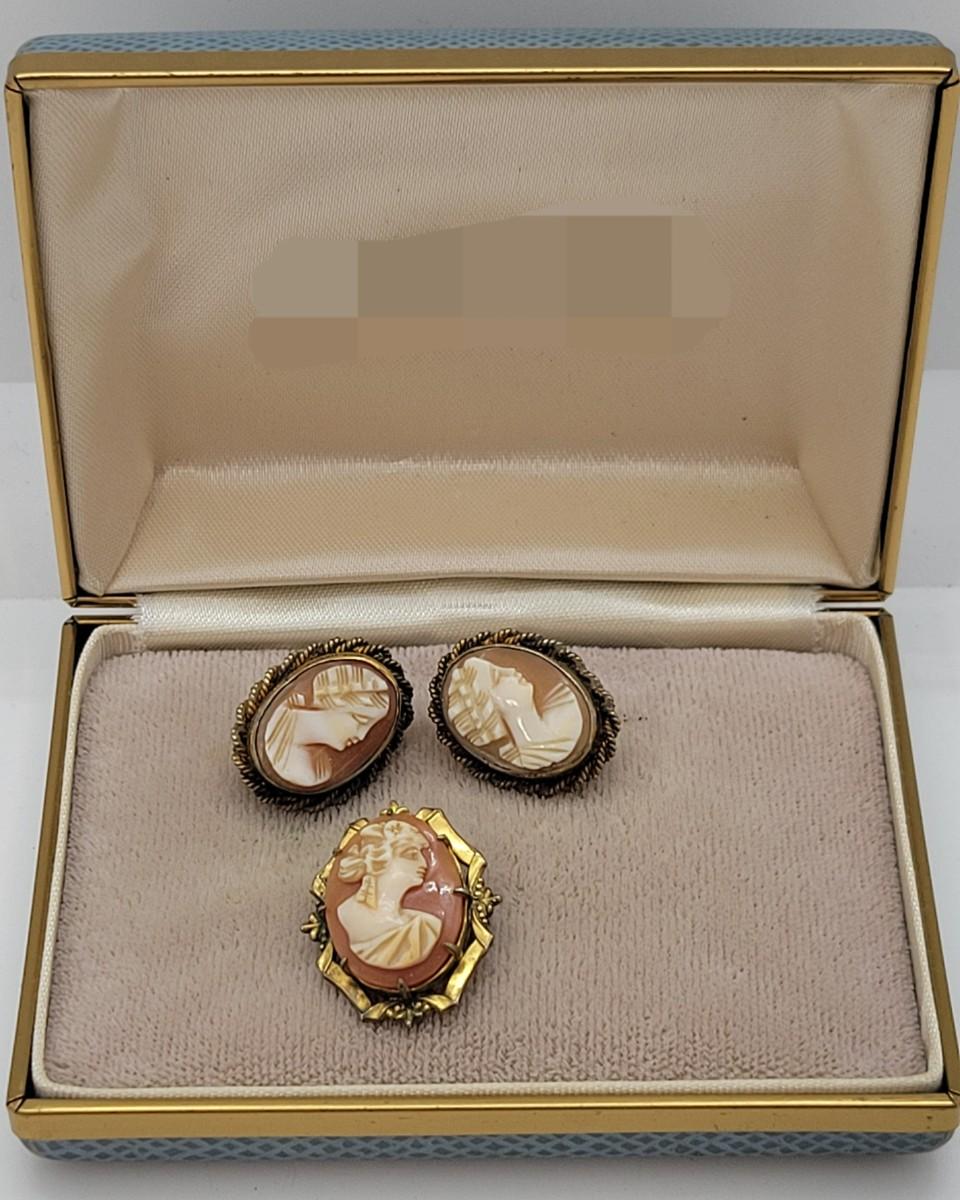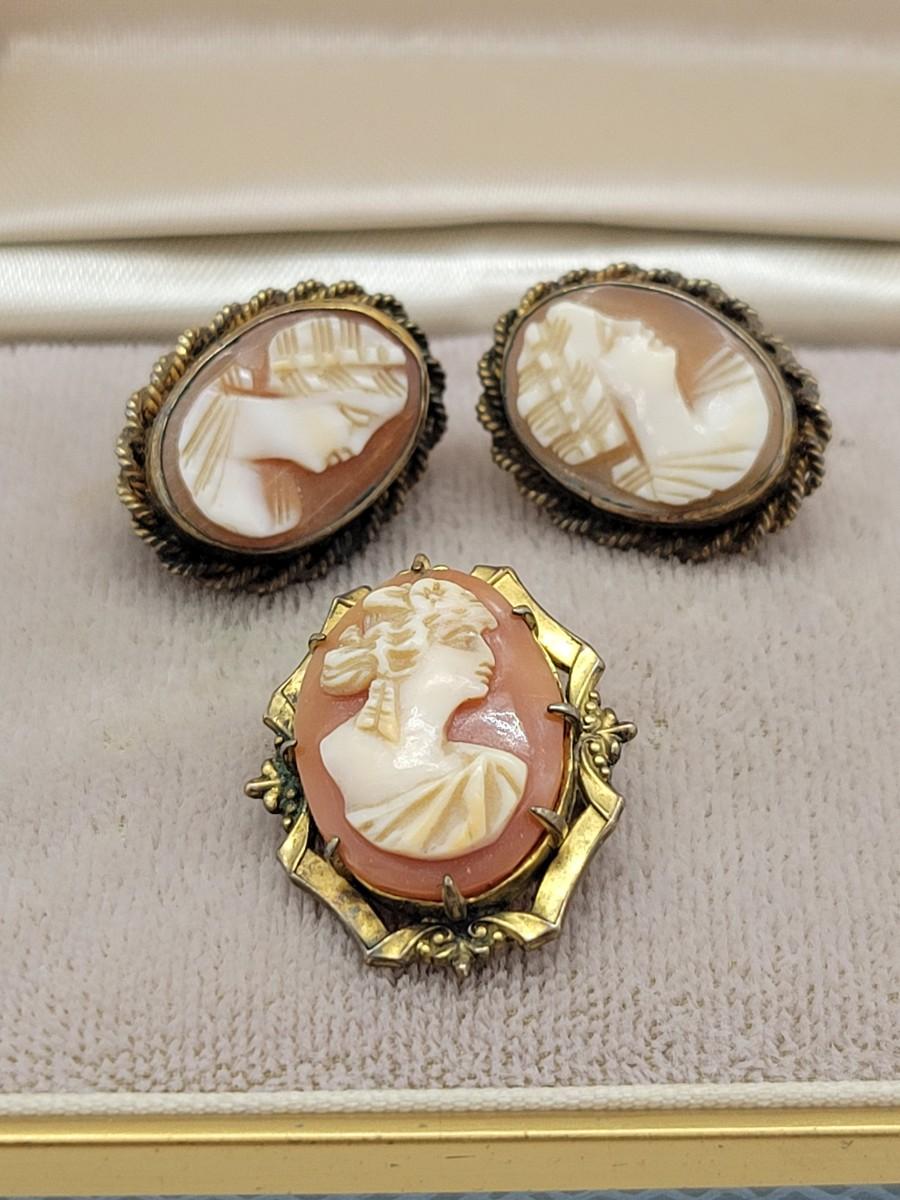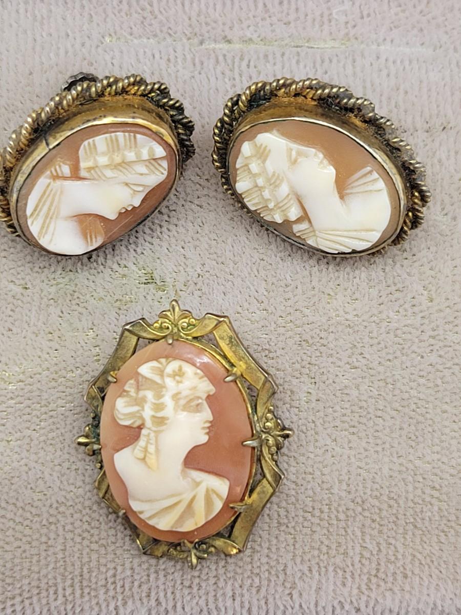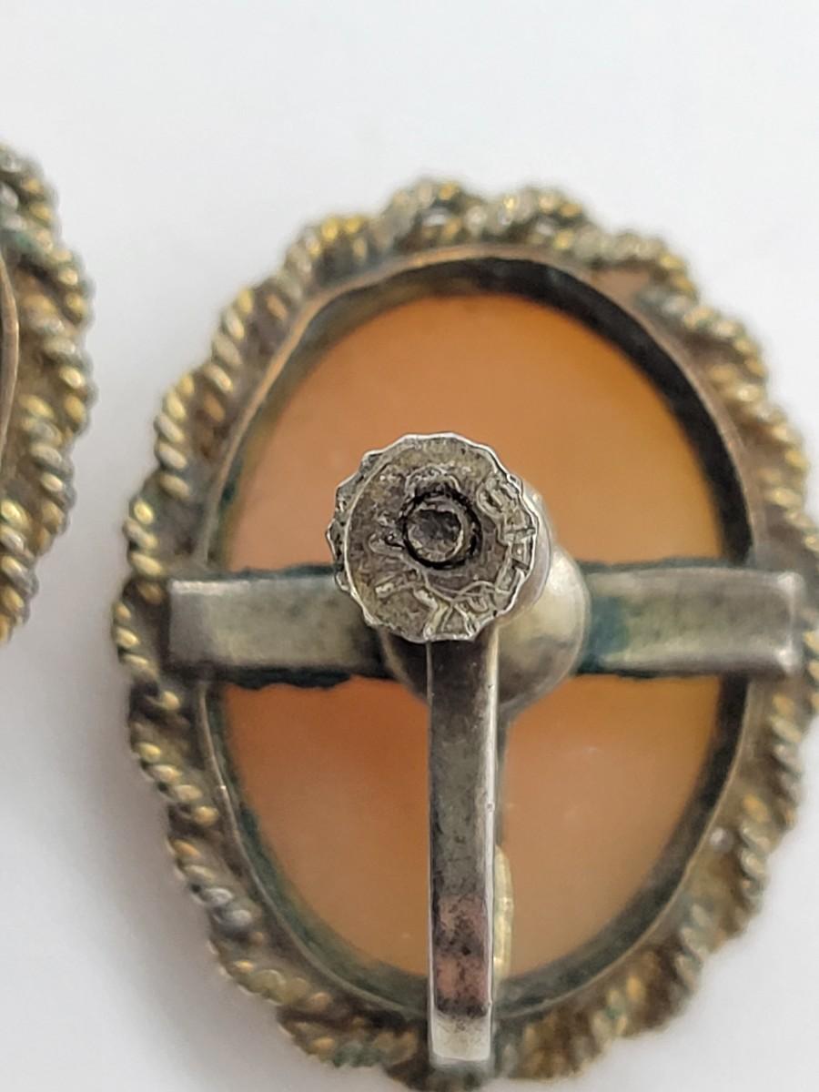 LOT 96: Vintage Cameo Pin & Sterling Screwback Cameo Earrings