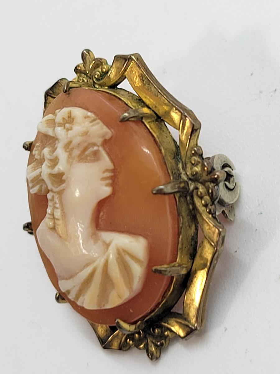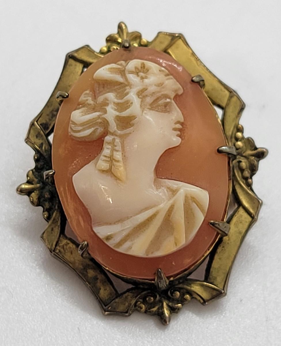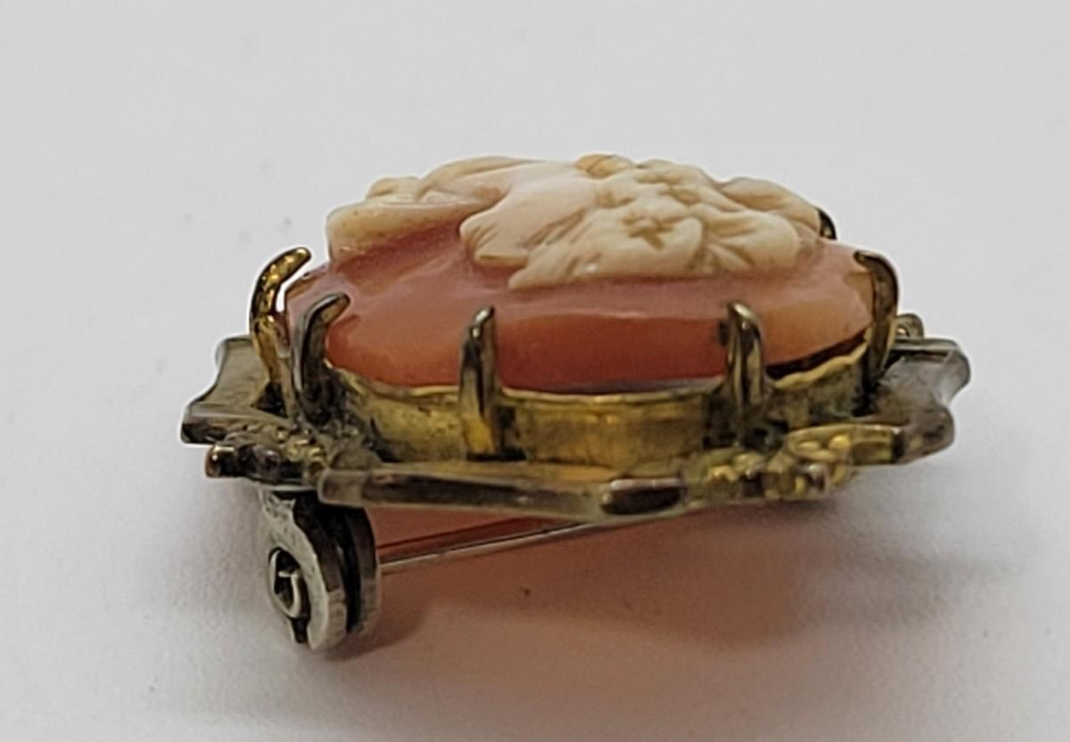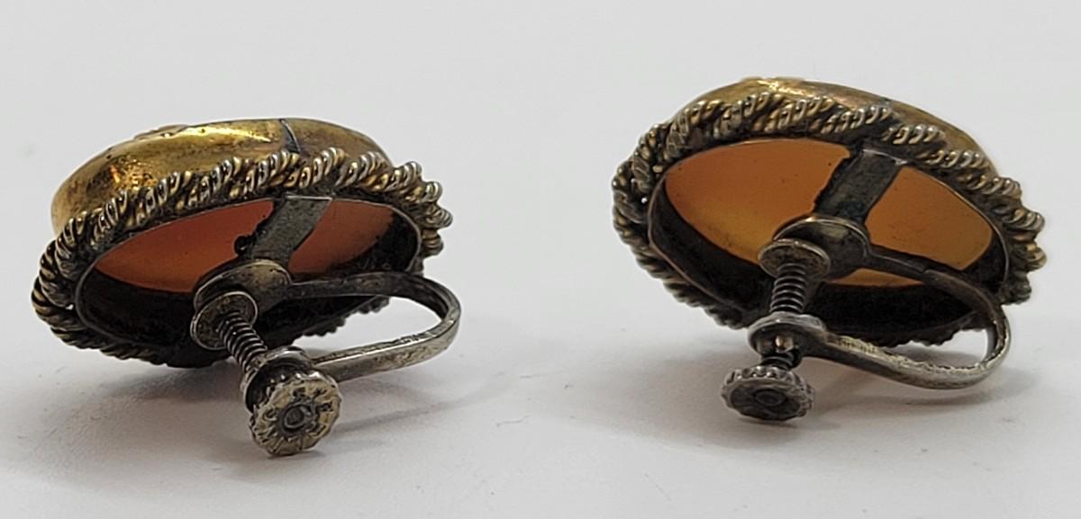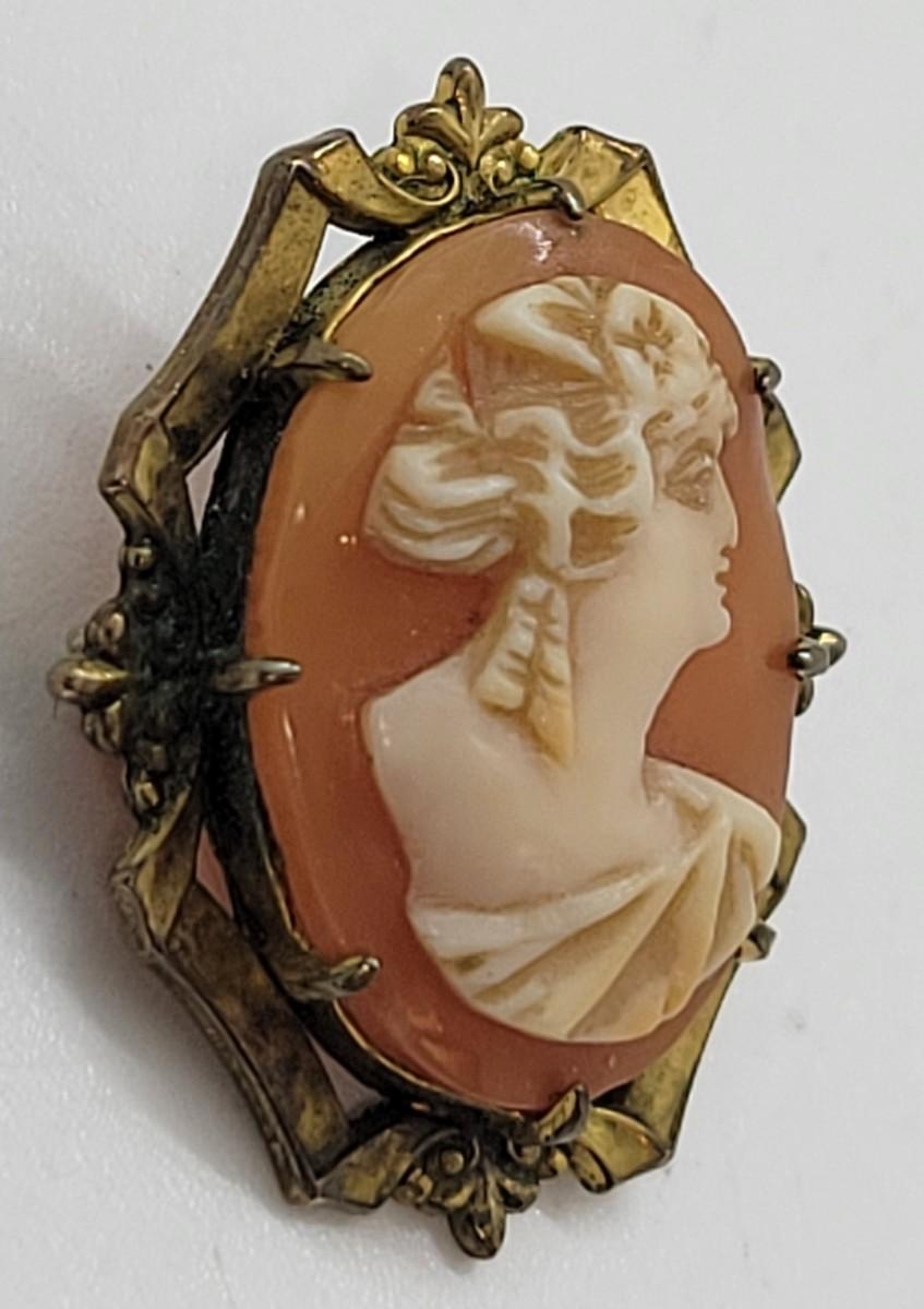 LOT 96: Vintage Cameo Pin & Sterling Screwback Cameo Earrings