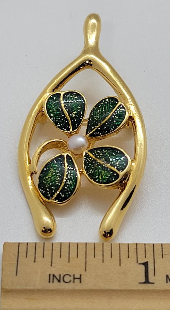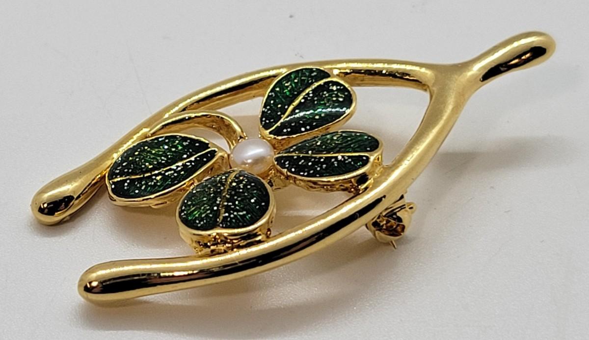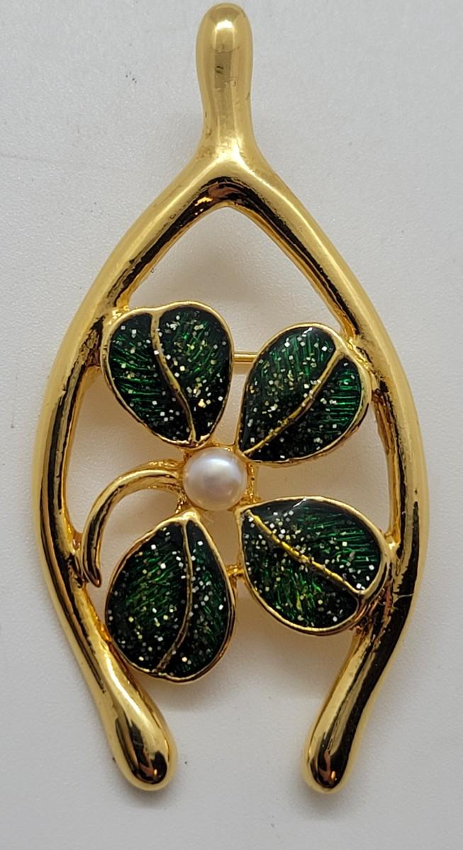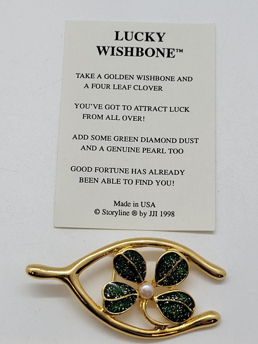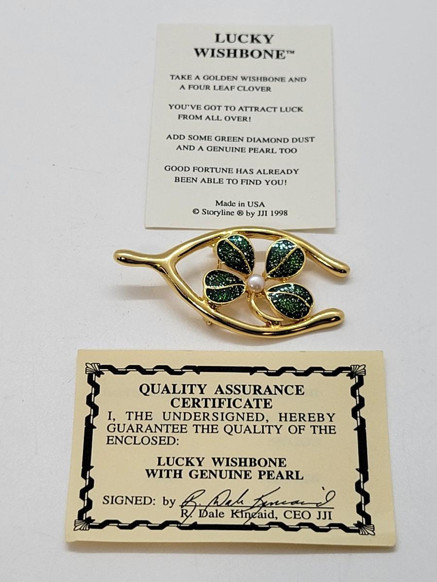LOT 97: JJI Lucky Wishbone Brooch with Genuine Pearl & Diamond Dust