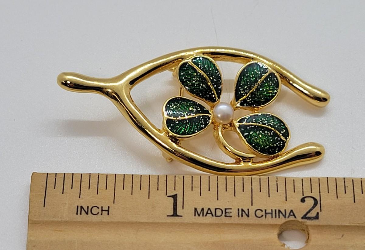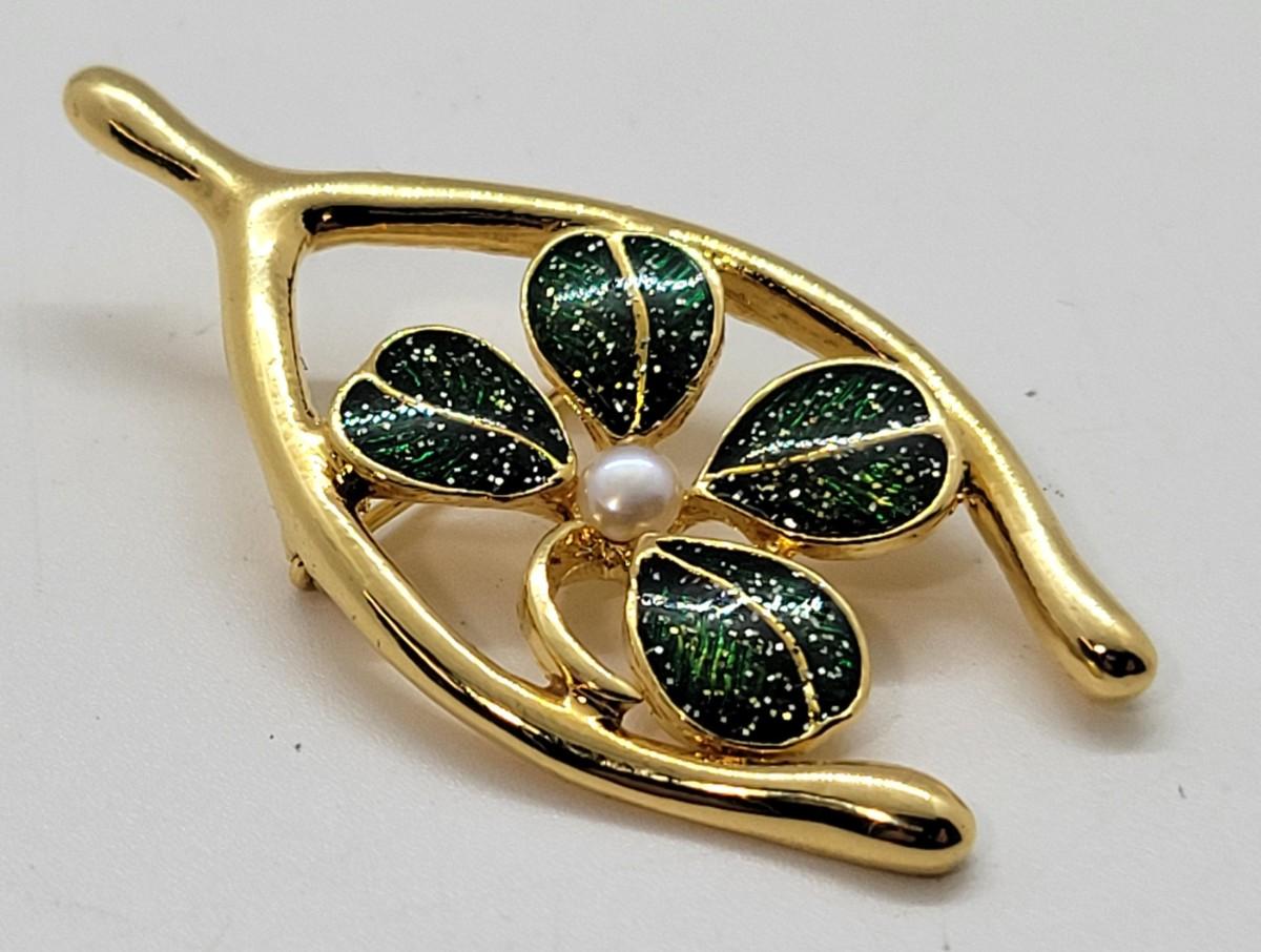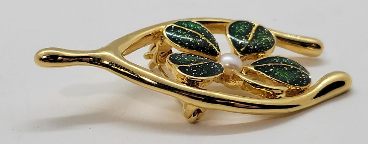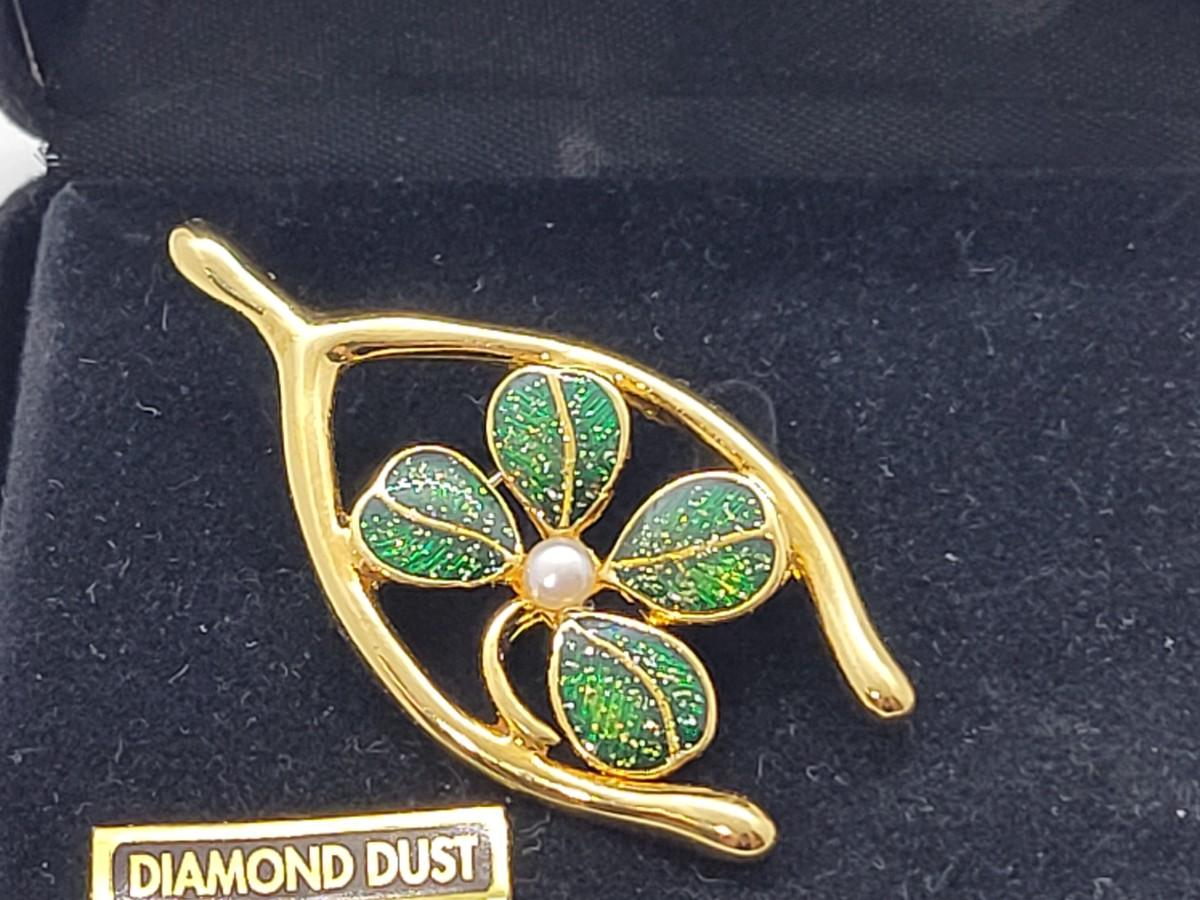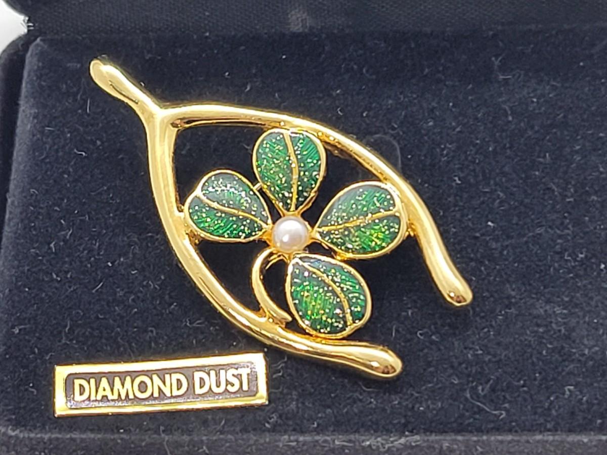 LOT 97: JJI Lucky Wishbone Brooch with Genuine Pearl & Diamond Dust