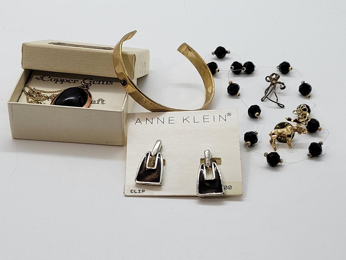 LOT 98: Mixed Jewelry Lot: Anne Klein Clip-On Earrings, Coppercraft Pendant & More