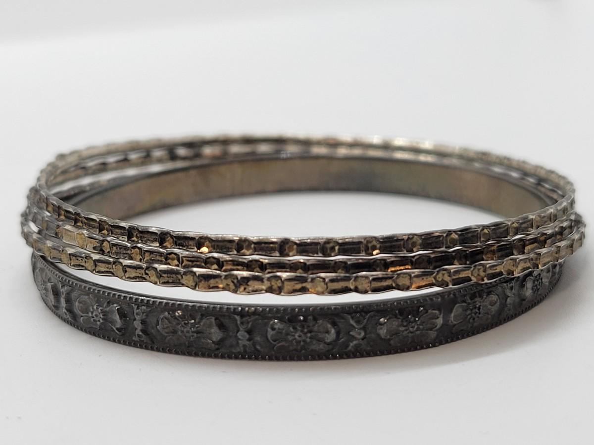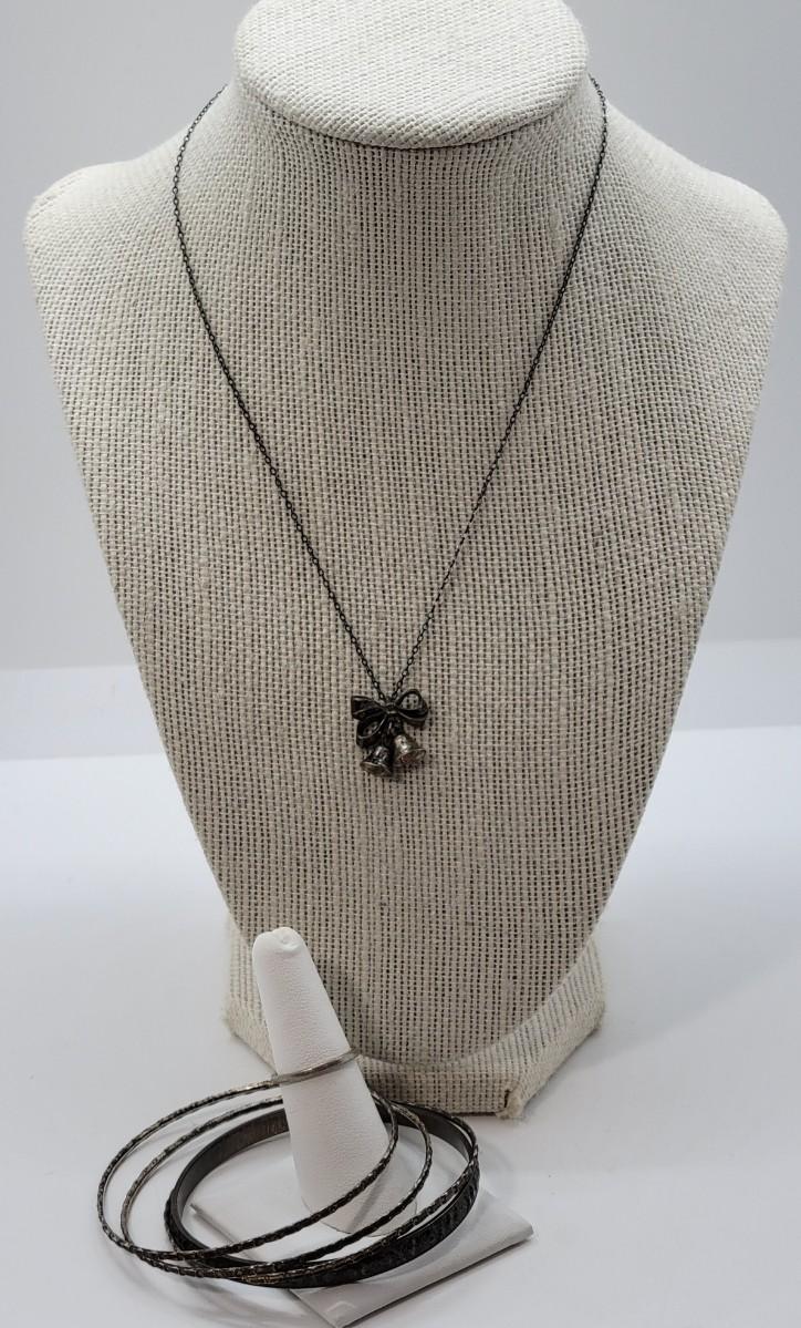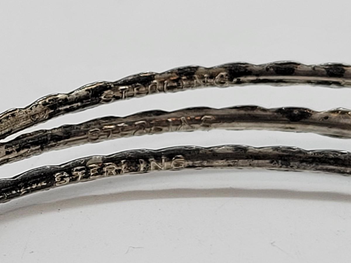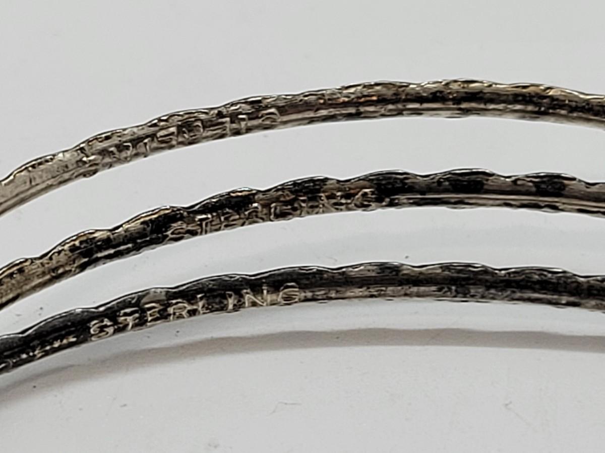 LOT 100: Sterling Silver Jewelry Lot - Bangle Bracelets, Ring Size 6.25, & Pendant on 16" Necklace - 32.71 gtw