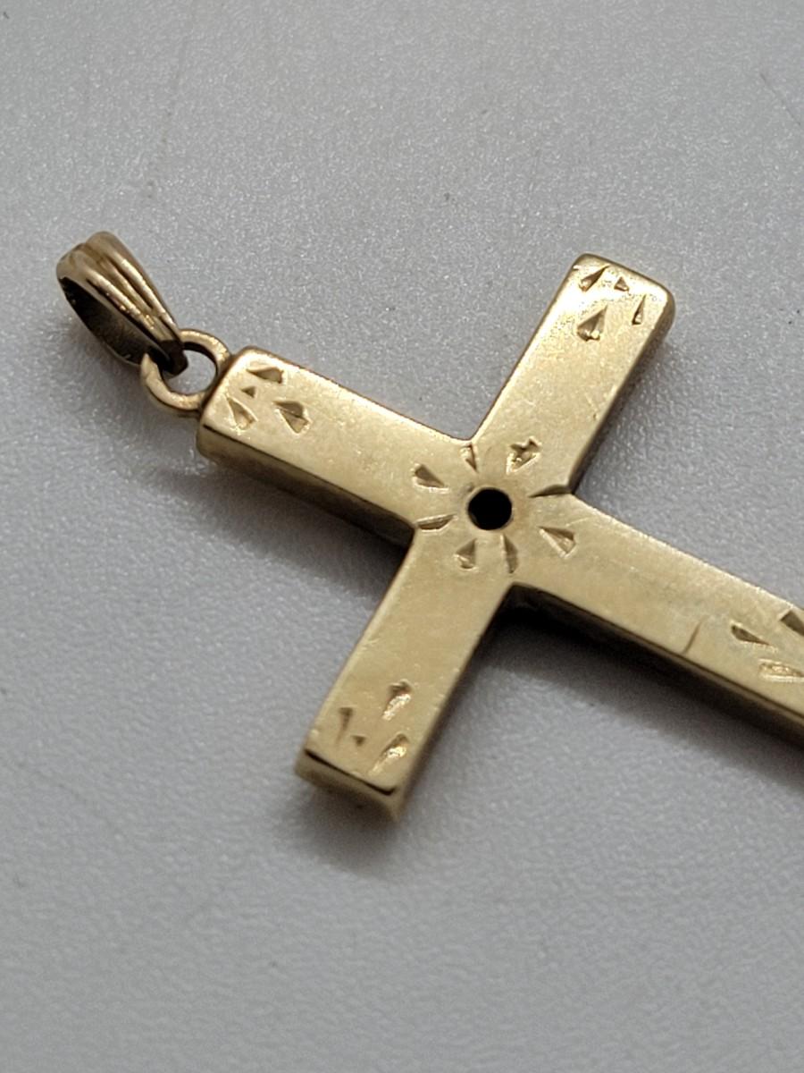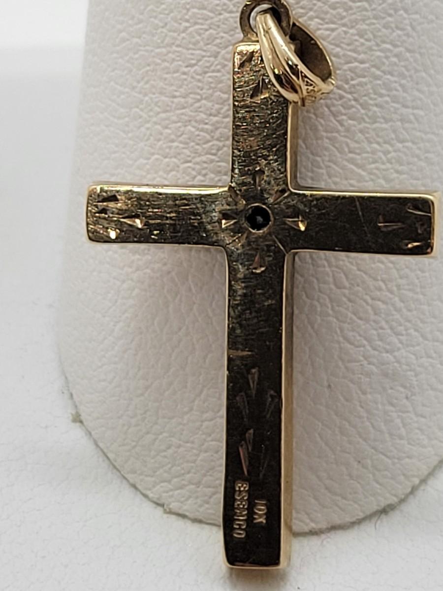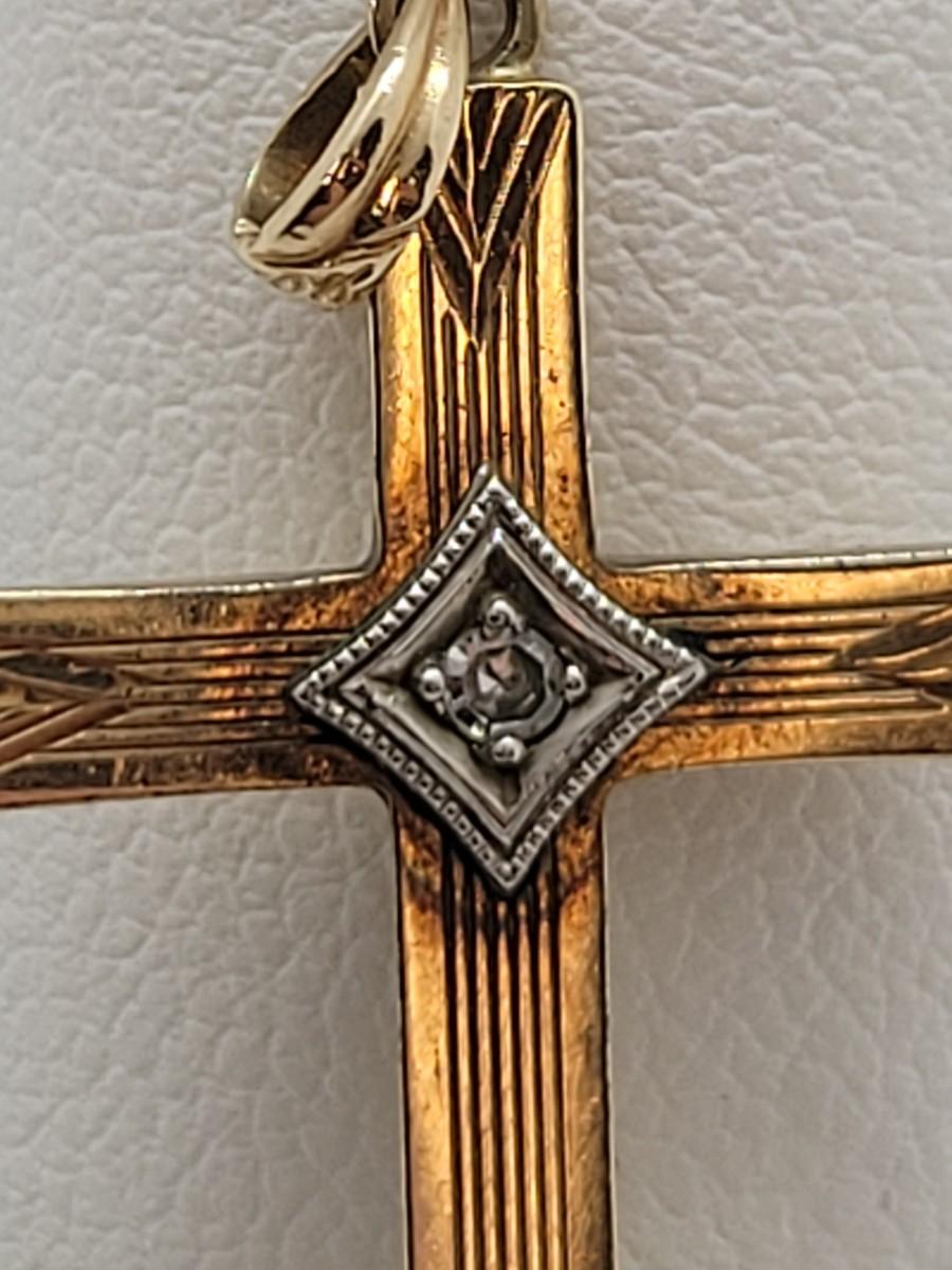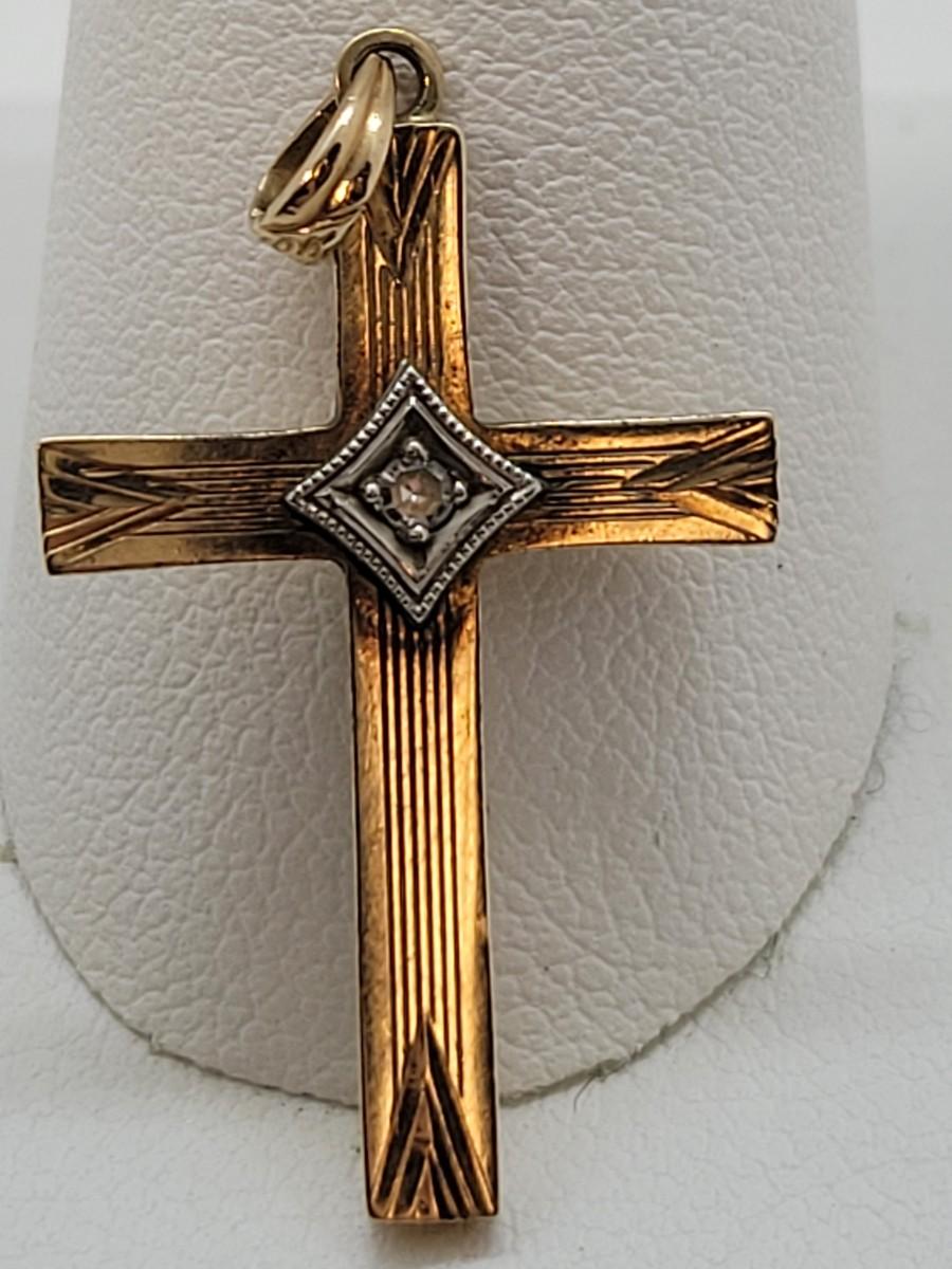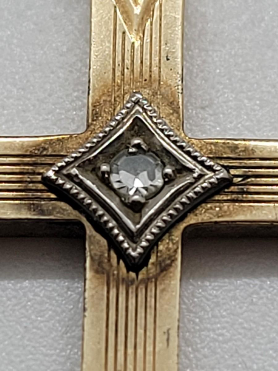 LOT 101: Vintage Esemco 10K Gold Cross Pendant with Small Diamond - .86 gtw
