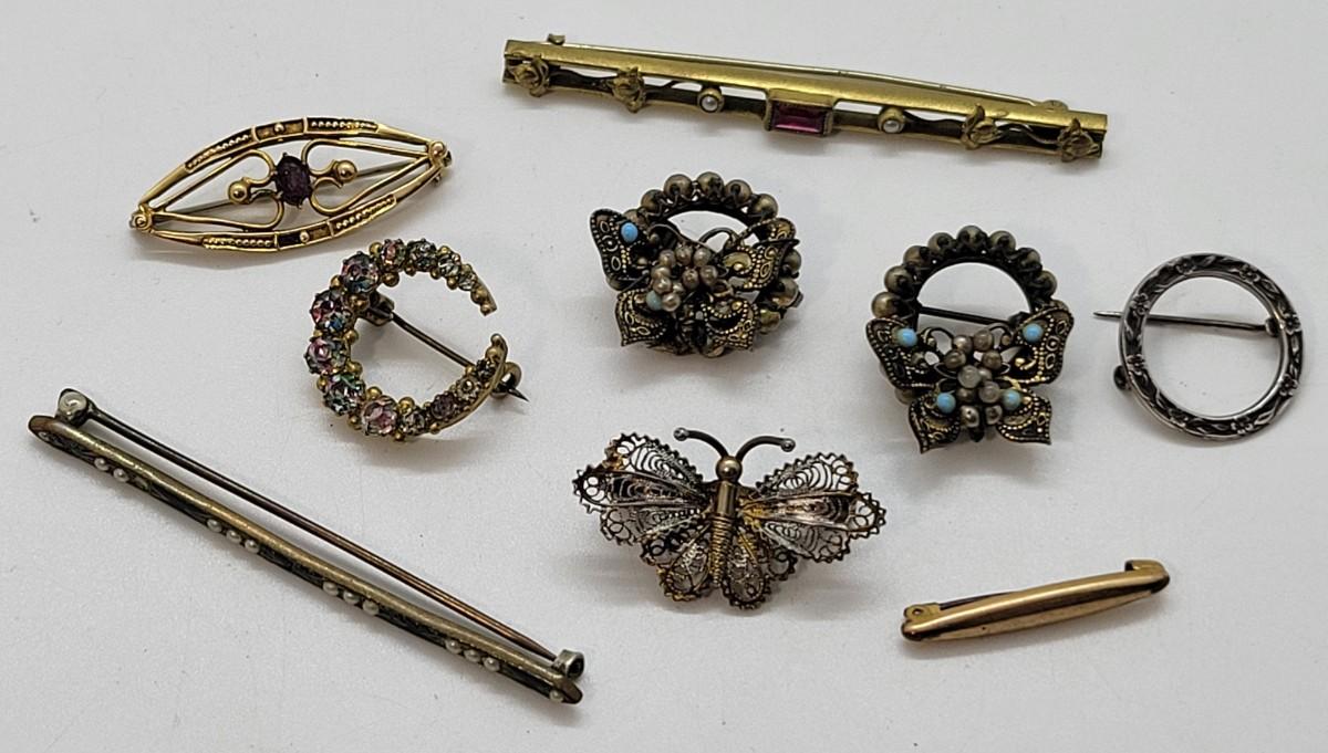 LOT 109: Collection of Vintage Pins ( 1 Sterling Silver)