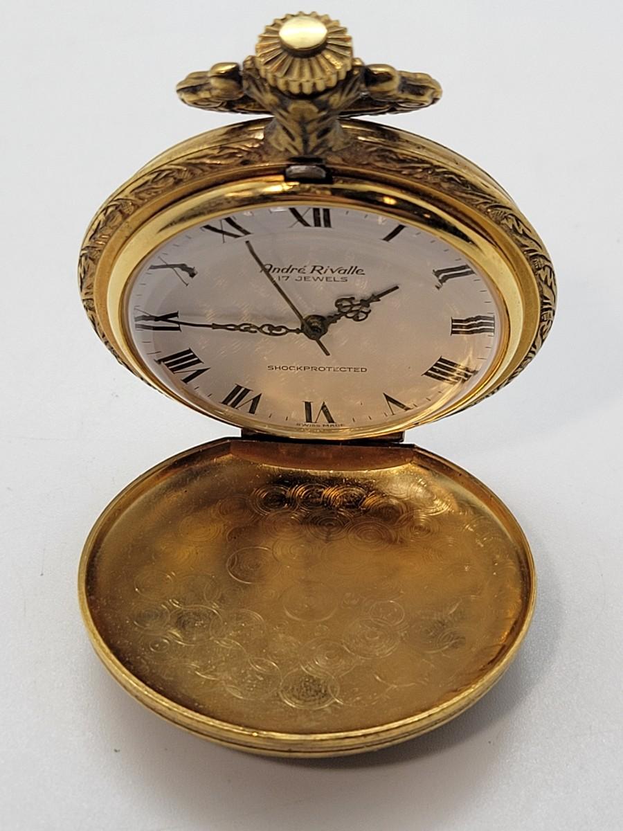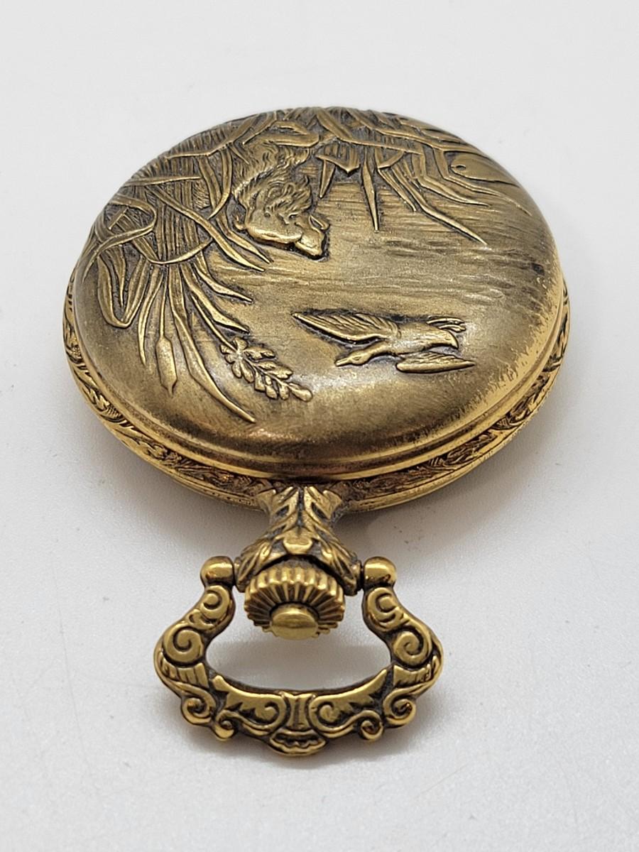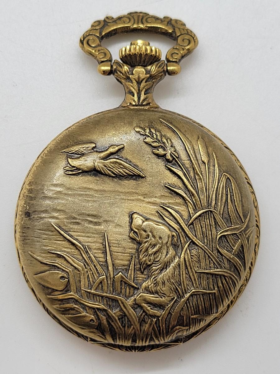 LOT 113: Andre Rivalle Swiss 17 Jewels Pocket Watch - Duck Hunter Design - Working
