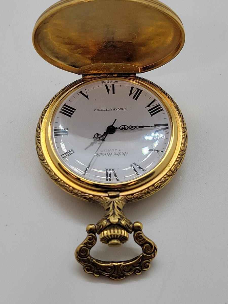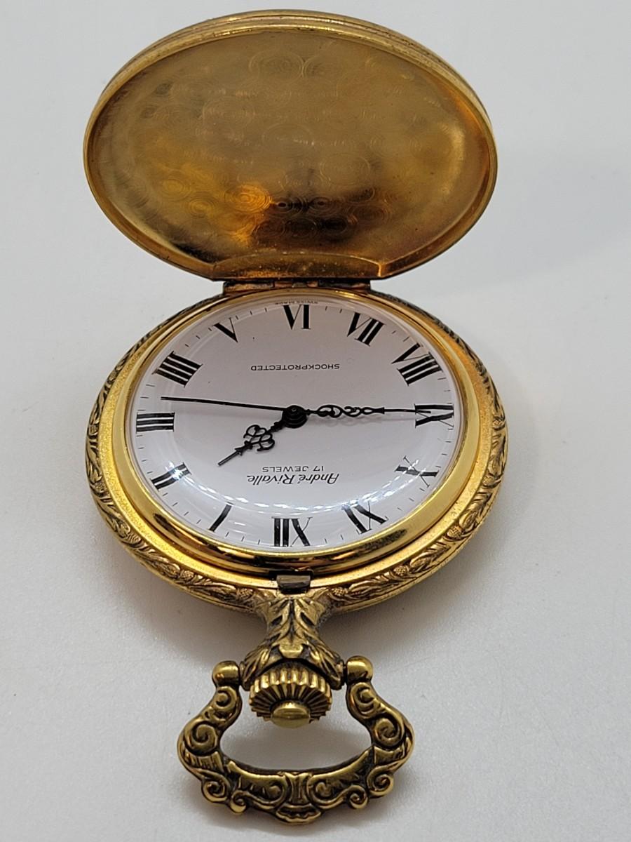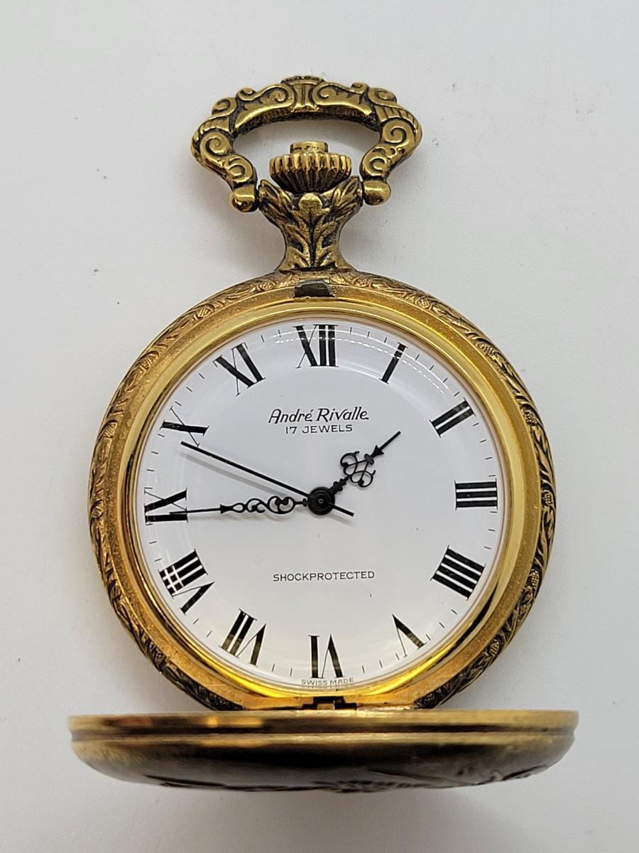 LOT 113: Andre Rivalle Swiss 17 Jewels Pocket Watch - Duck Hunter Design - Working