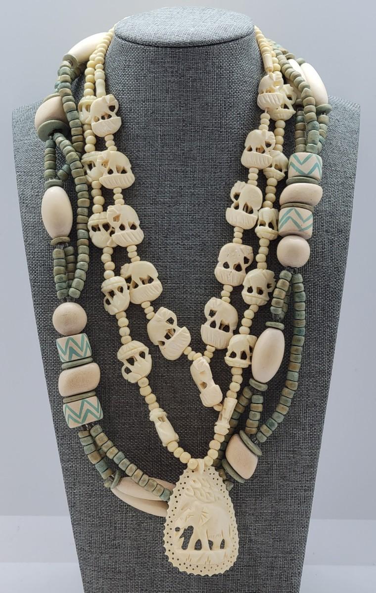 LOT 119: Elephant Motif Necklaces & Wooden Bead Necklace
