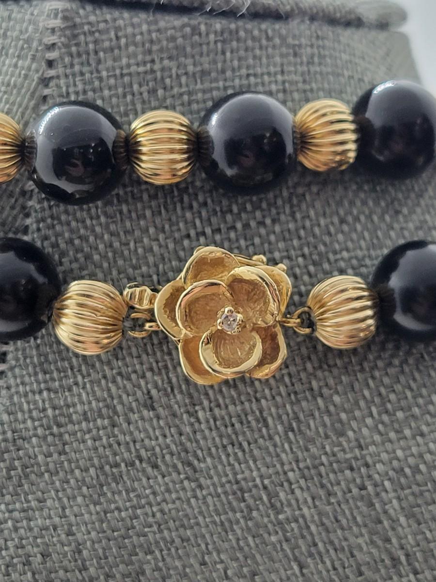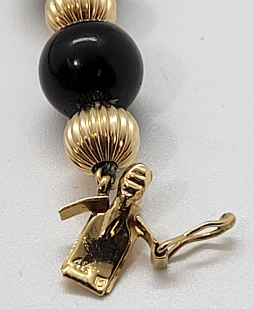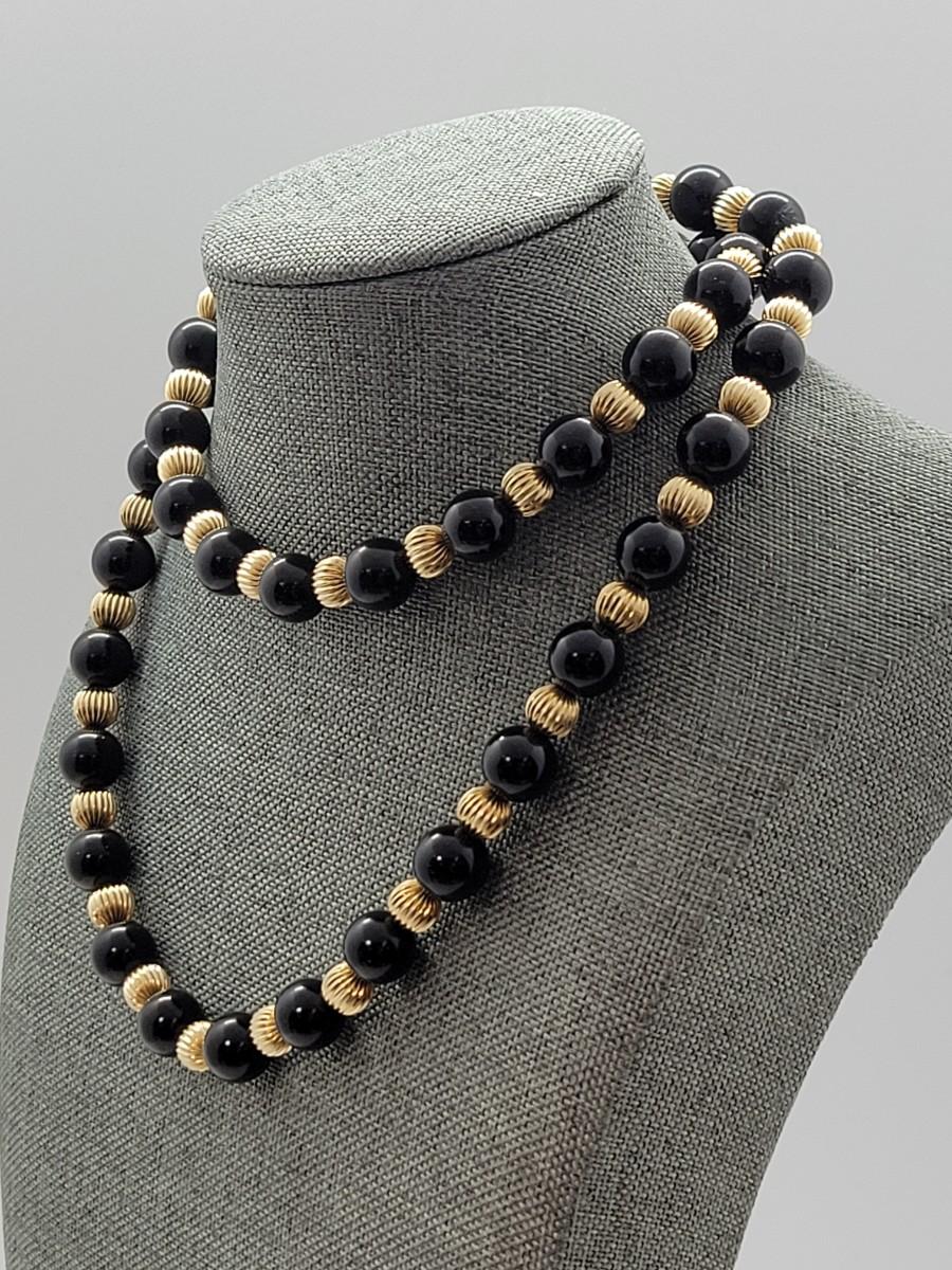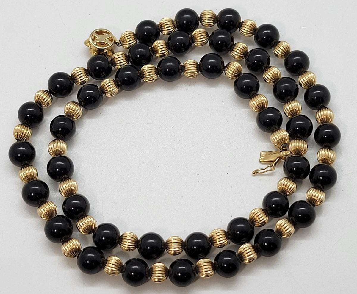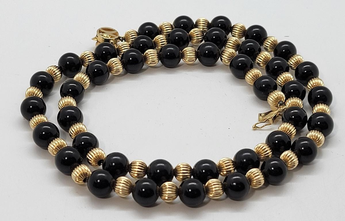 LOT 125: 14K Gold and Onyx Beaded 27" Necklace w/ Small Diamond Accent - 68.57 gtw