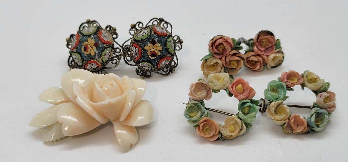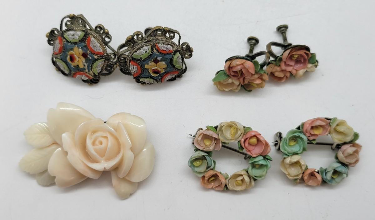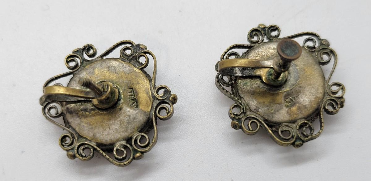LOT 128: Antique Italy Mosaic Screwback Earrings and More