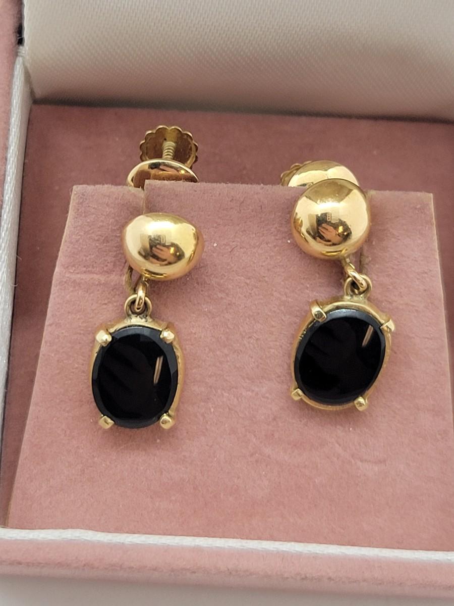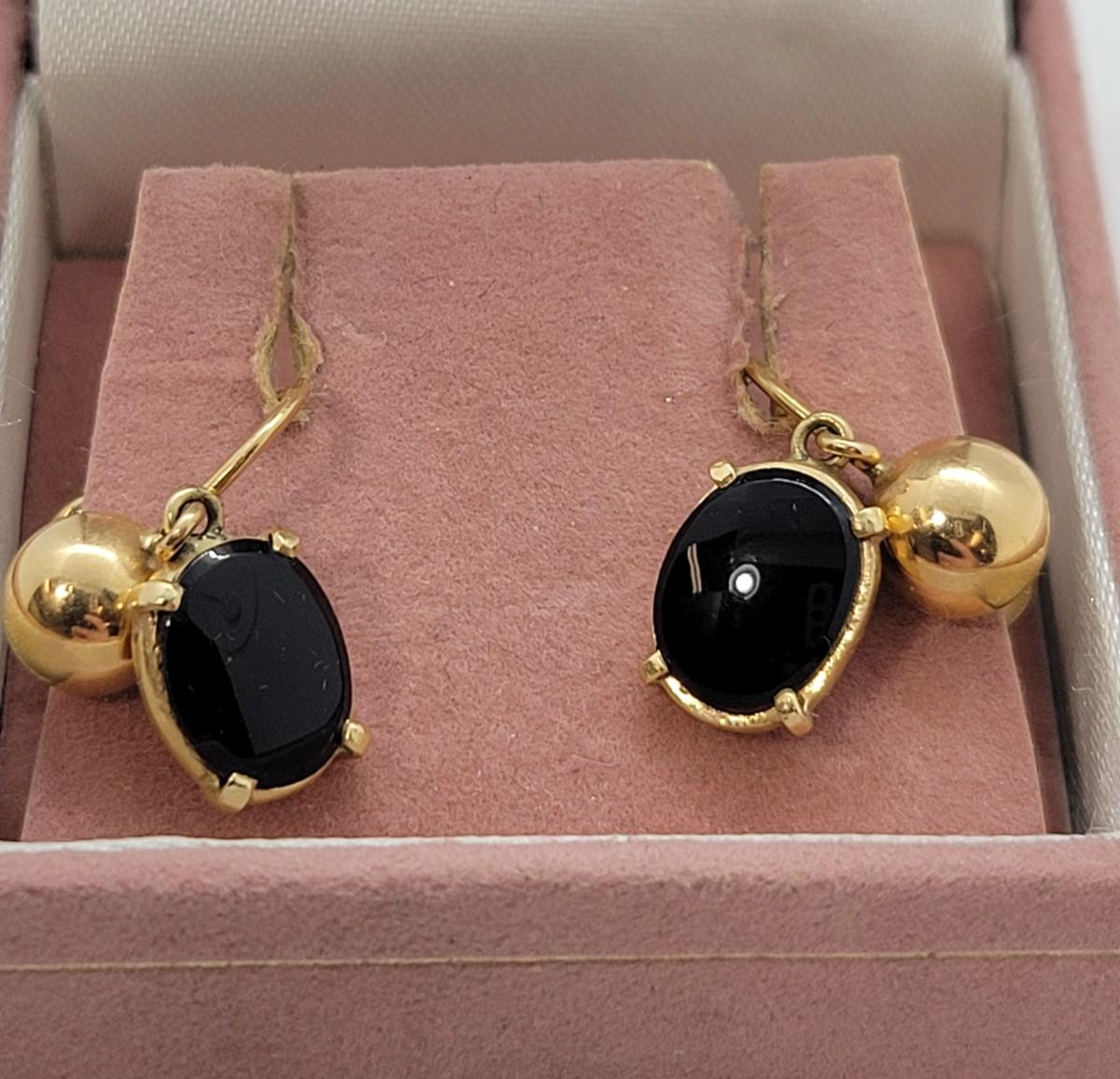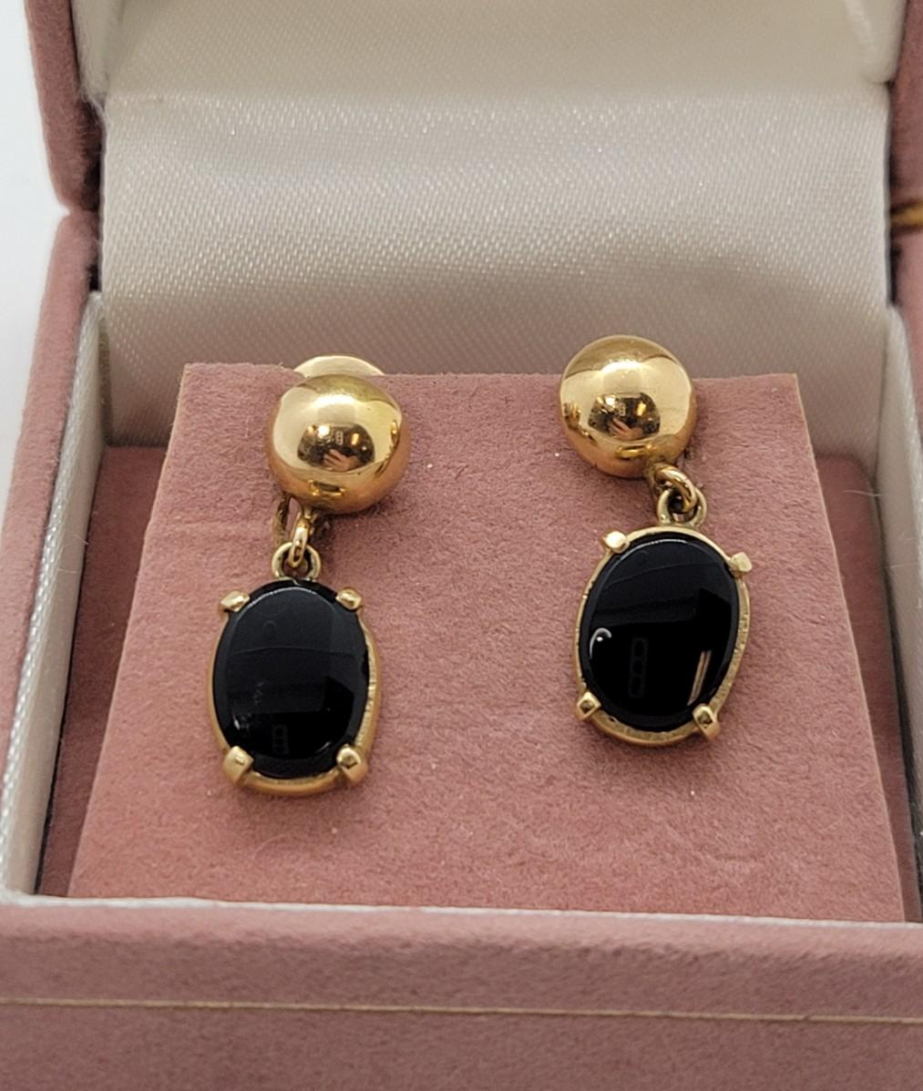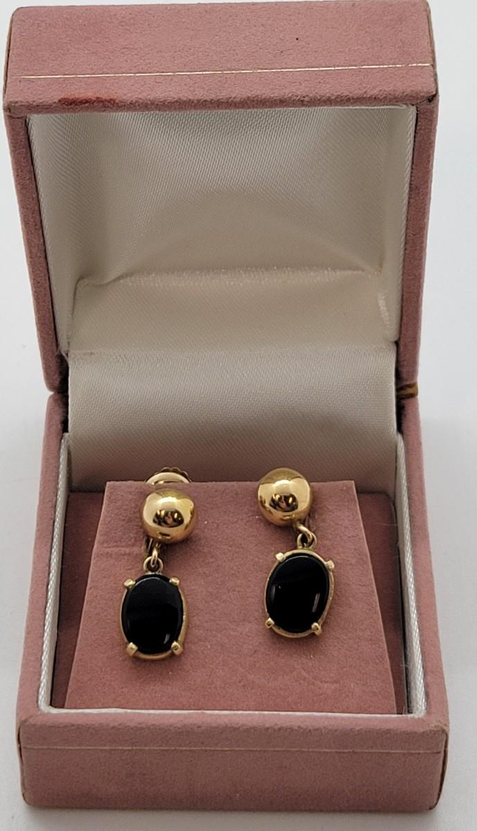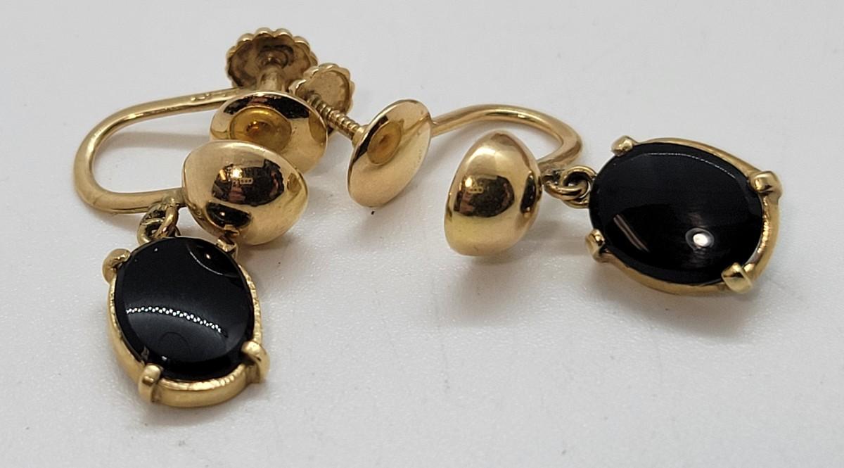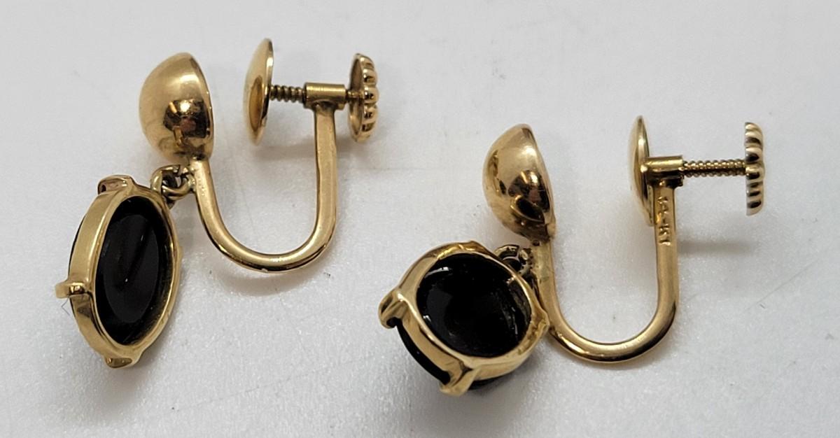 LOT 133: 14K Gold and Onyx Screwback Earrings - 3.13 gtw